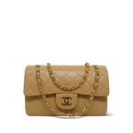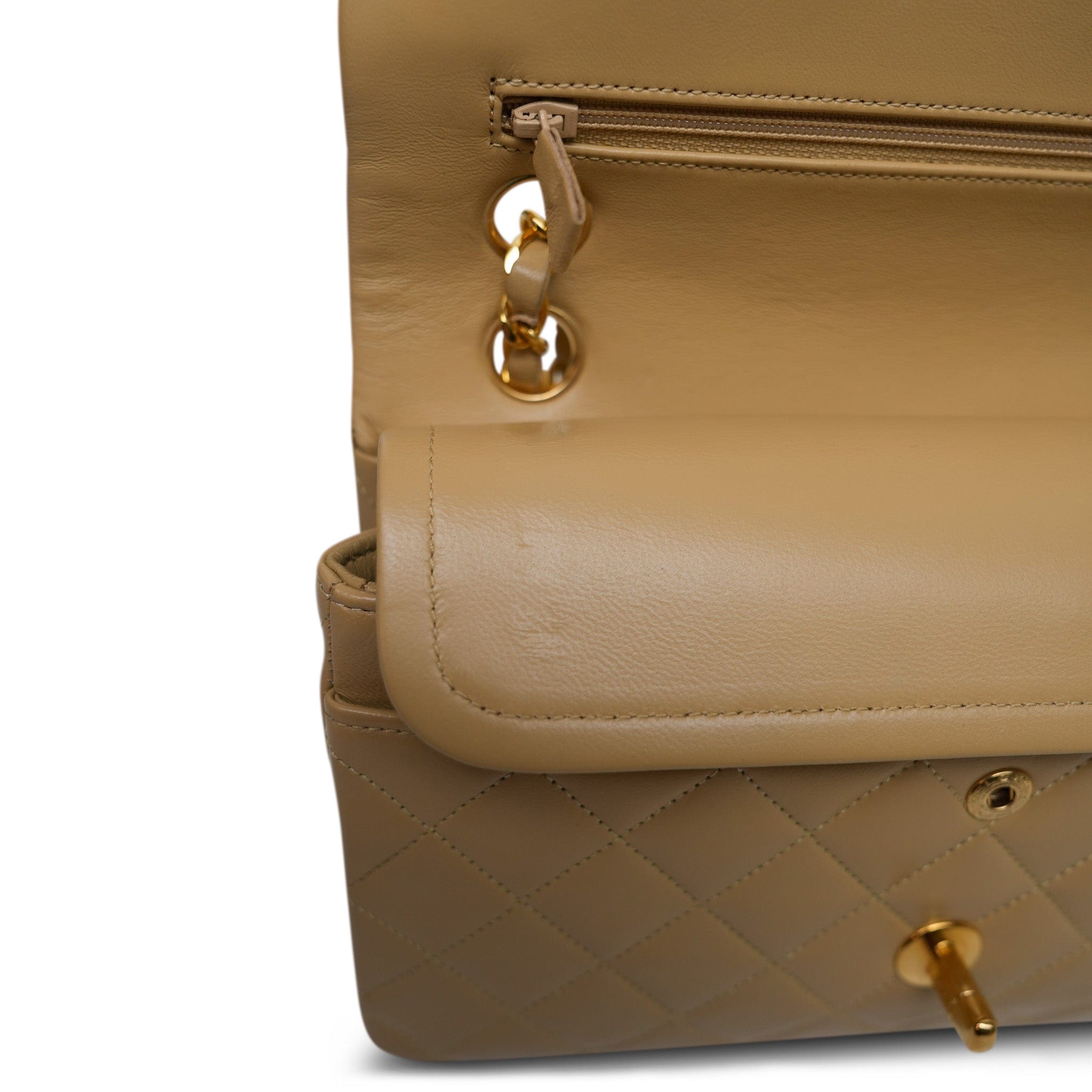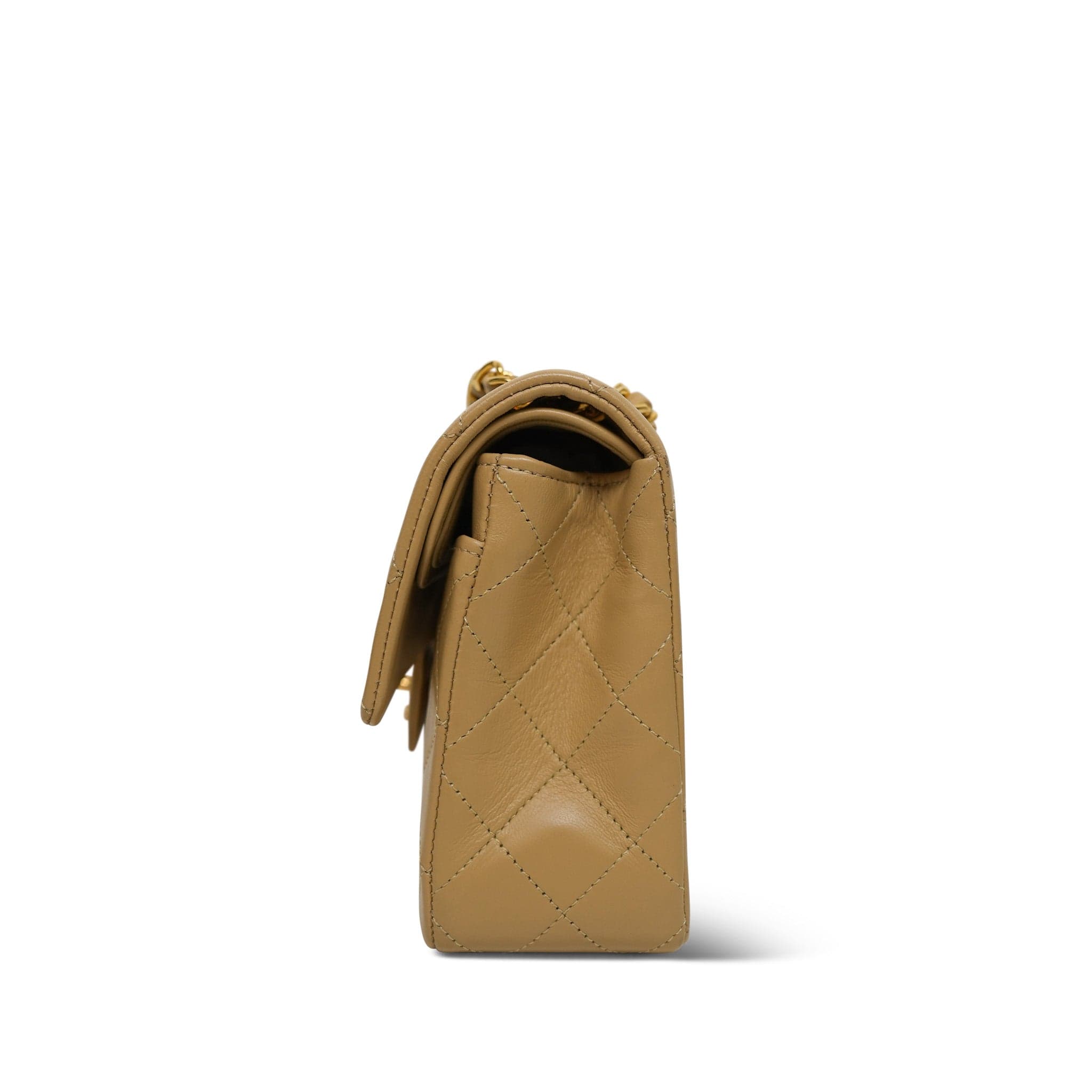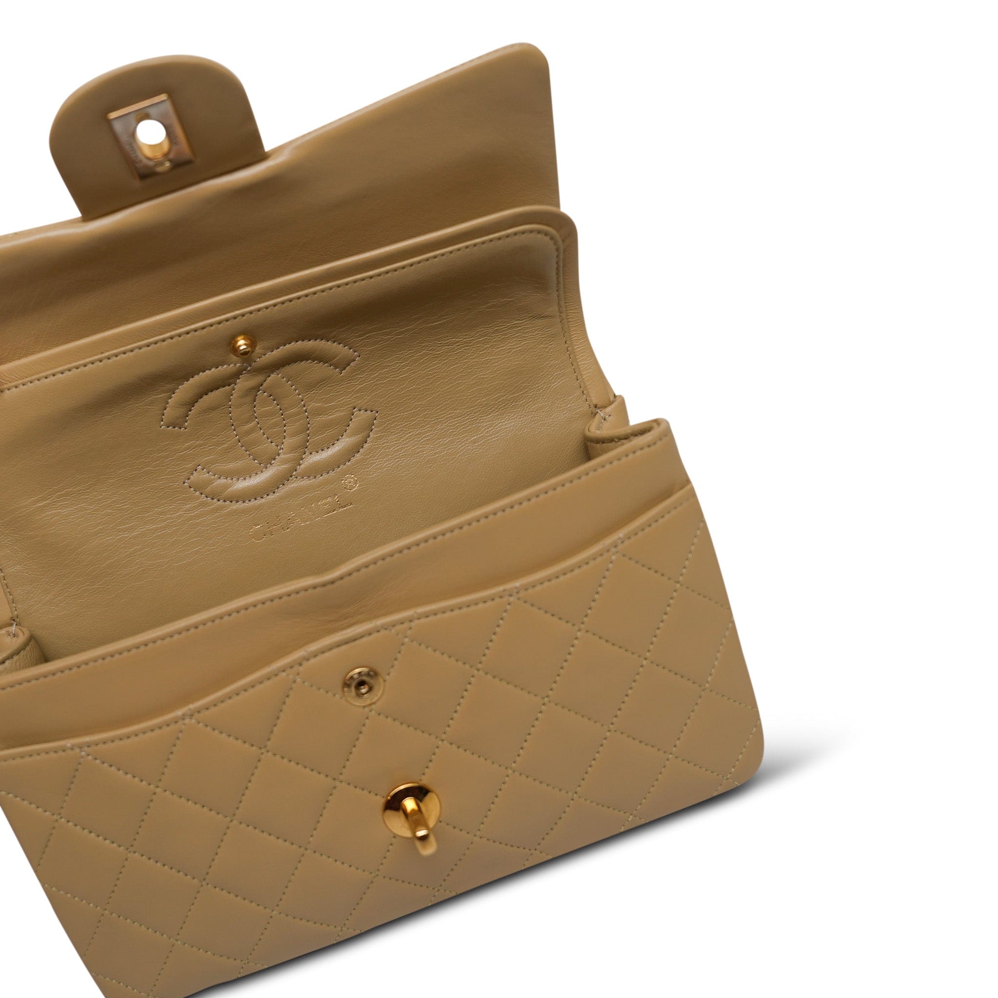 Beige Lambskin Quilted Small Classic Flap Gold Hardware