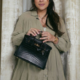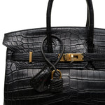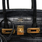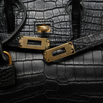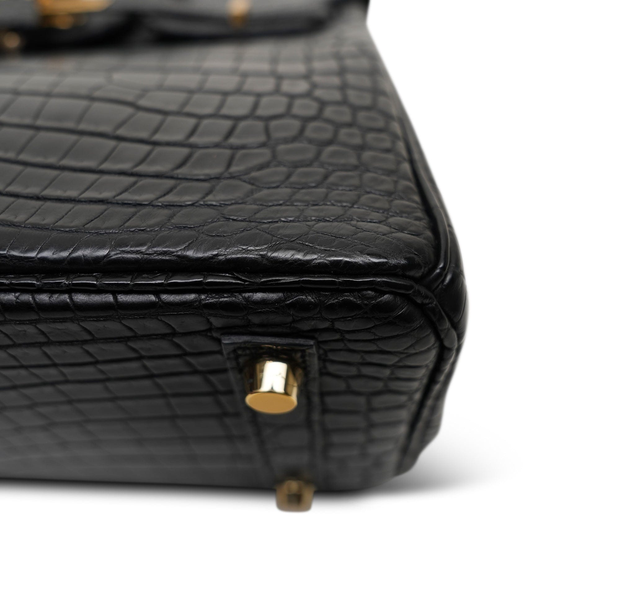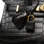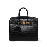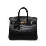 Birkin 25 Black Niloticus Crocodile Gold Plated Q Square Stamp