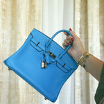 Birkin 25 Bleu Frida Swift Palladium Plated Z Stamp