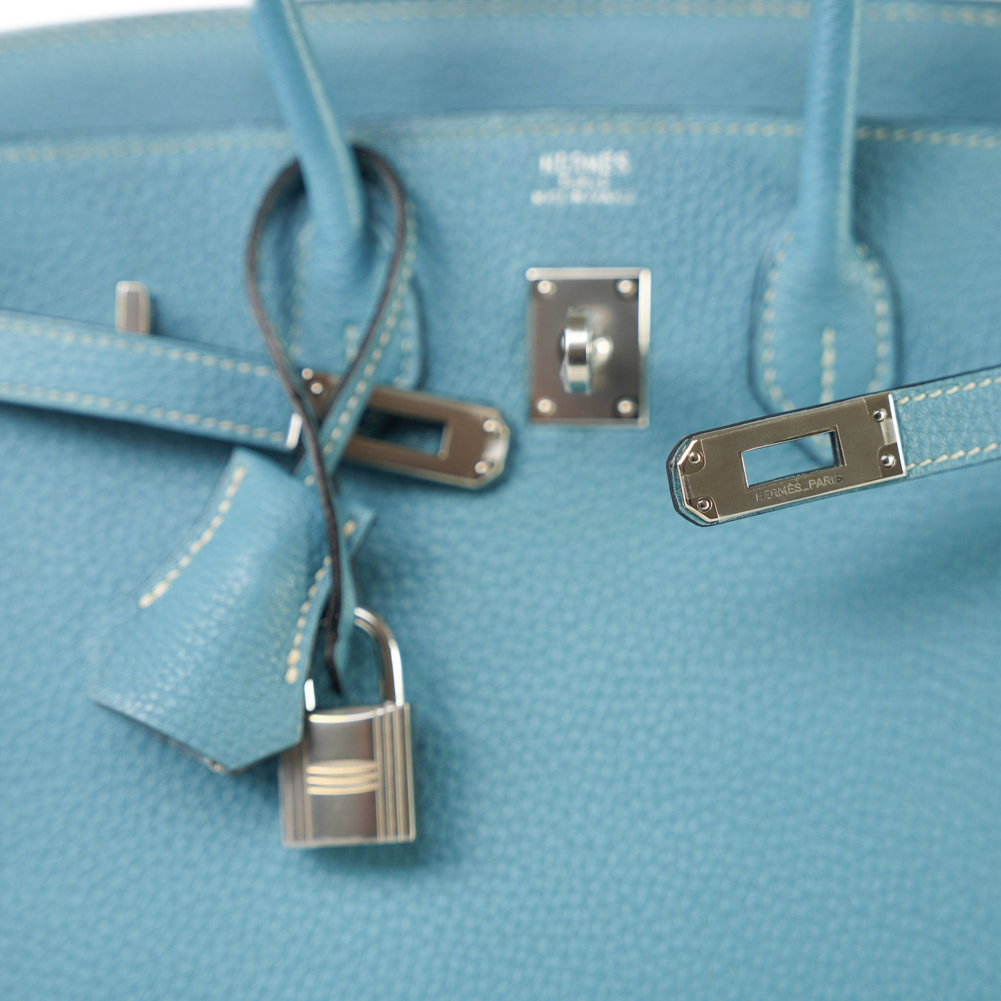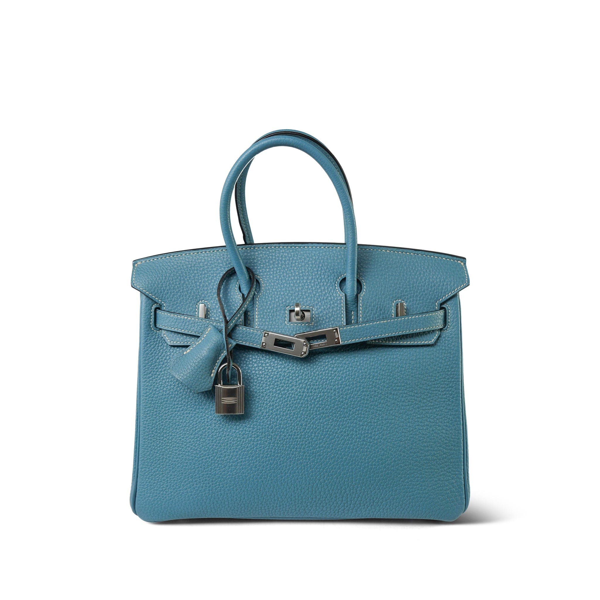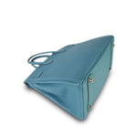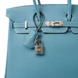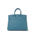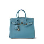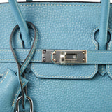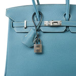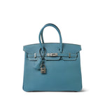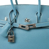 Birkin 25 Blue Jean Veau Togo Palladium Plated H Square Stamp
