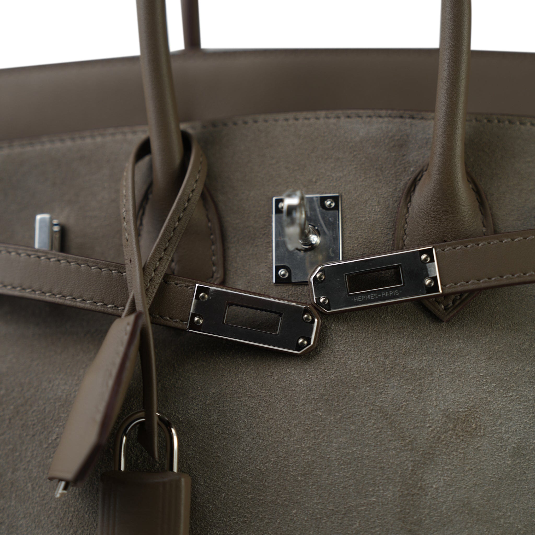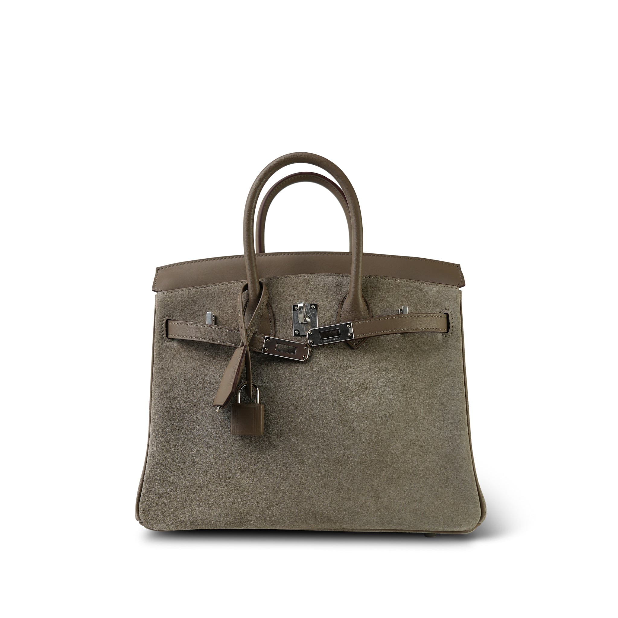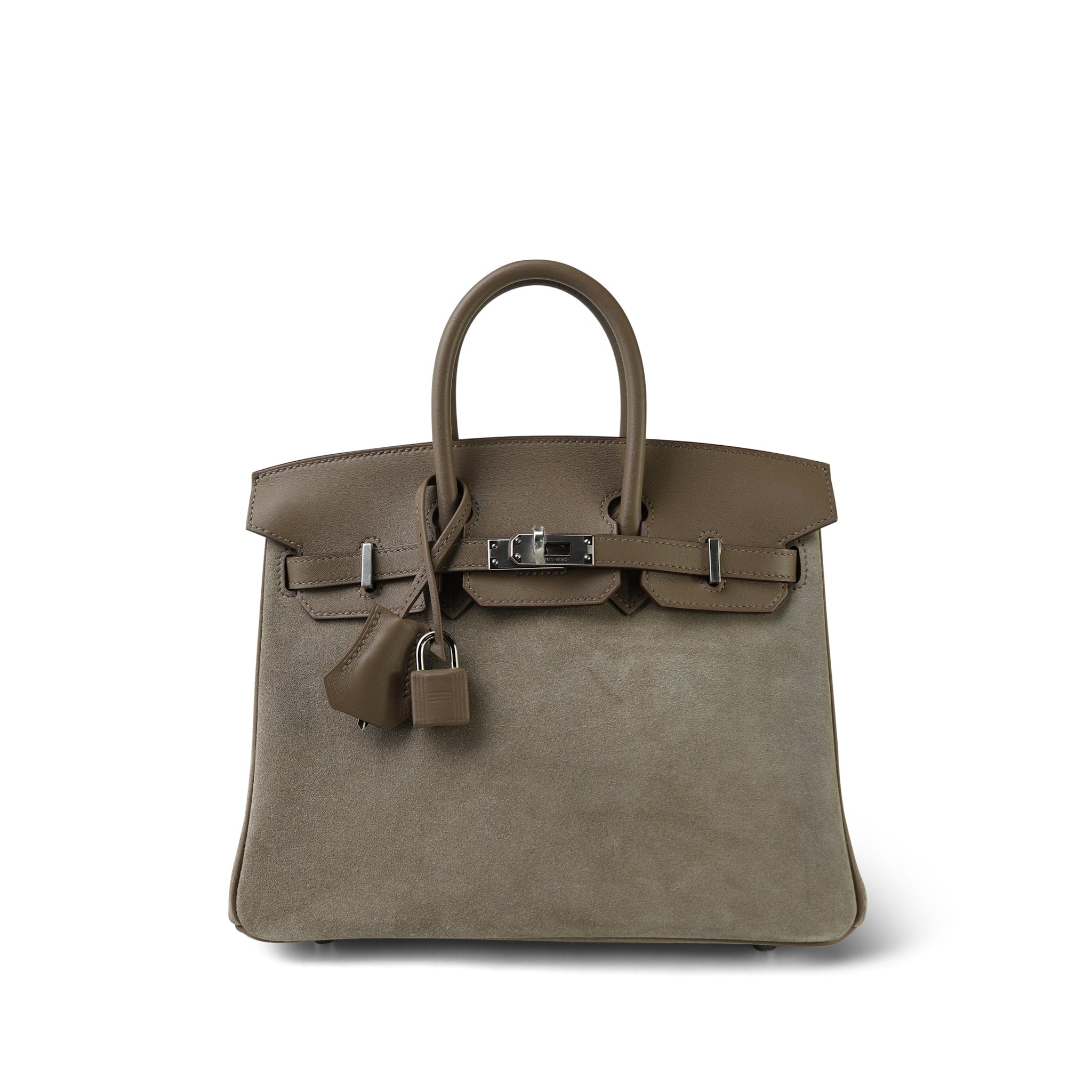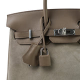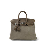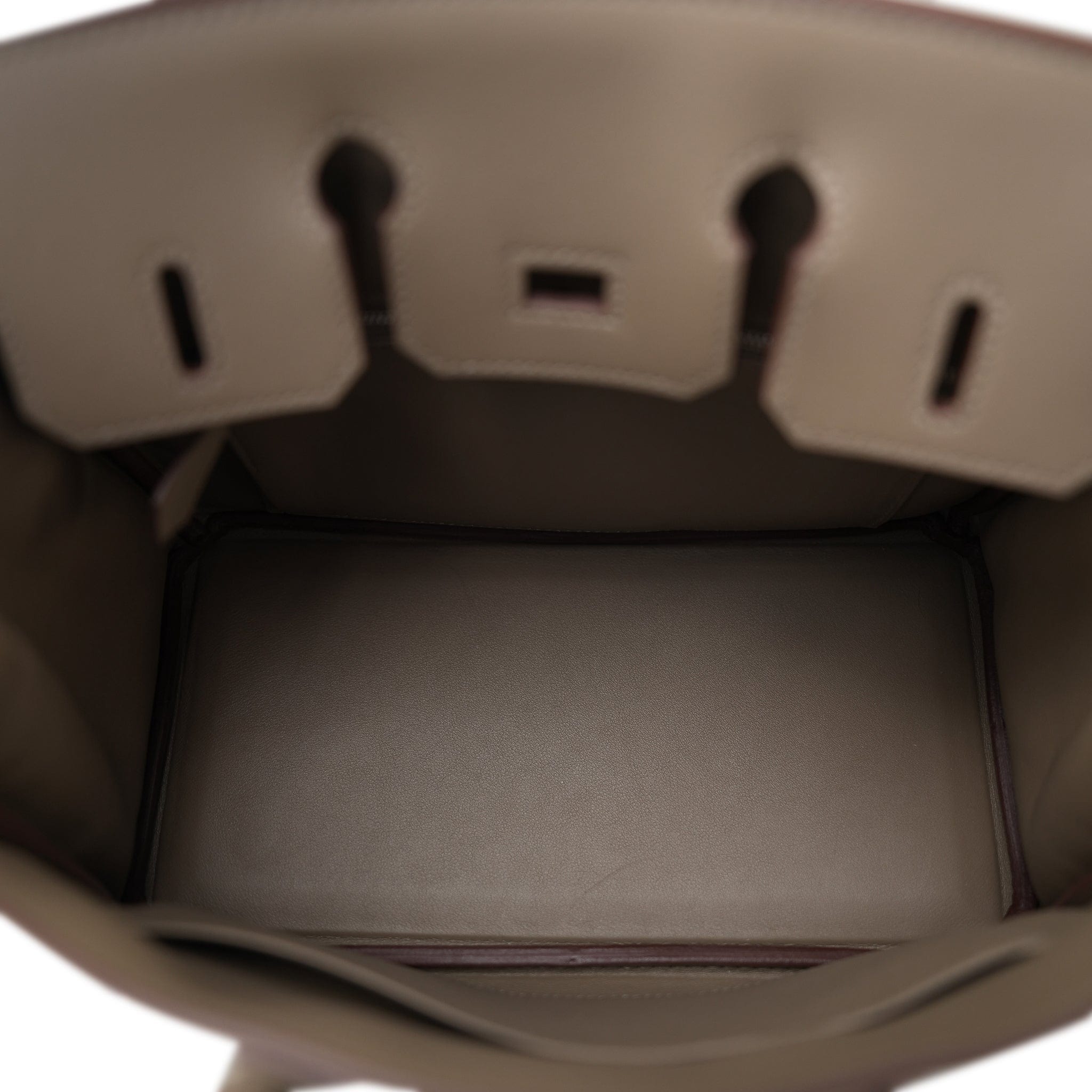 Birkin 25 Etoupe Swift and Grizzly Palladium Plated U Stamp