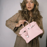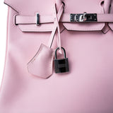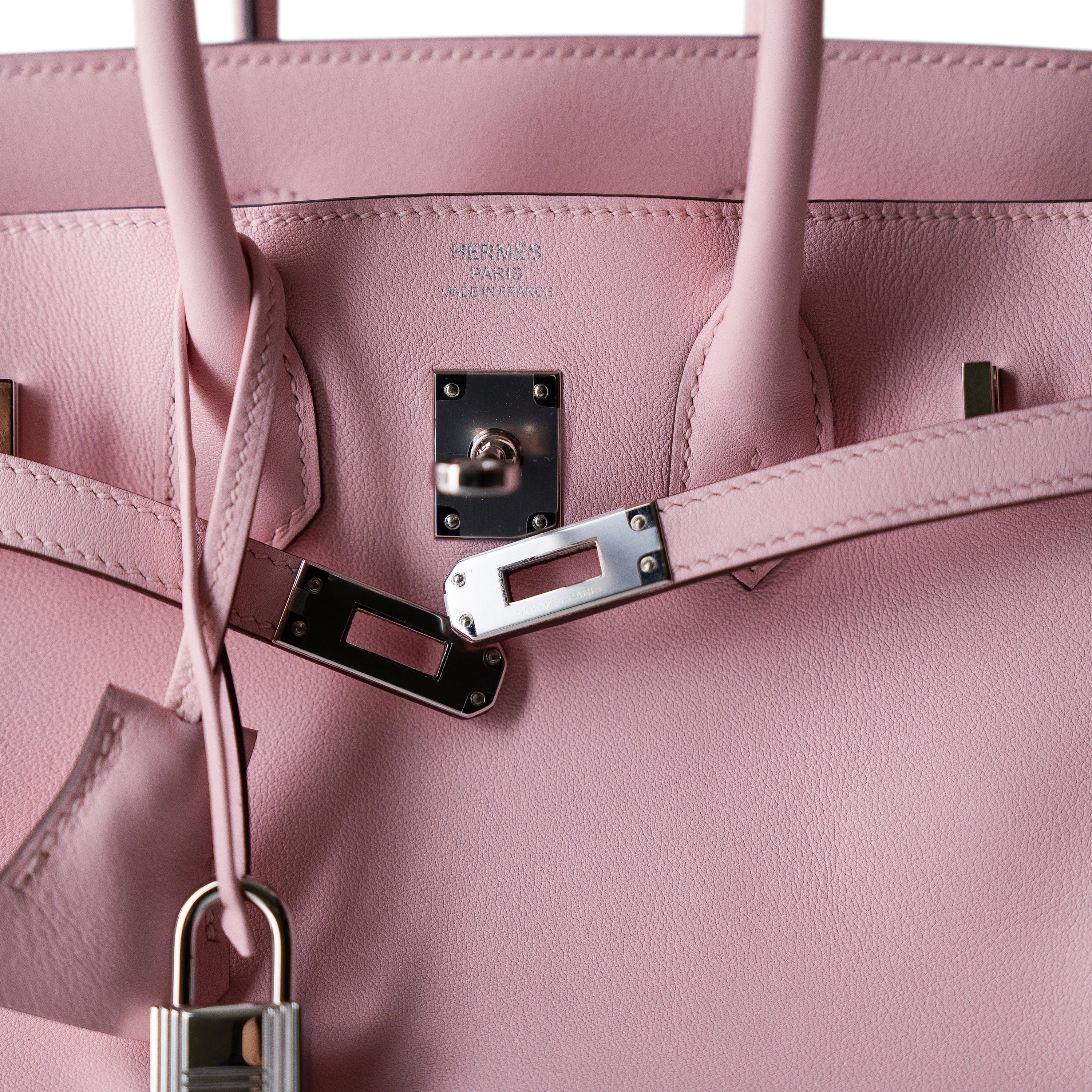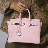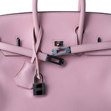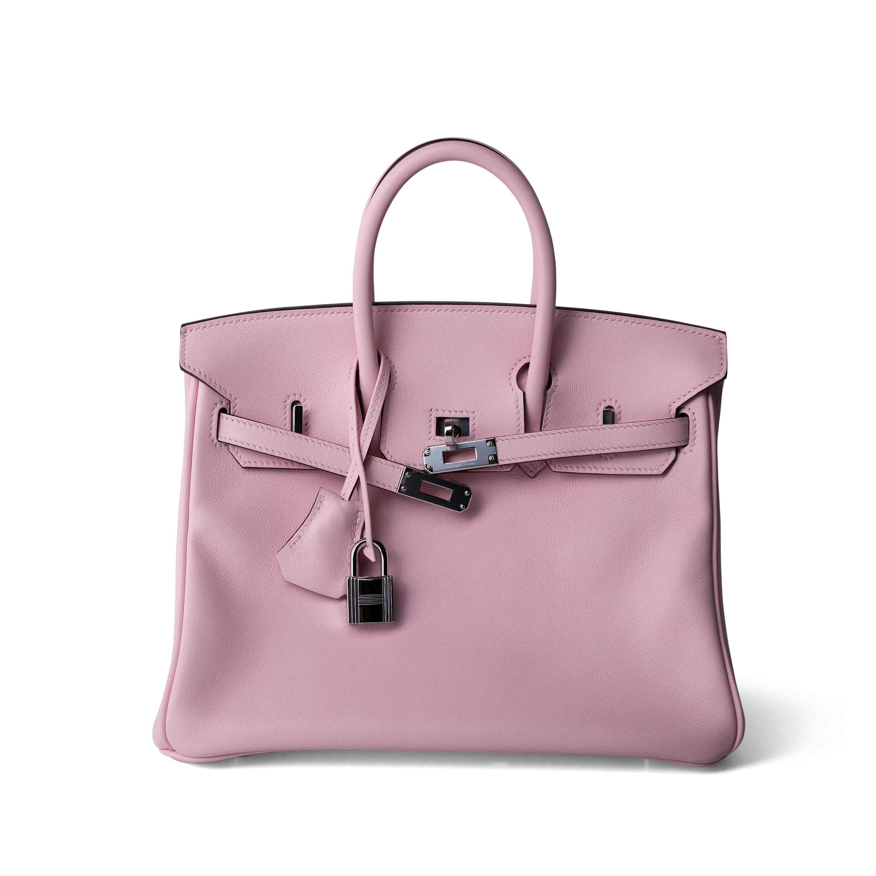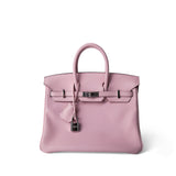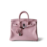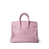 Birkin 25 Rose Sakura Swift Palladium Plated X Stamp