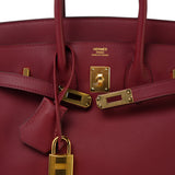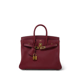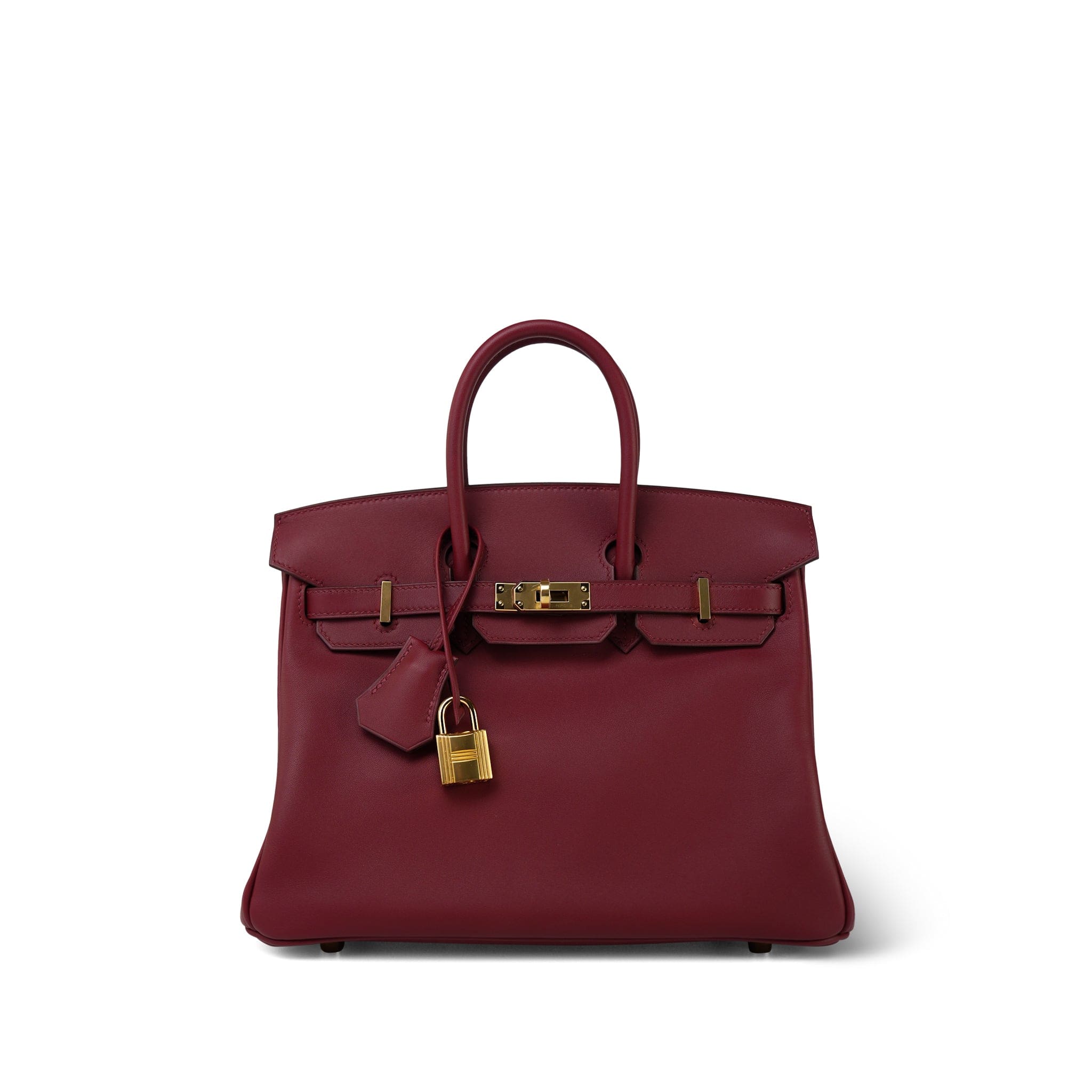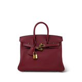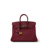 Birkin 25 Rouge H Swift Gold Plated Y Stamp