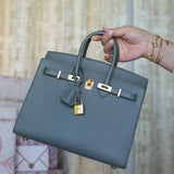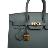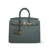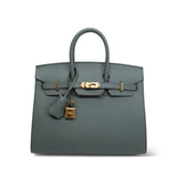 Birkin Sellier 25 Vert Amande Epsom Gold Plated B Stamp