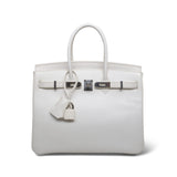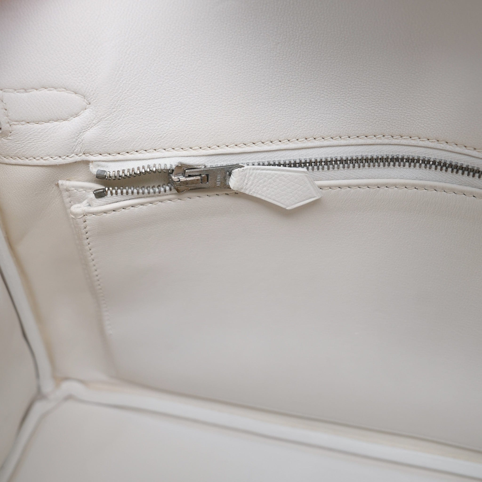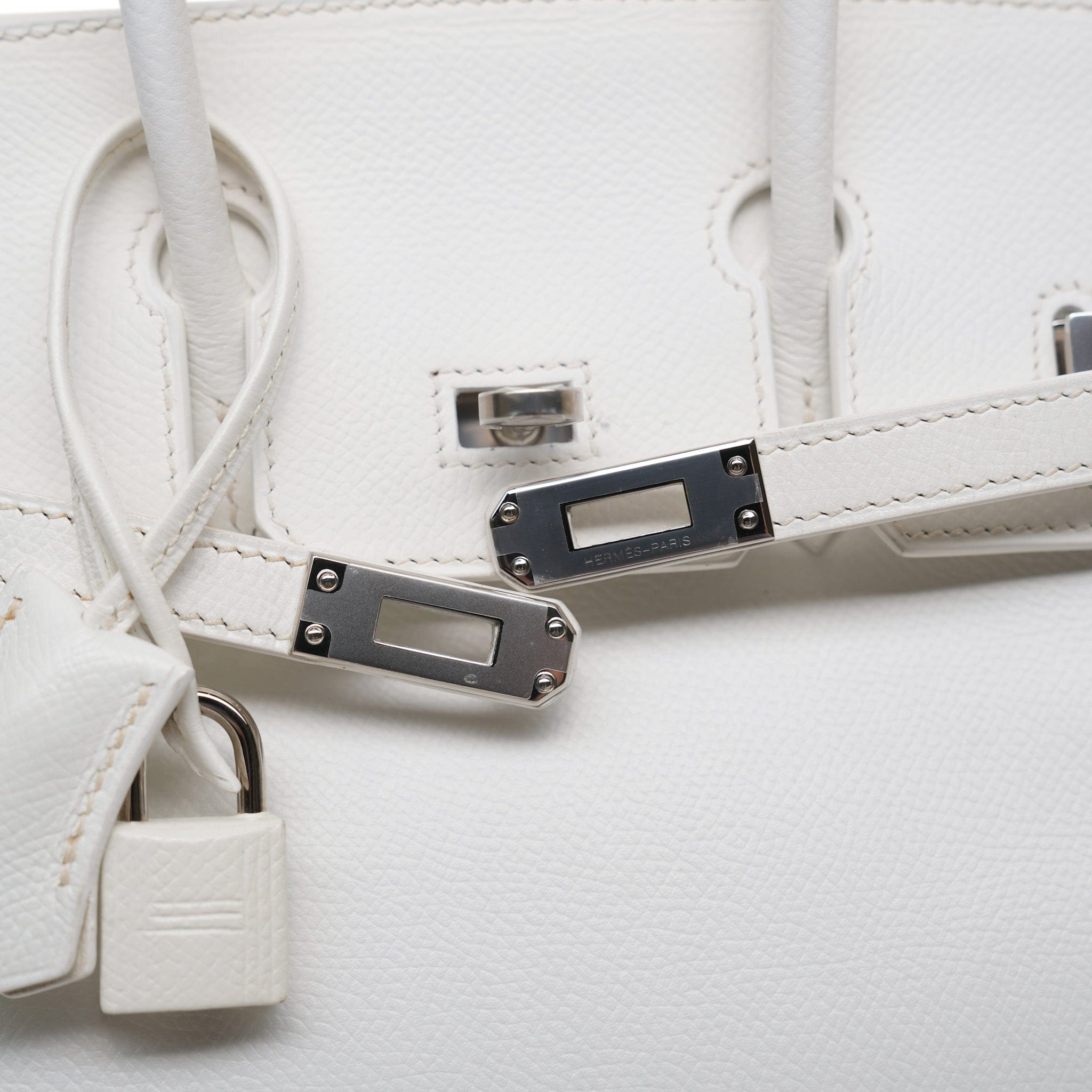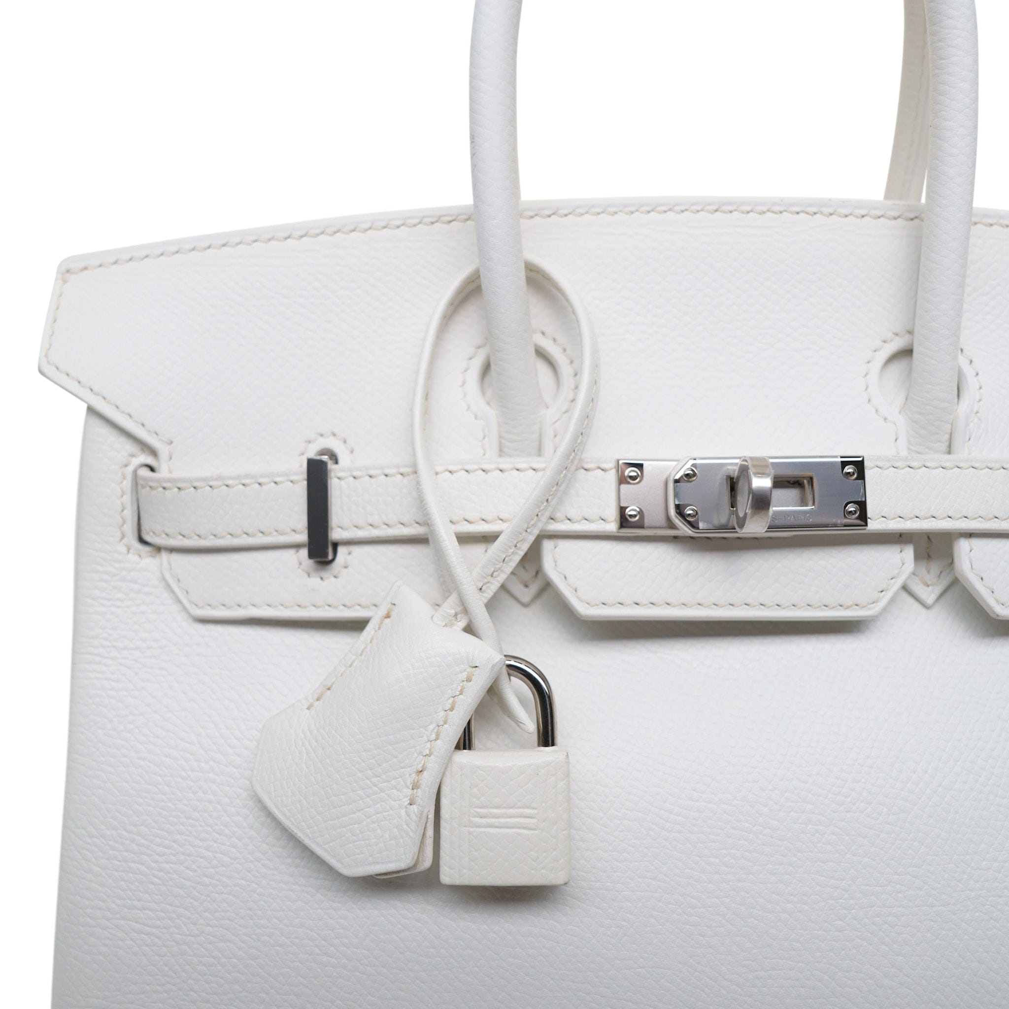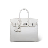 Birkin 25 White Epsom Palladium Plated [H] Stamp