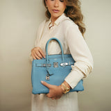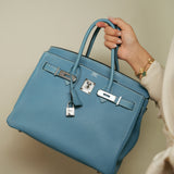 Birkin 30 Bleu Jean Veau Togo Palladium Plated J Square Stamp