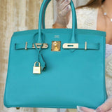 Birkin 30 Bleu Paon Veau Epsom Gold Plated A Stamp