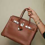 Birkin 30 Noisette Vache Liegee Palladium Plated J Square Stamp