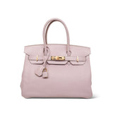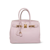Birkin 30 Rose Dragée Swift Gold Plated L Square Stamp