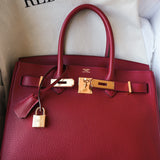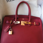 Birkin 30 Rouge VIF Veau Togo Gold Plated A Stamp
