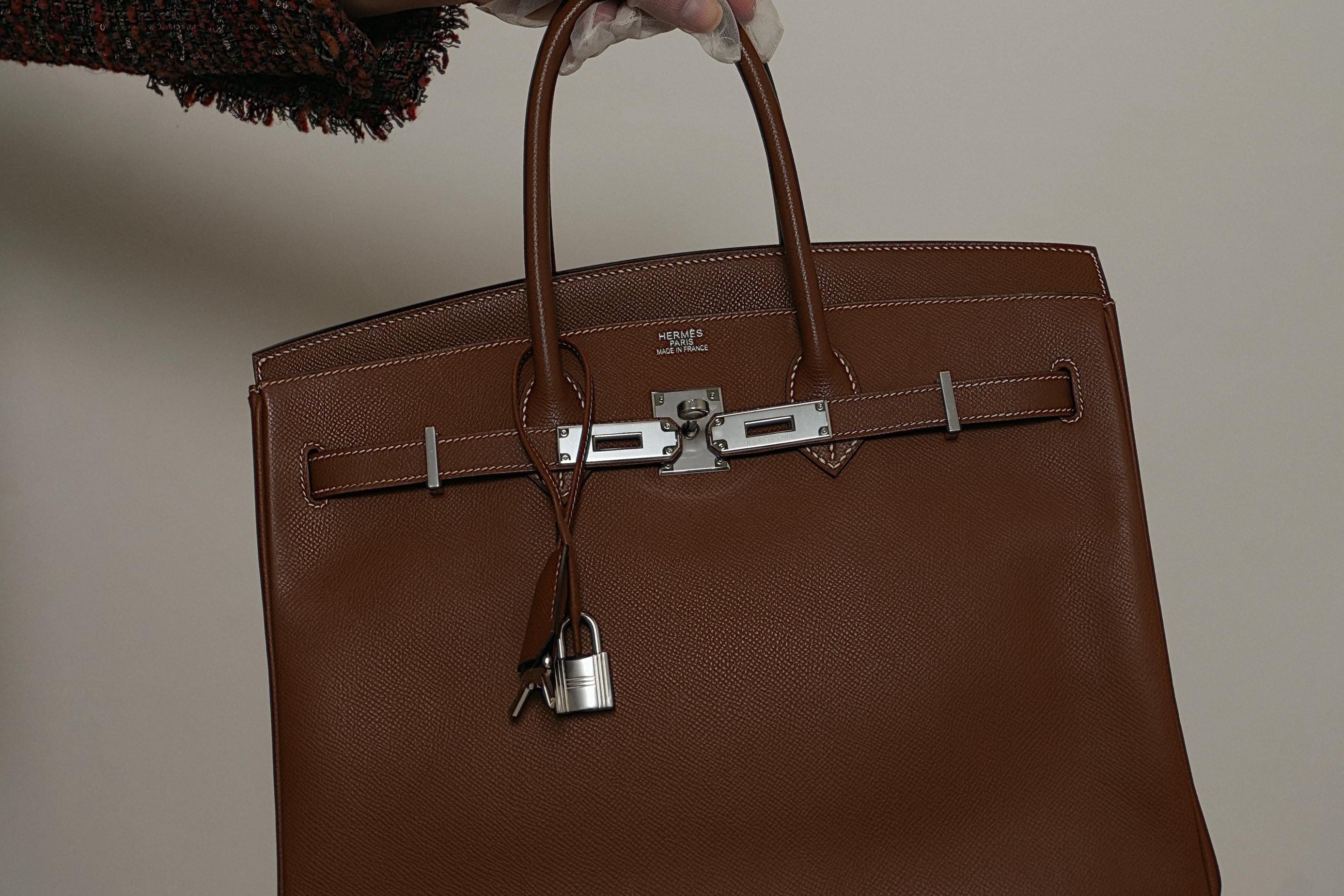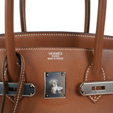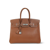 Birkin 35 Gold Epsom Palladium Plated L Square Stamp