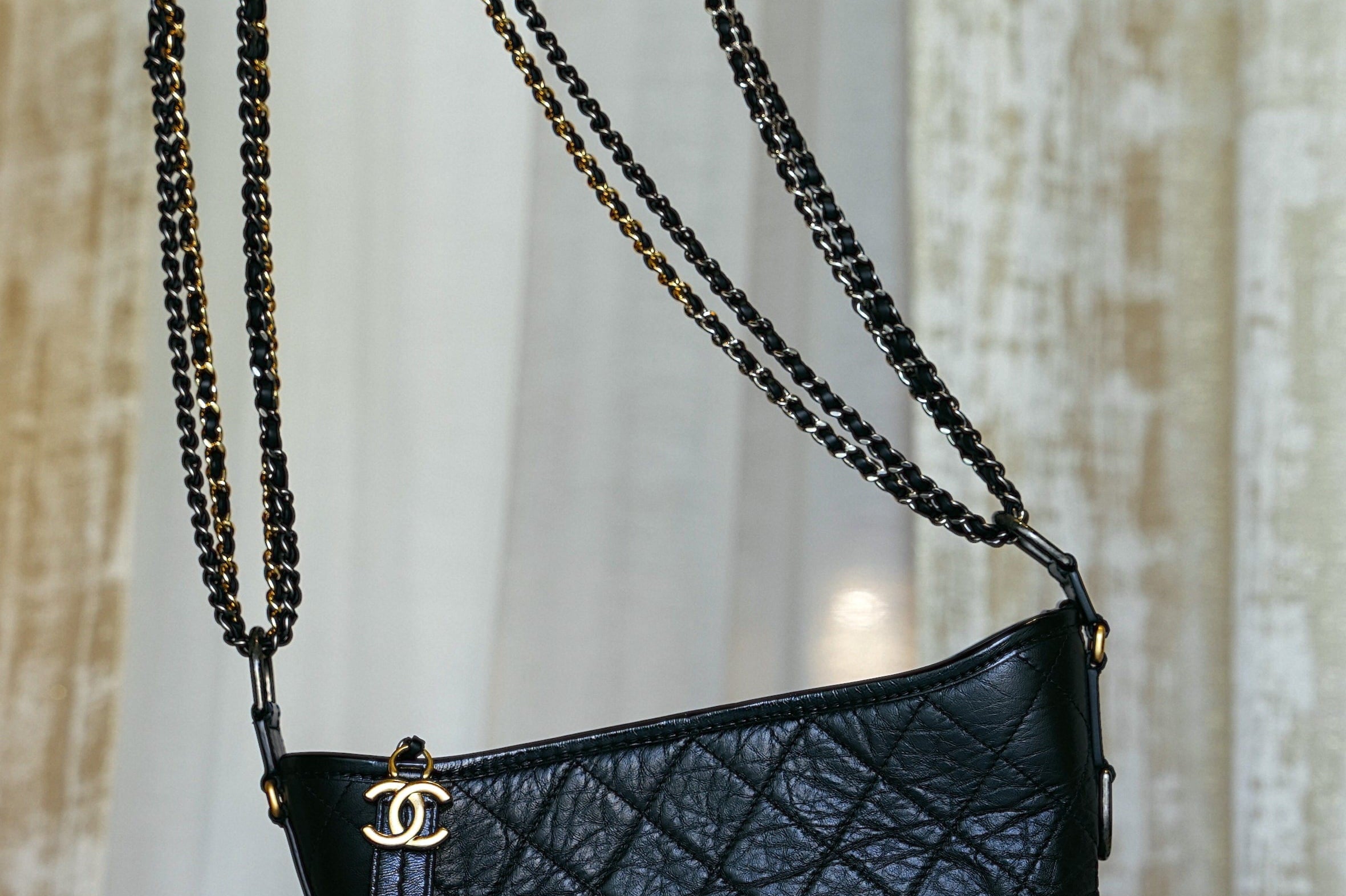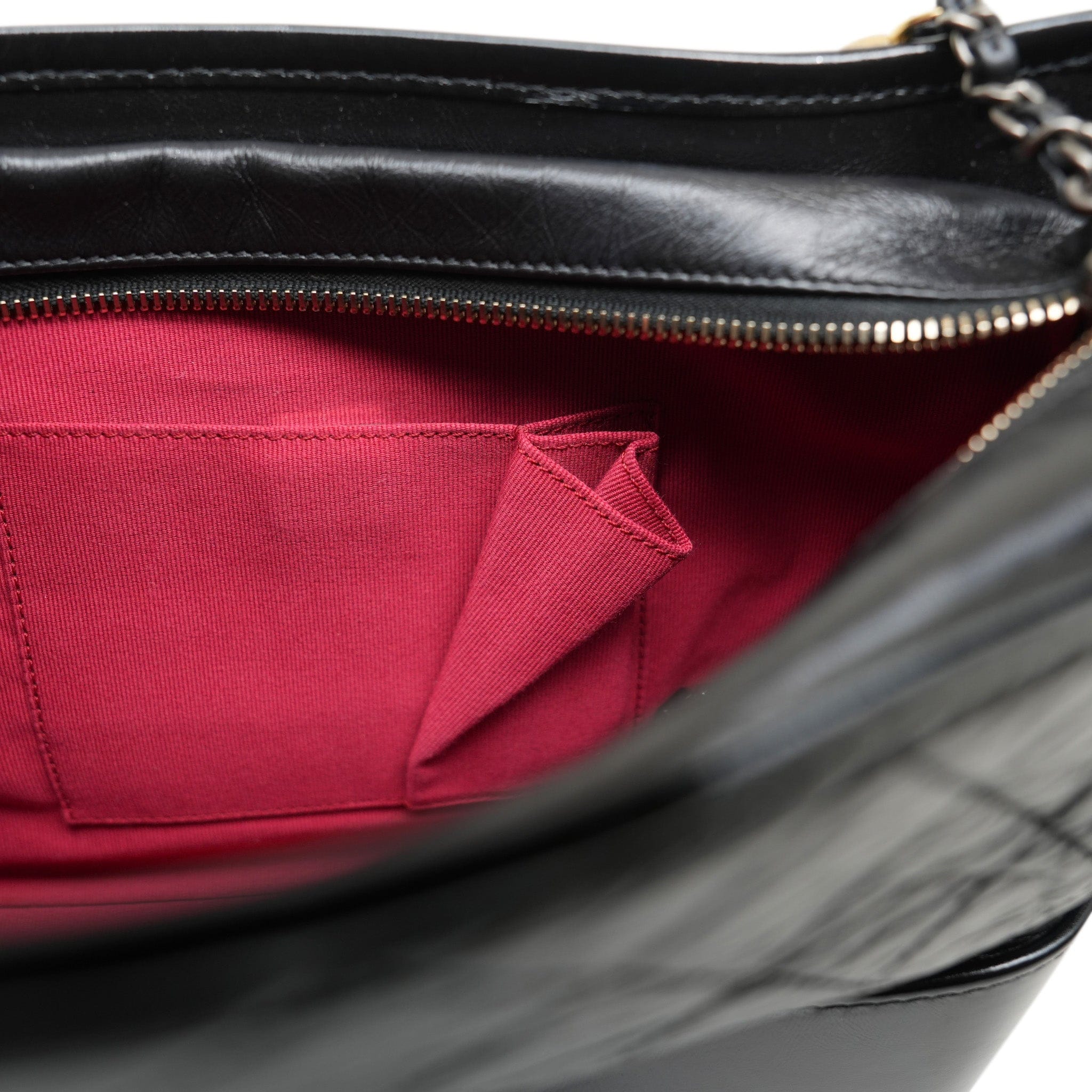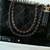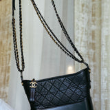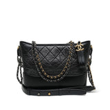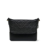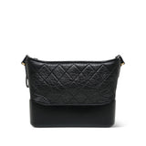 Black Aged Calfskin Quilted Gabrielle Hobo Bag Medium MHW
