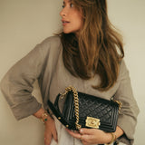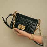 Black Boy Bag Lambskin Quilted Small Aged Gold Hardware
