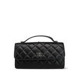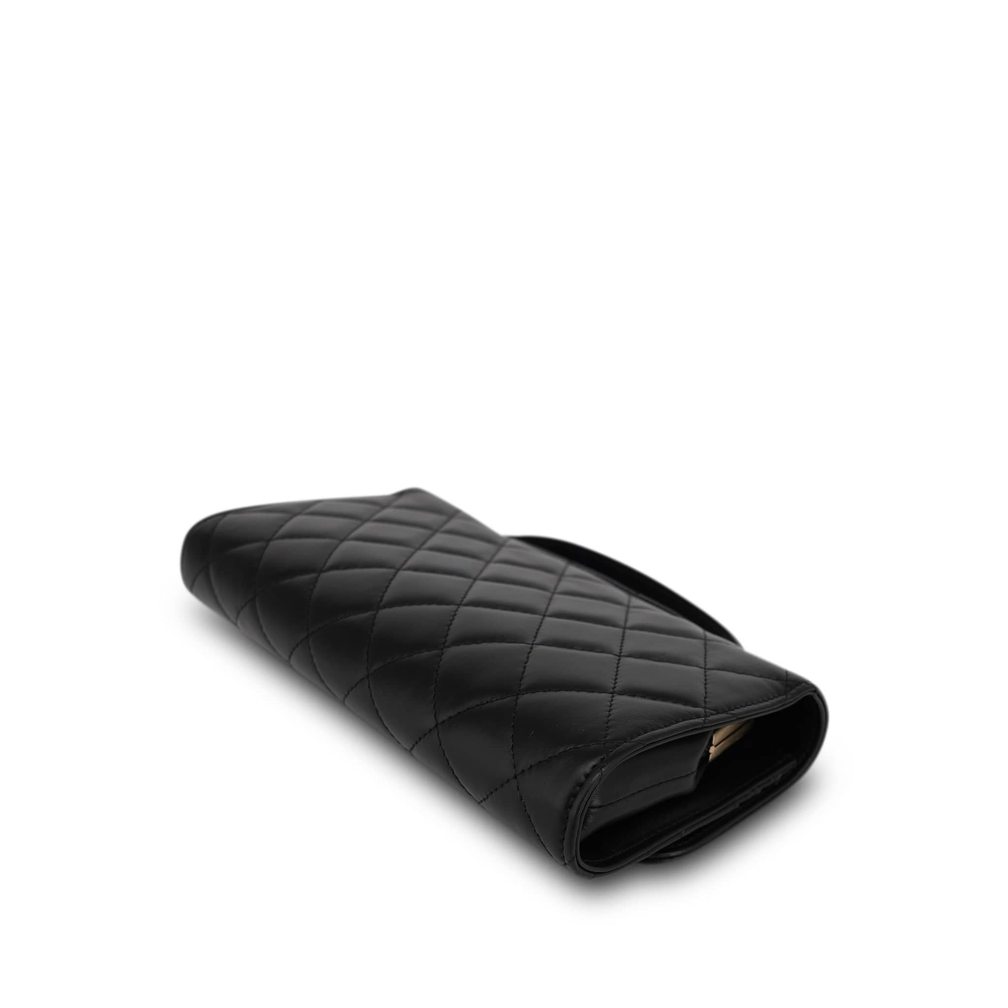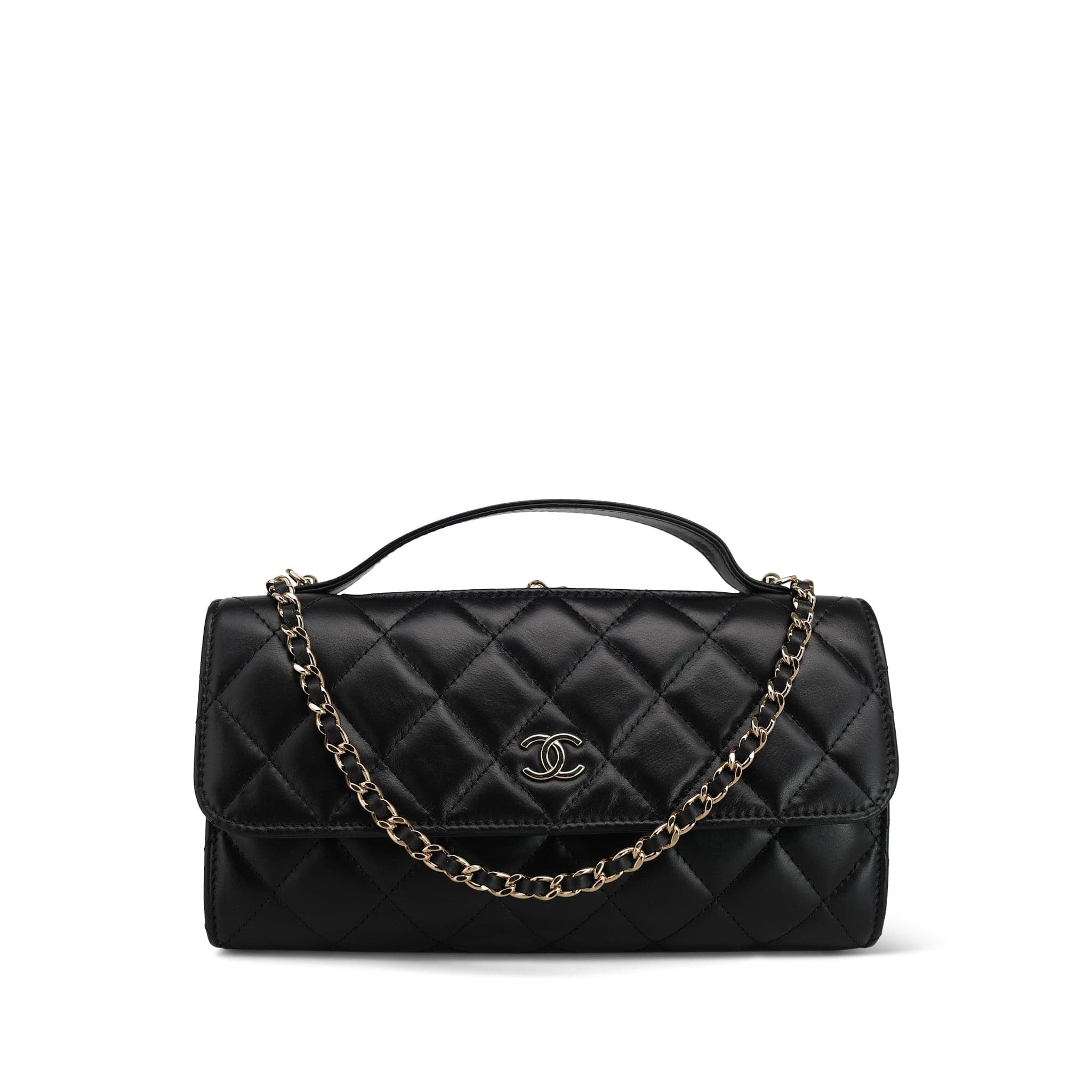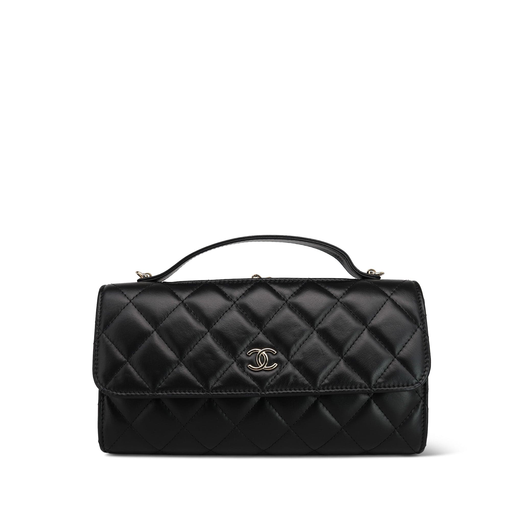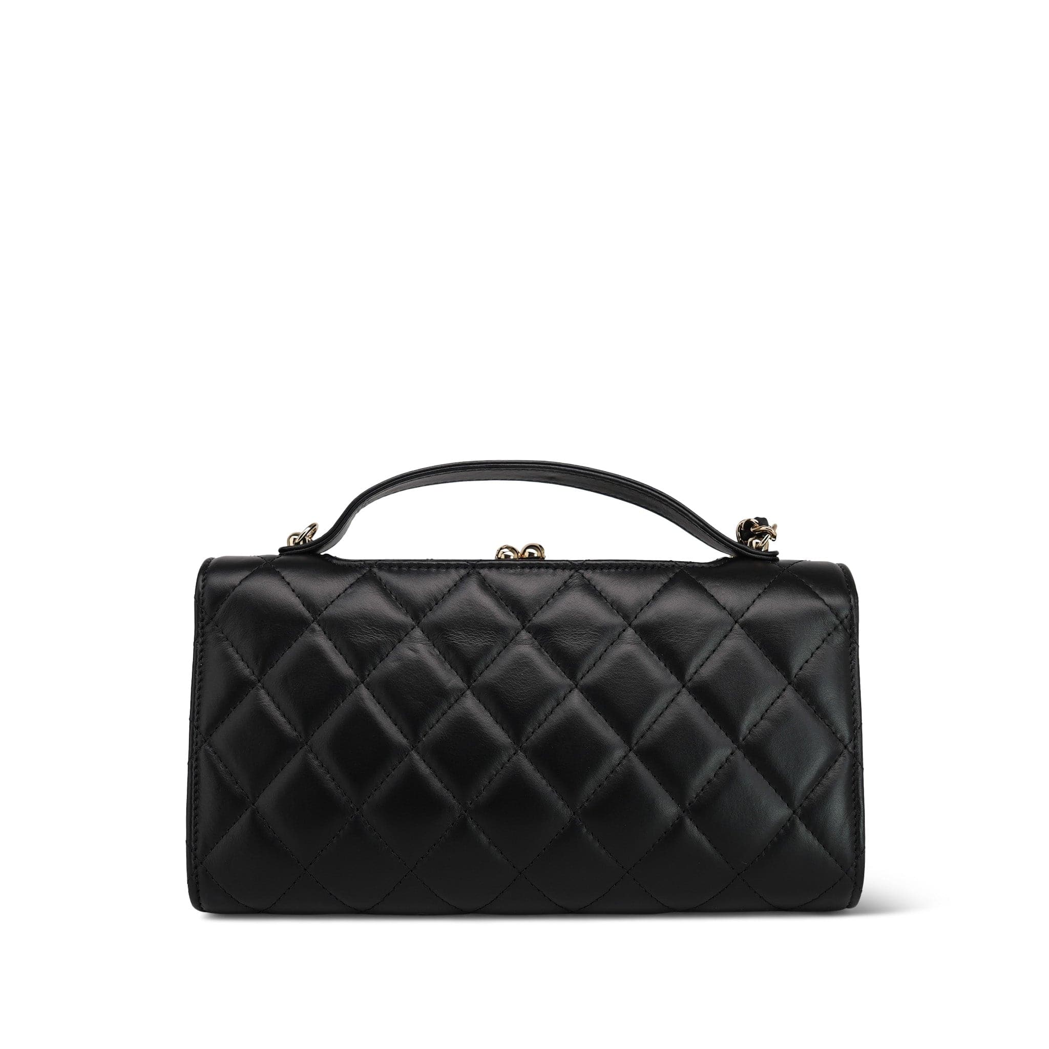 Black Calfskin Quilted Top Handle Kisslock Phone Holder On Chain LGHW