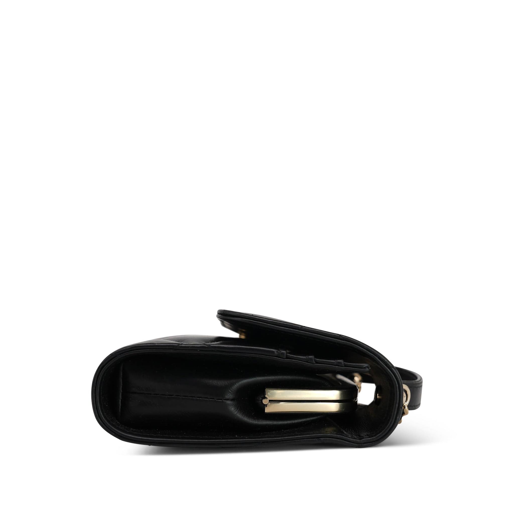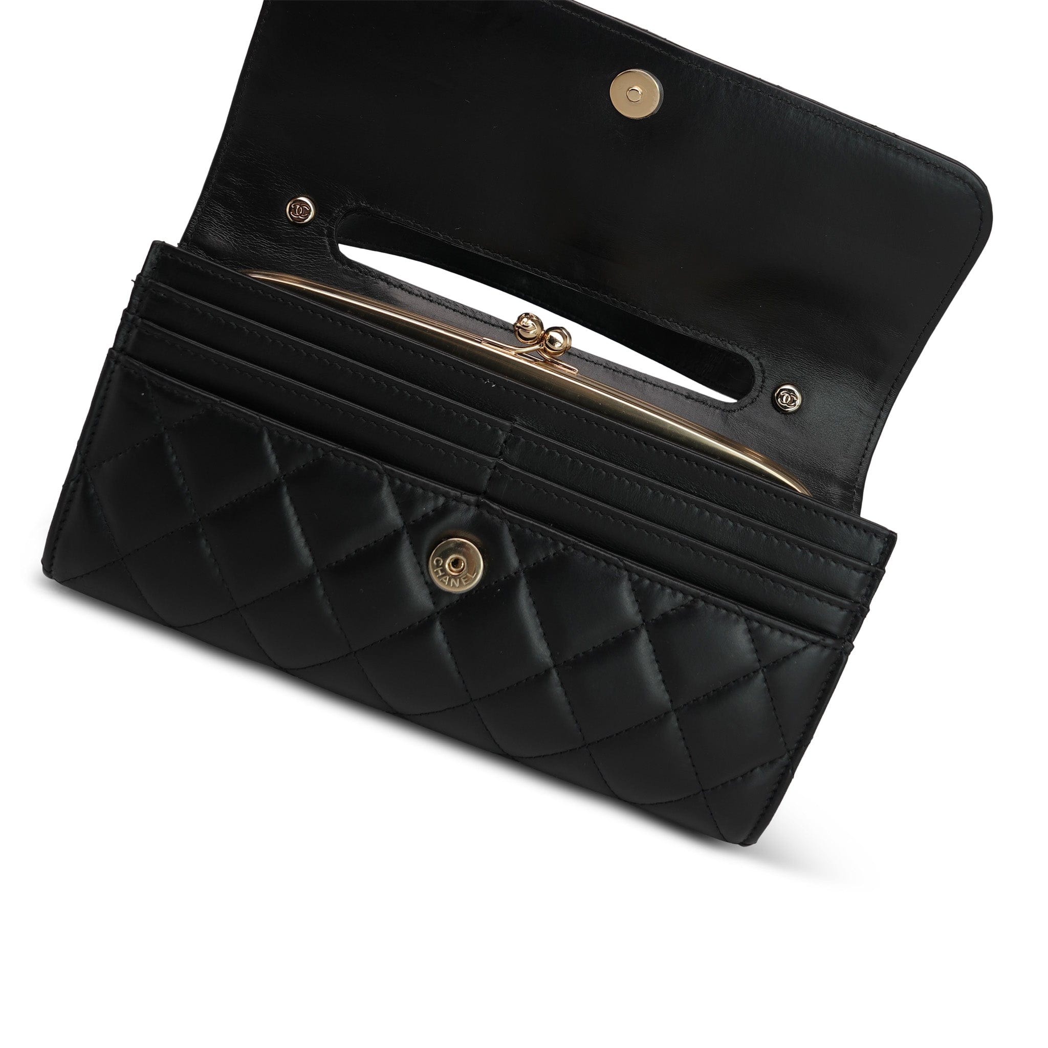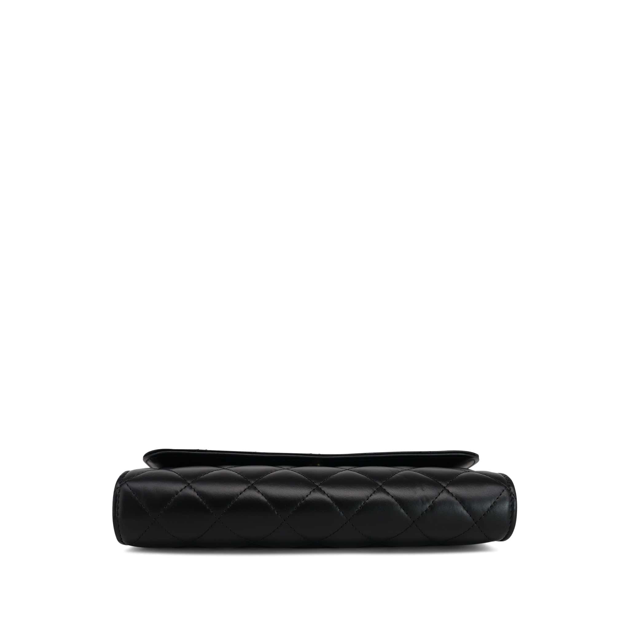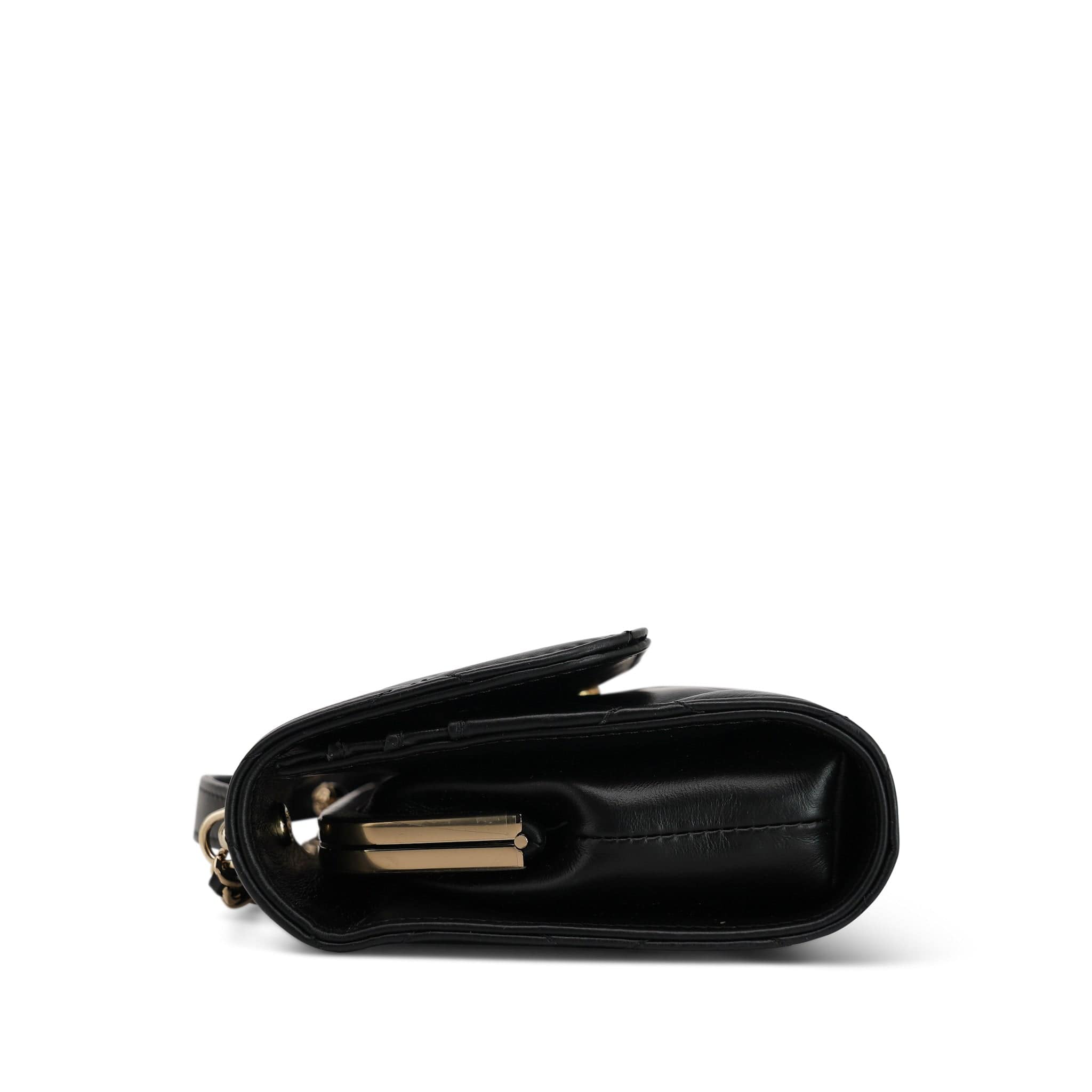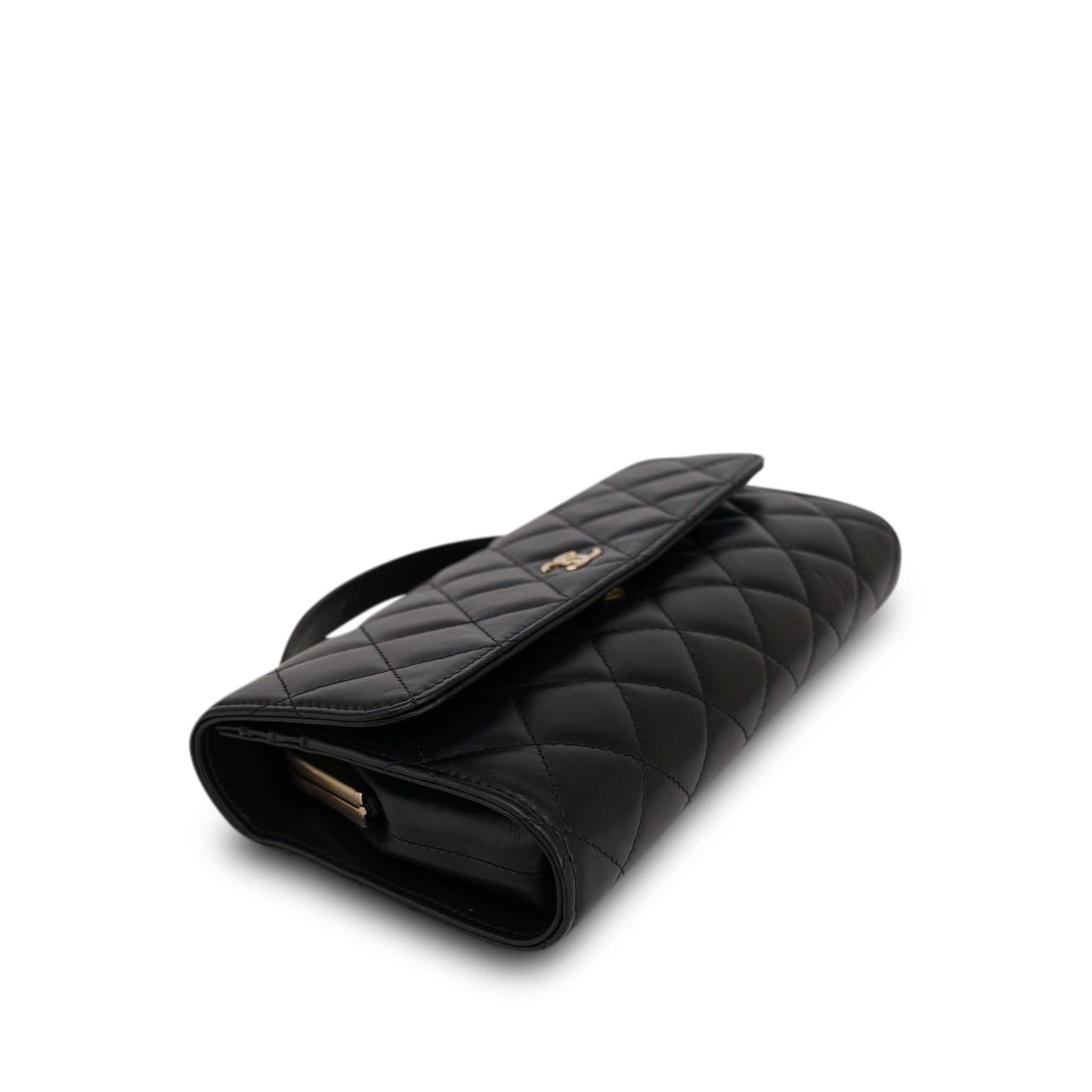 Black Calfskin Quilted Top Handle Kisslock Phone Holder On Chain LGHW