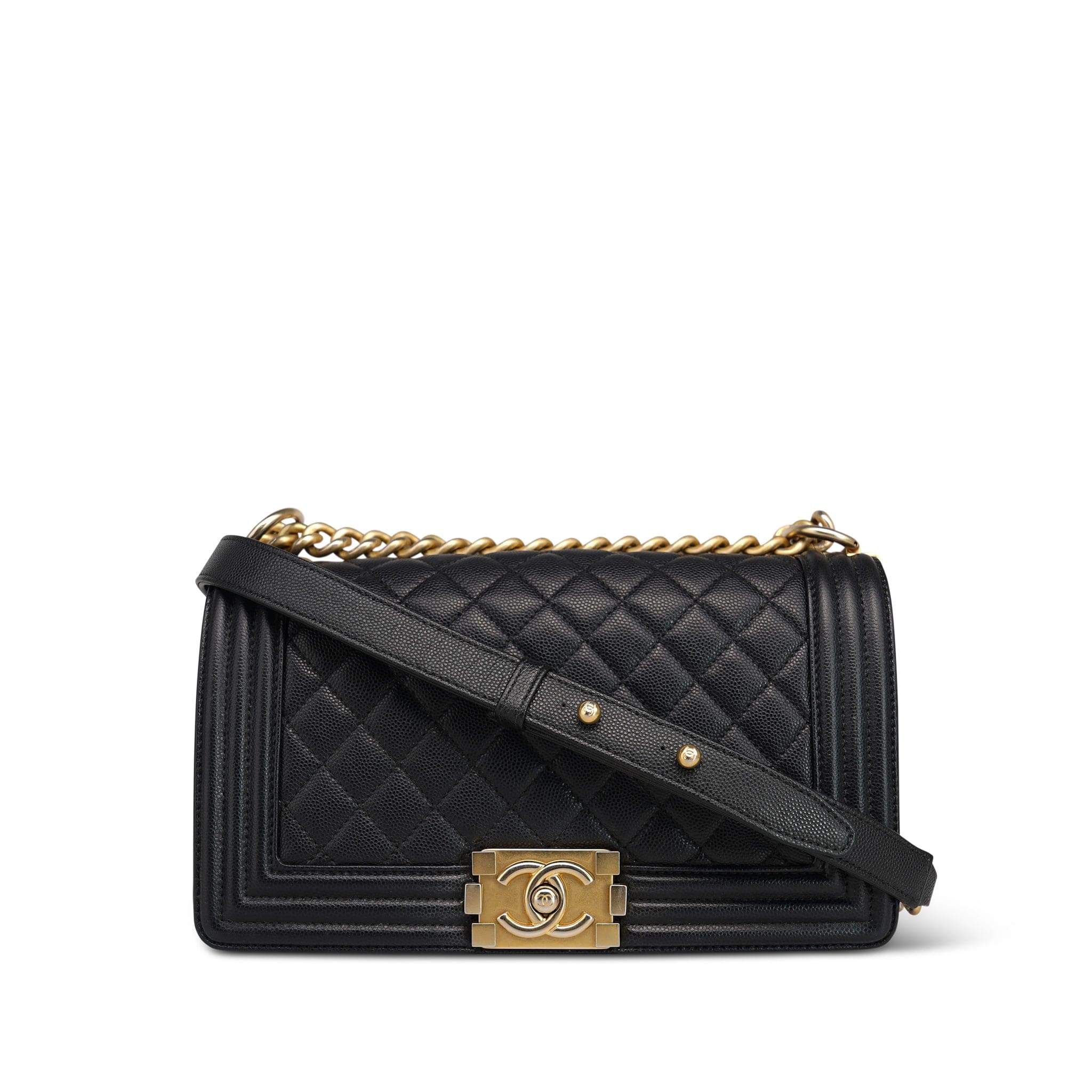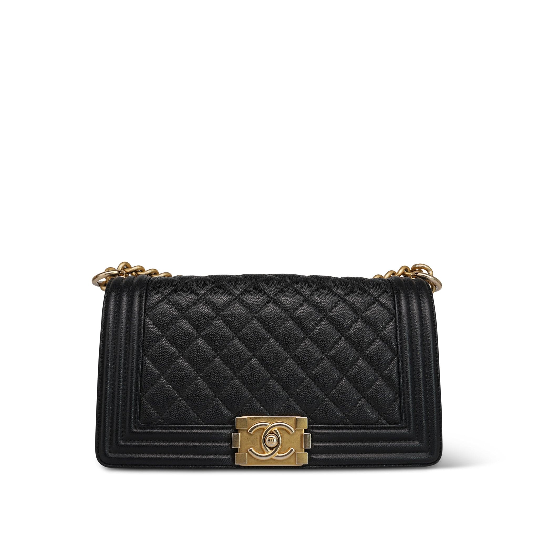 Black Caviar Quilted Boy Bag Old Medium AGHW
