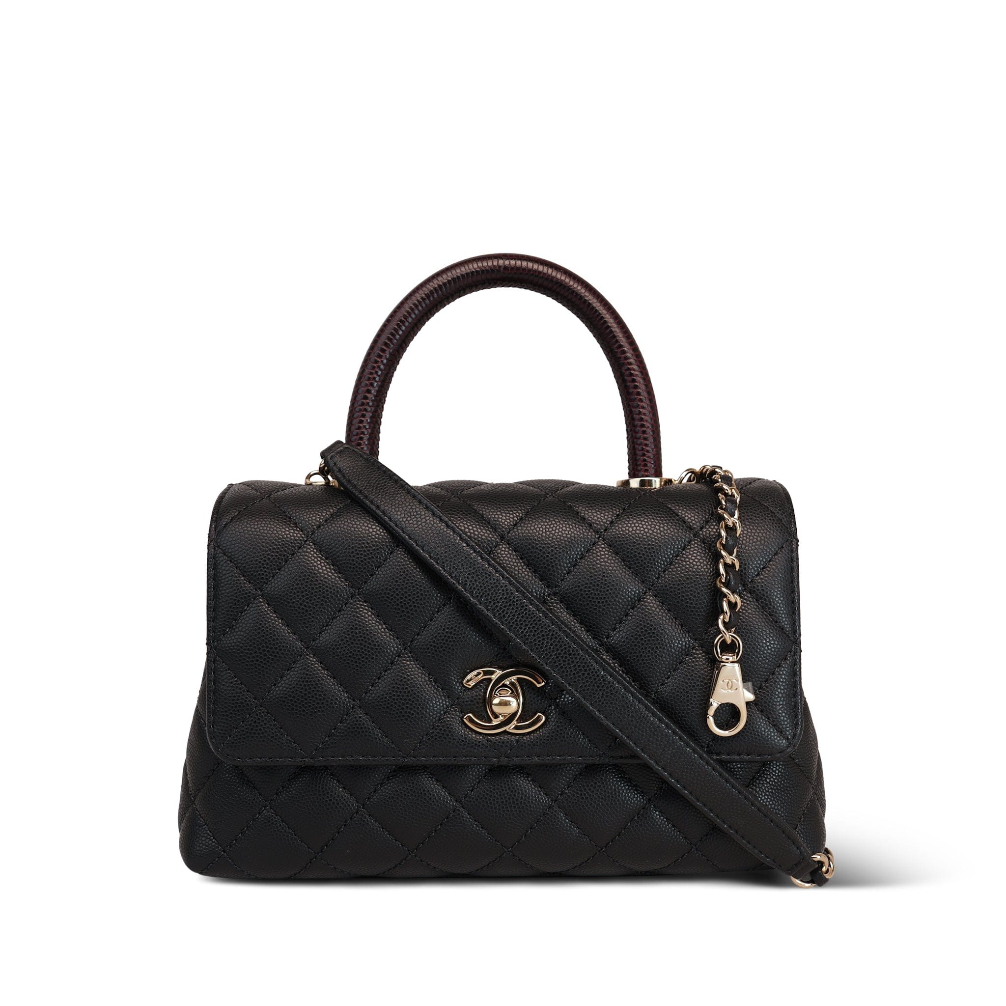 Black Caviar Quilted Burgundy Lizard Coco Handle Small LGHW