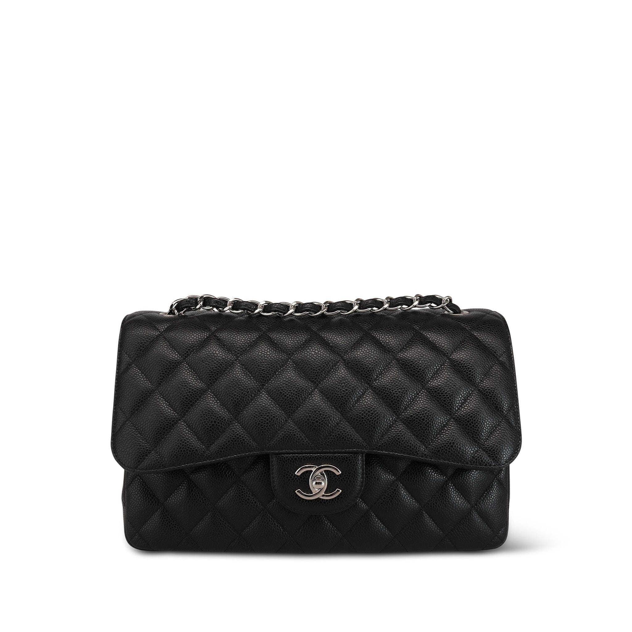 Black Caviar Quilted Classic Flap Jumbo Silver Hardware