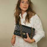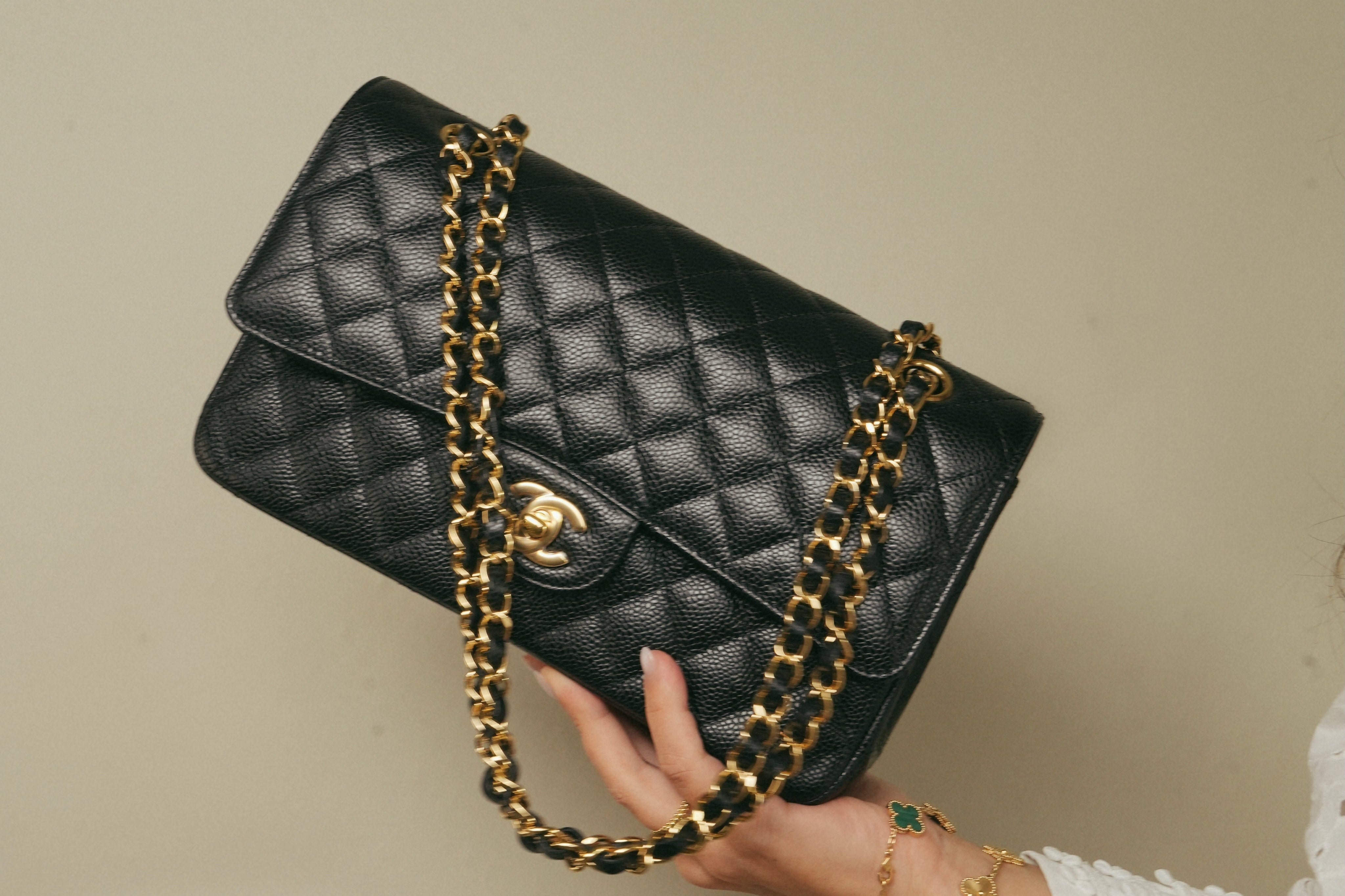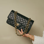 Black Caviar Quilted Double Flap Medium GHW