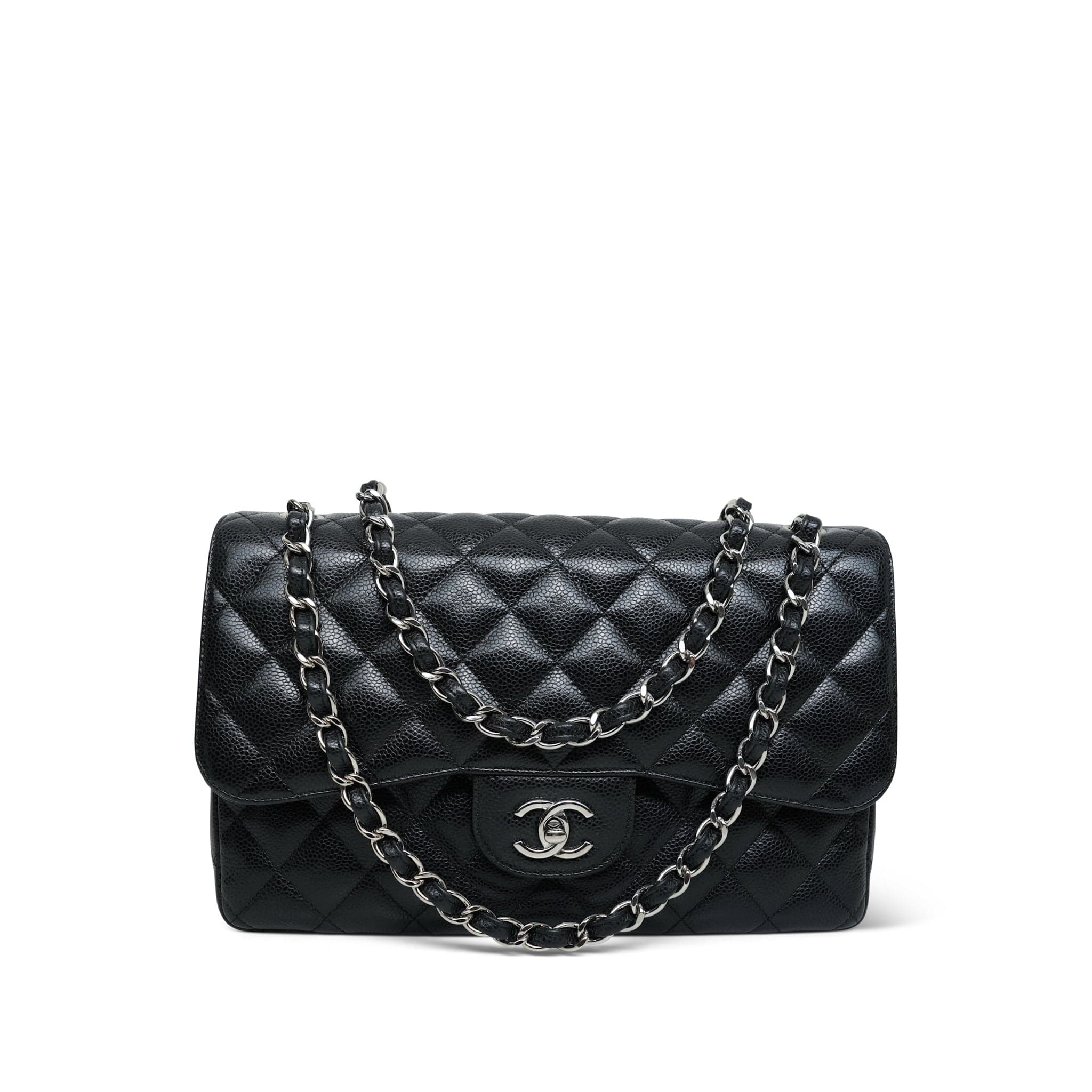 Black Caviar Quilted Jumbo Classic Flap SHW