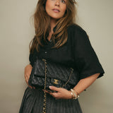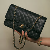 Black Caviar Quilted Medium Double Flap Gold Hardware