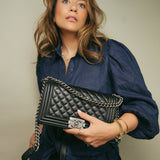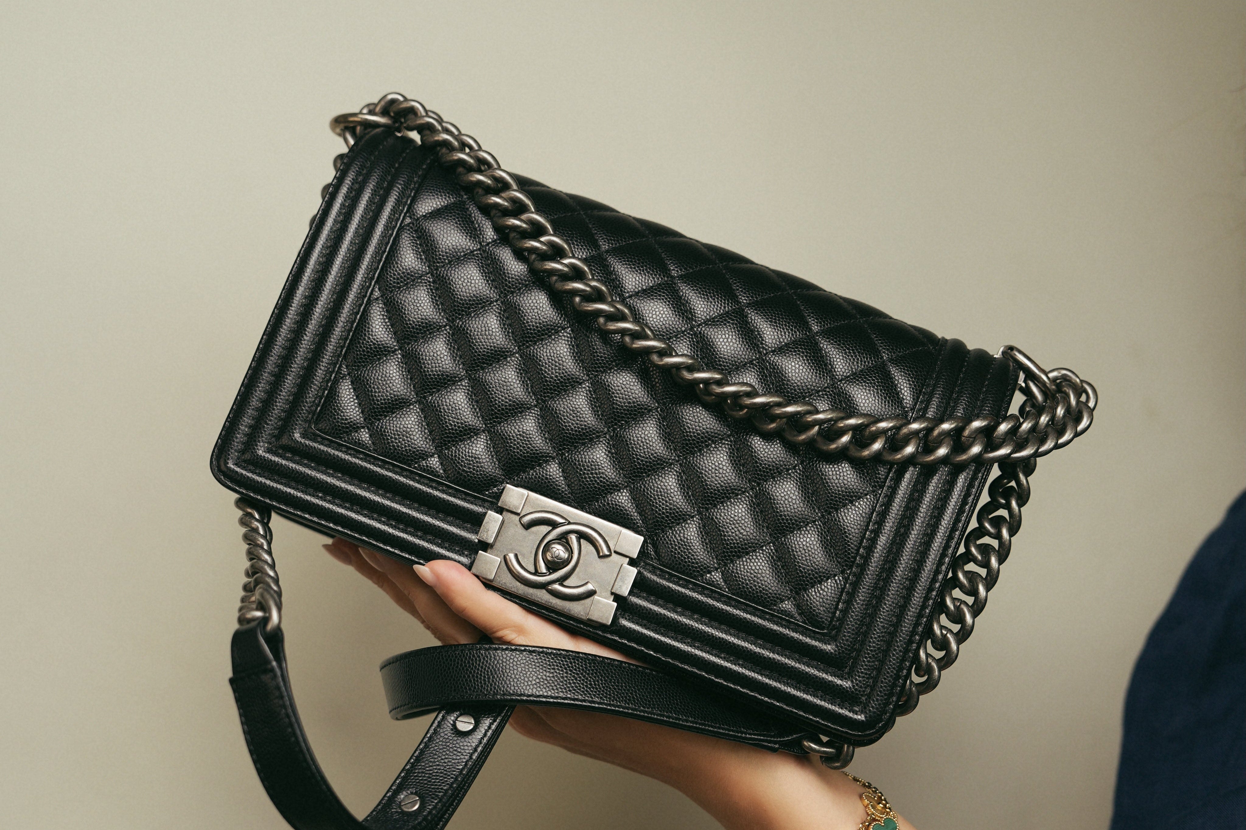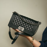 Black Caviar Quilted Old Medium Boy Bag Ruthenium HW