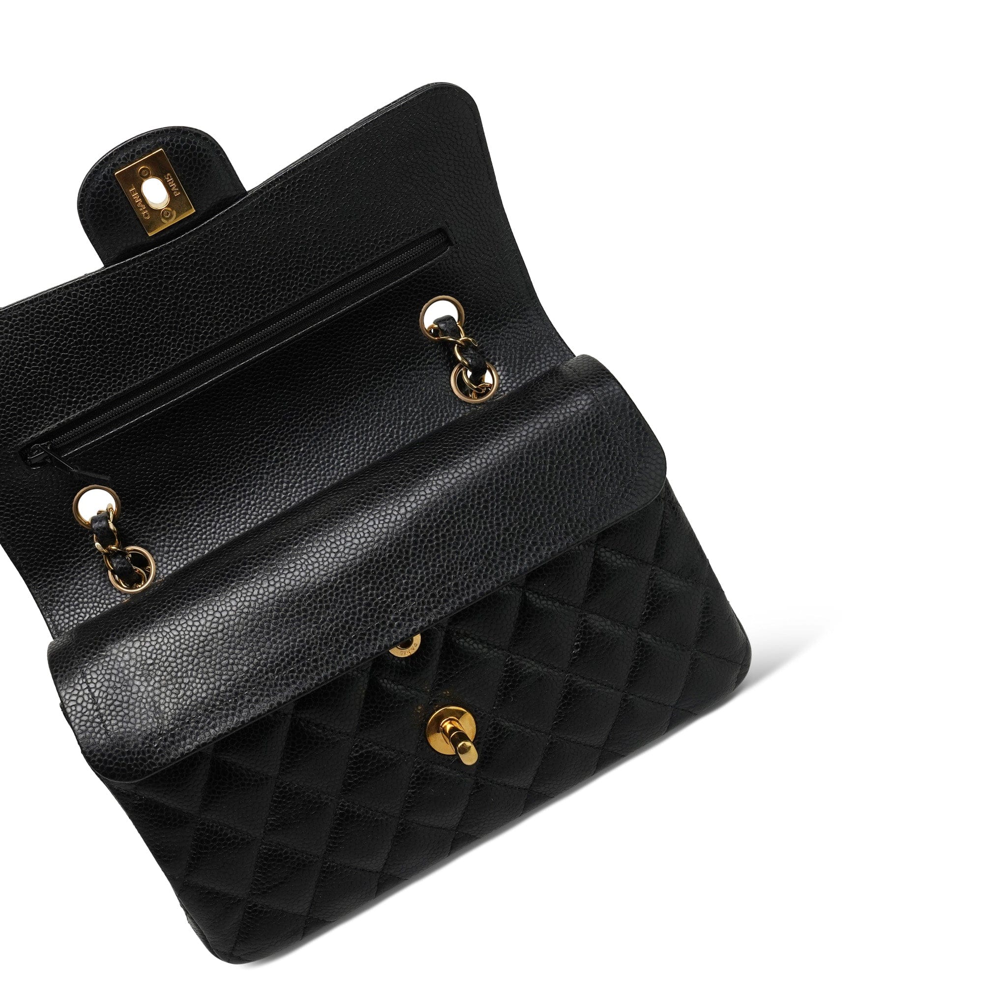 Black Caviar Quilted Small Classic Flap Gold HW