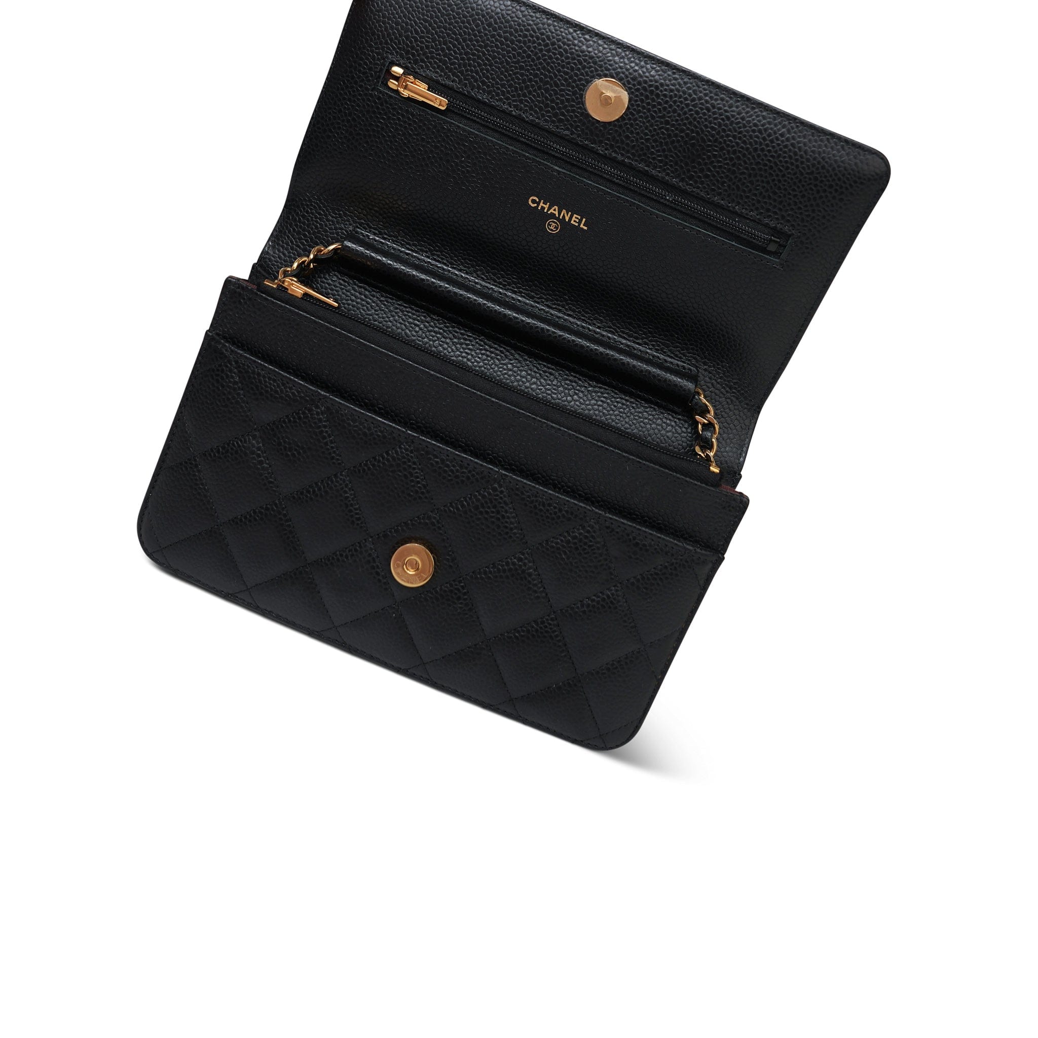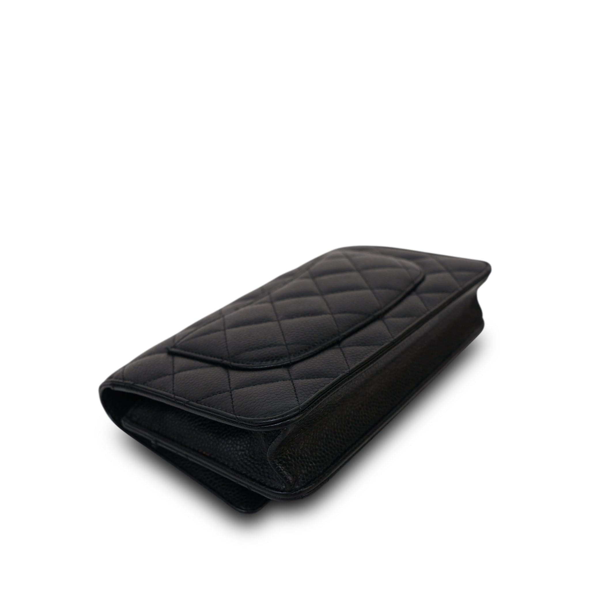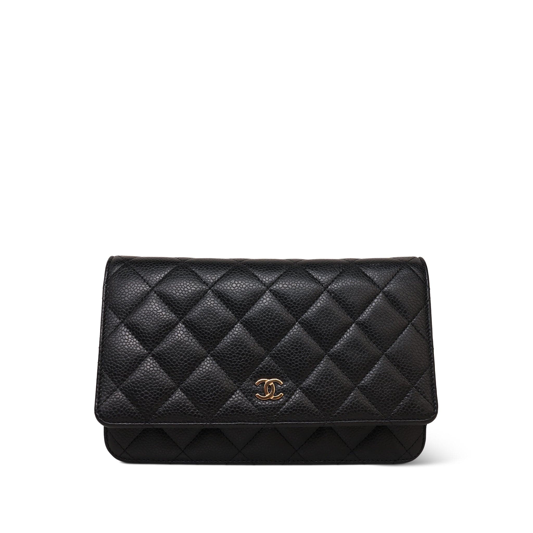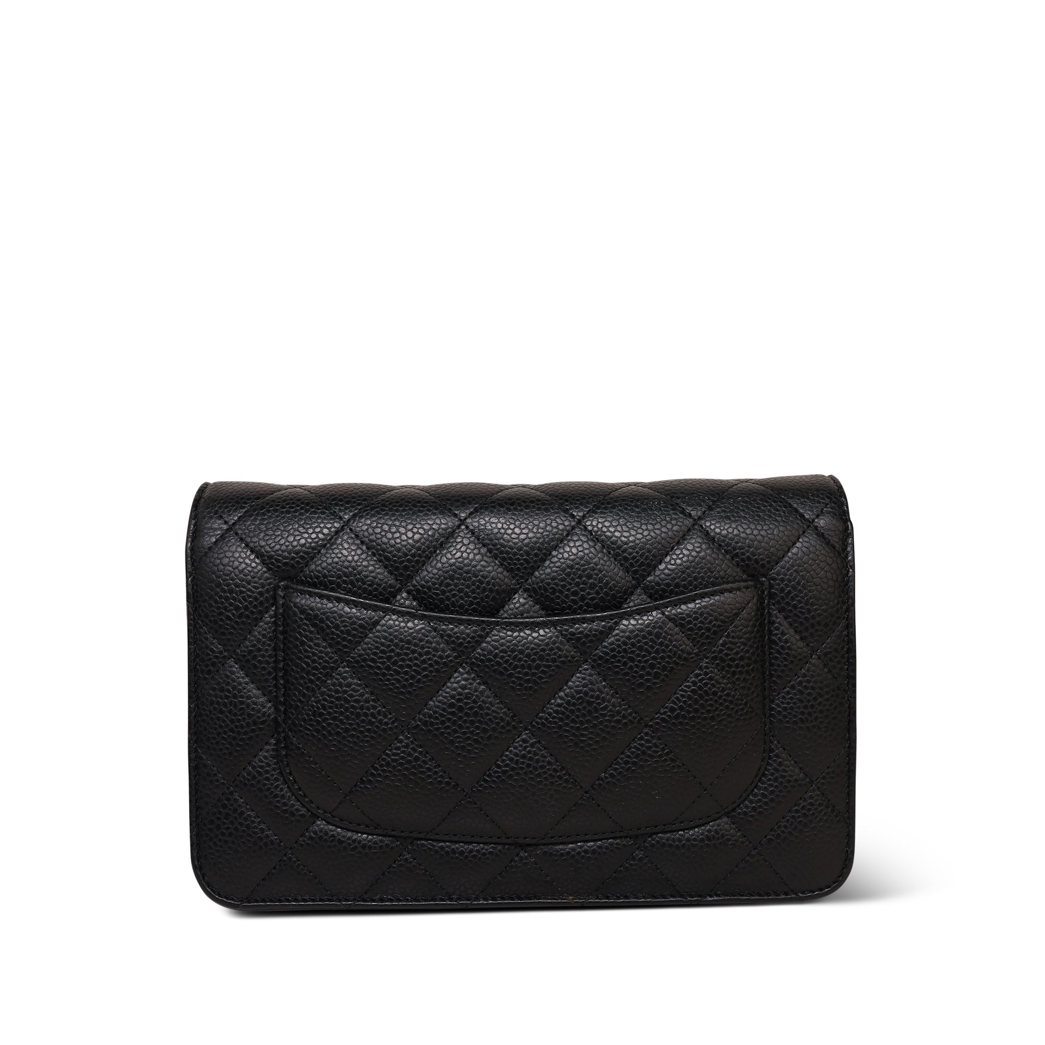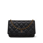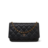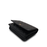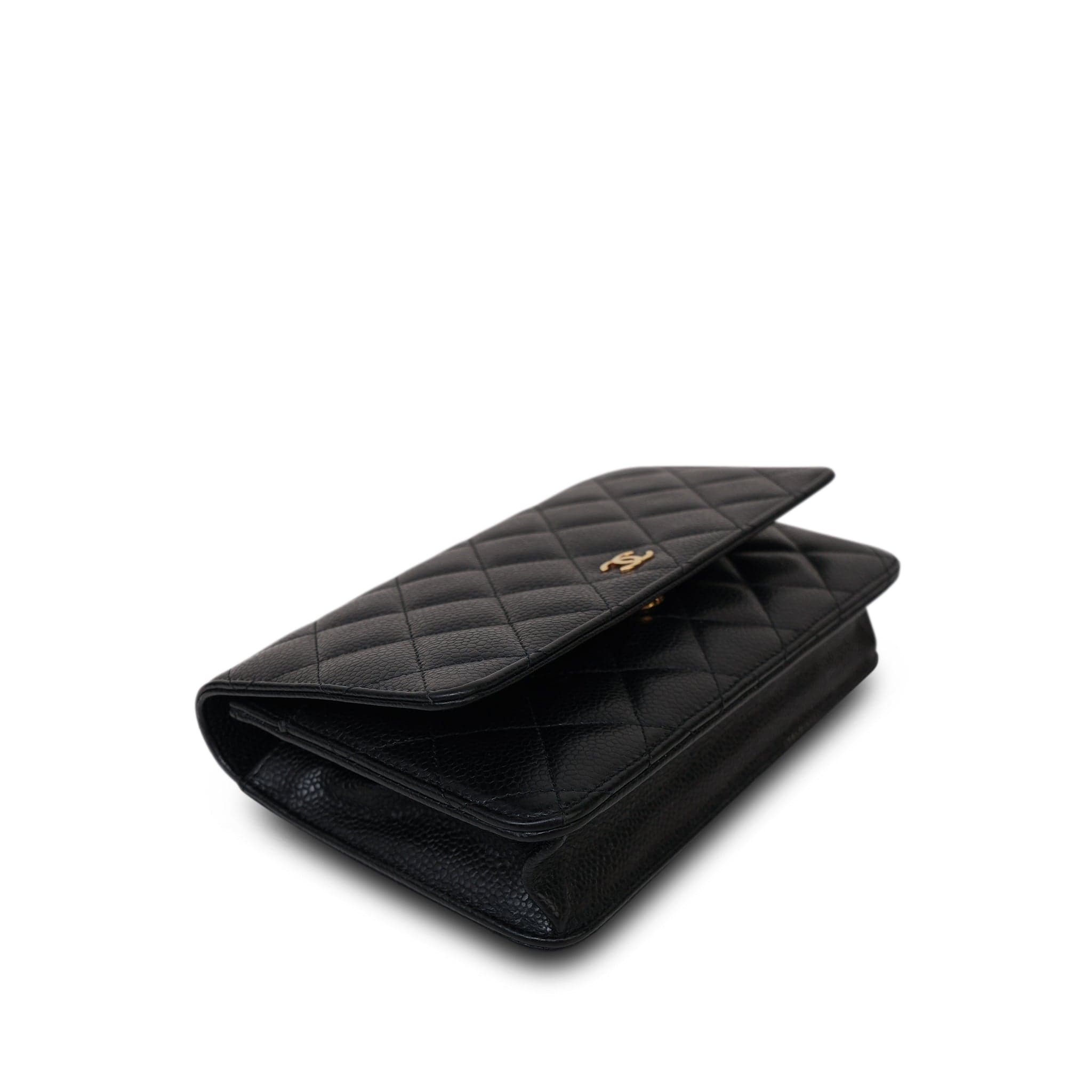 Black Caviar Quilted Wallet on Chain WOC Gold HW