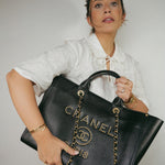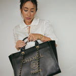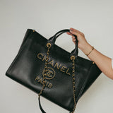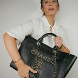 Black Canvas Pearl Medium Deauville Tote Silver Hardware