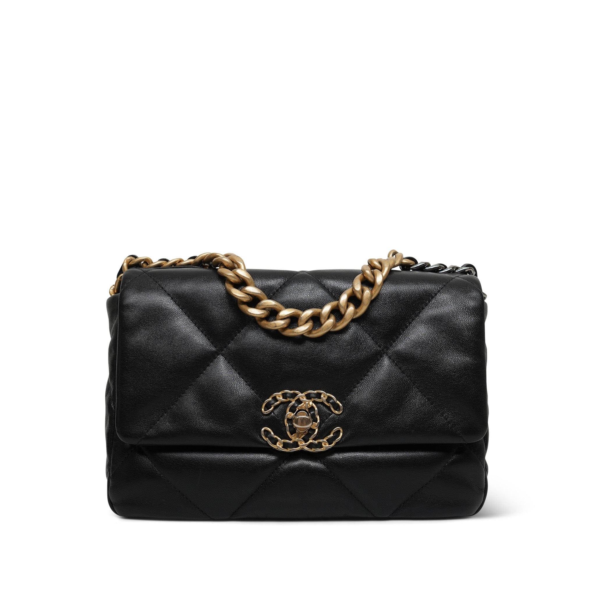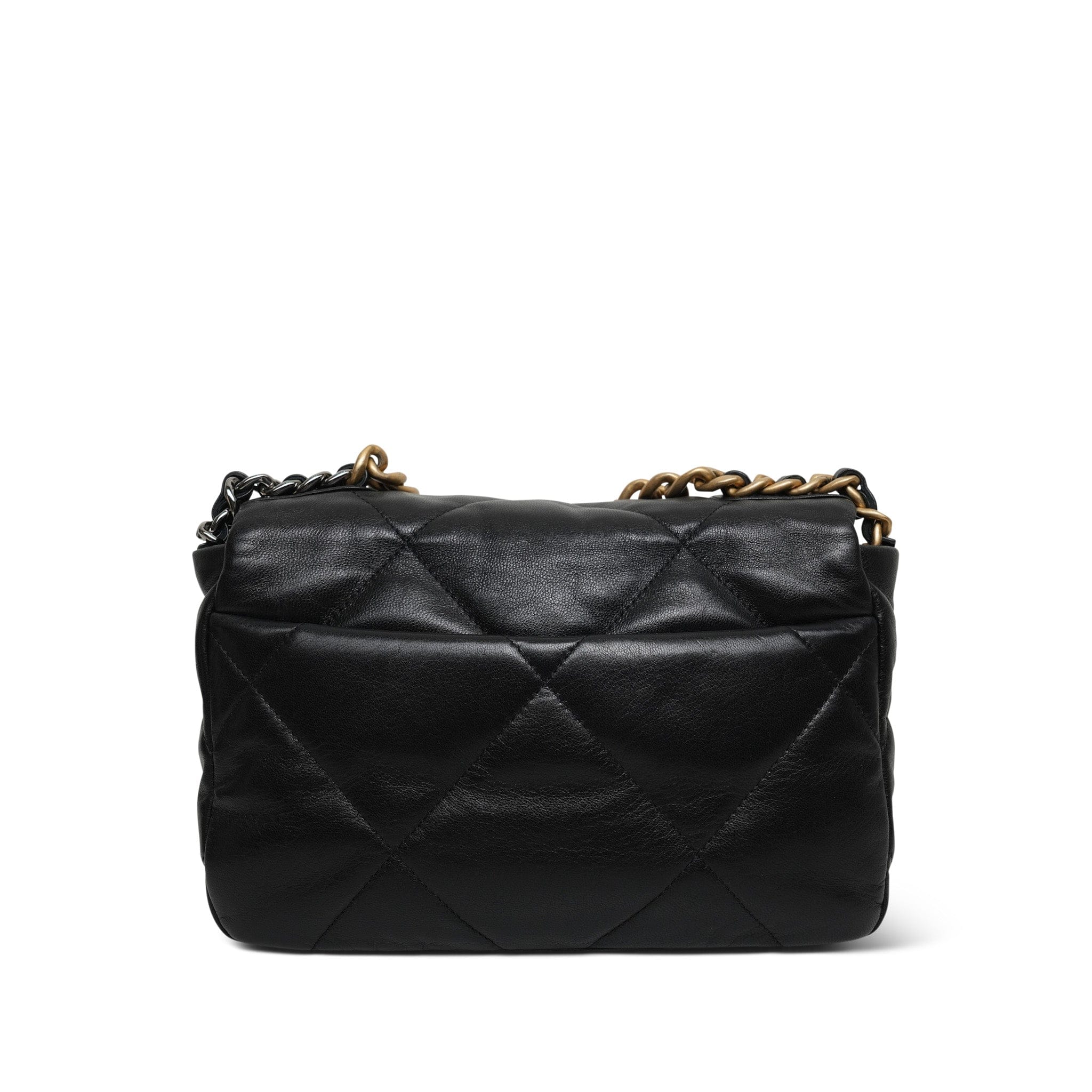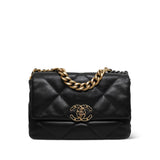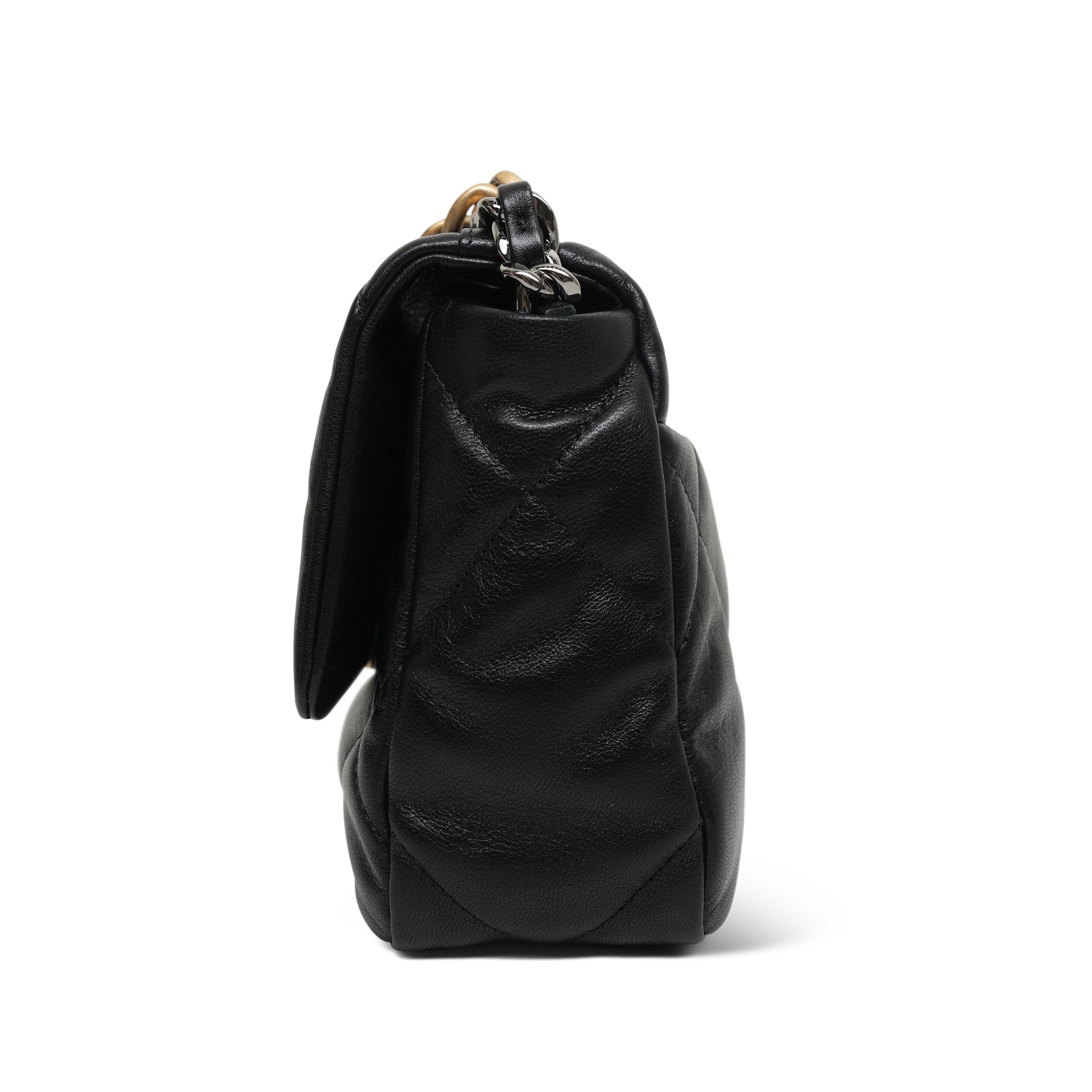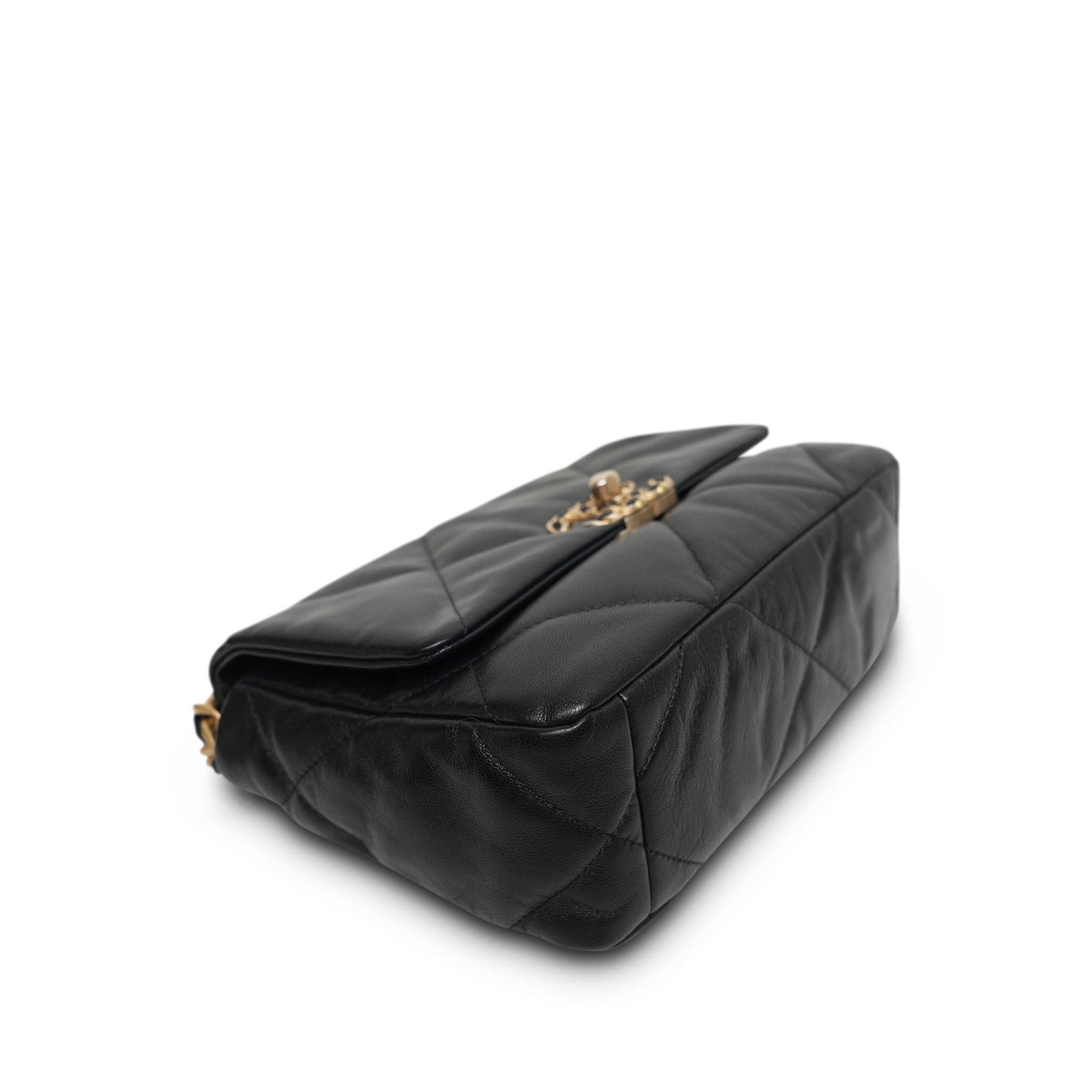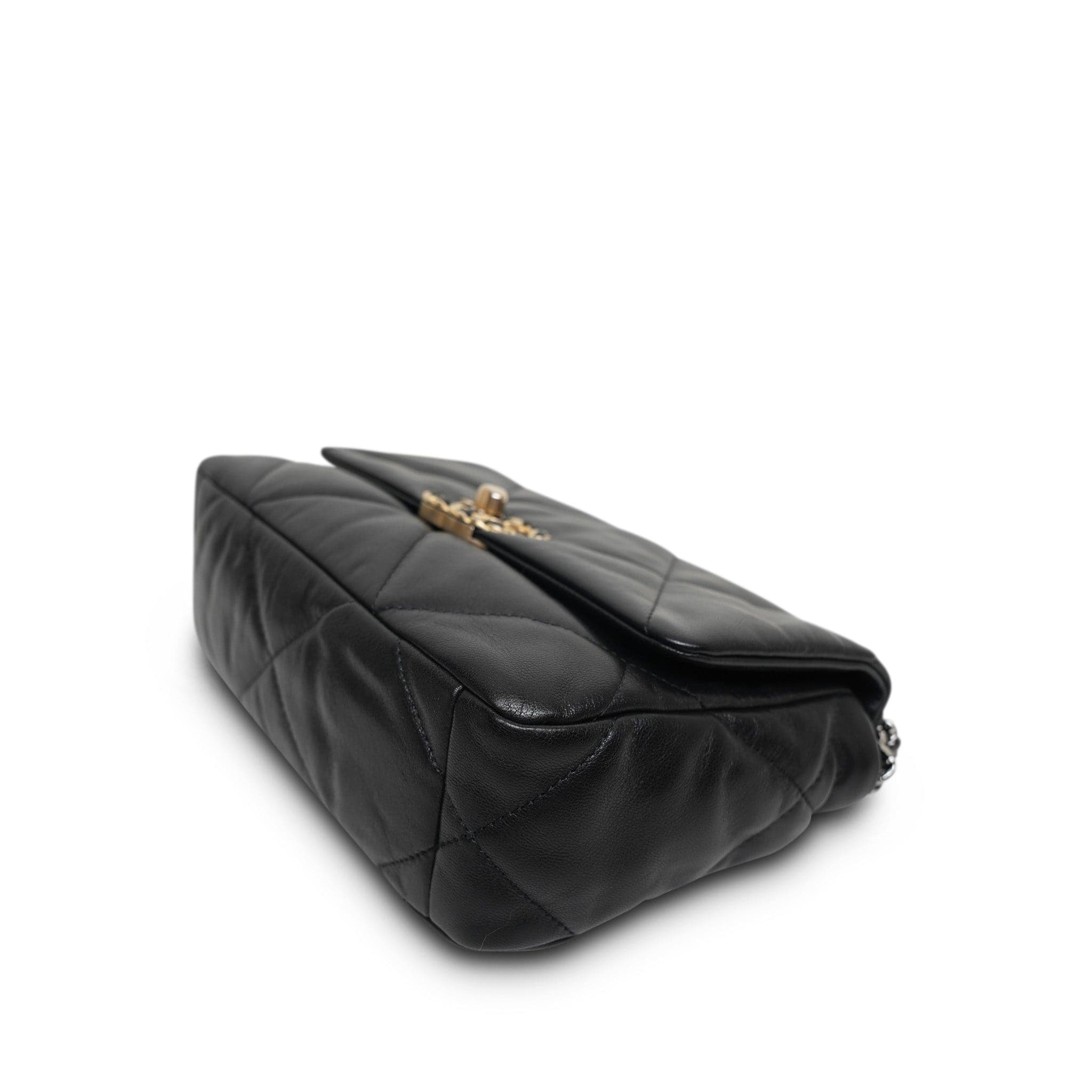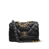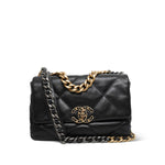 Black Goatskin Quilted 19 Flap Small Mixed Hardware