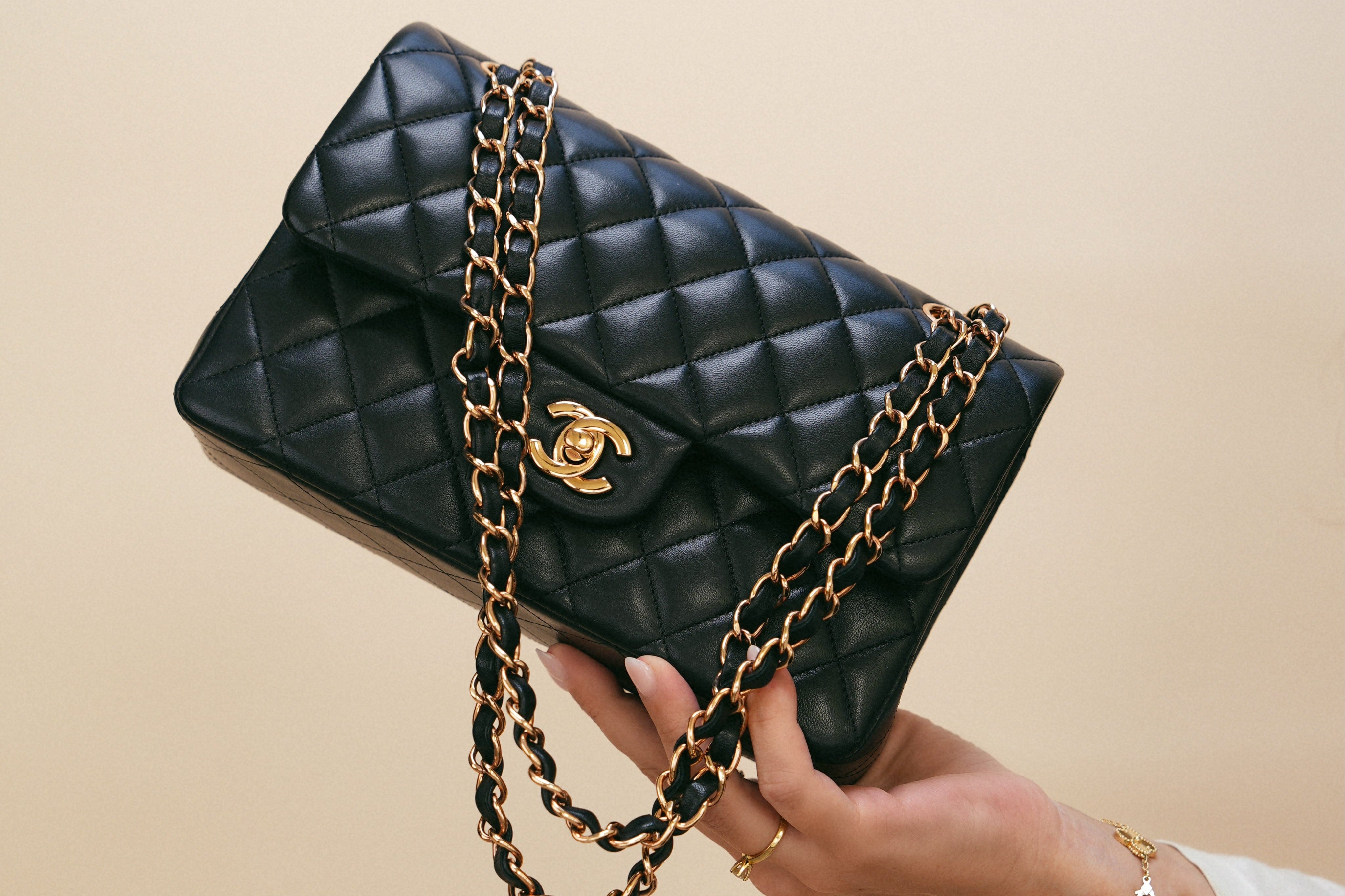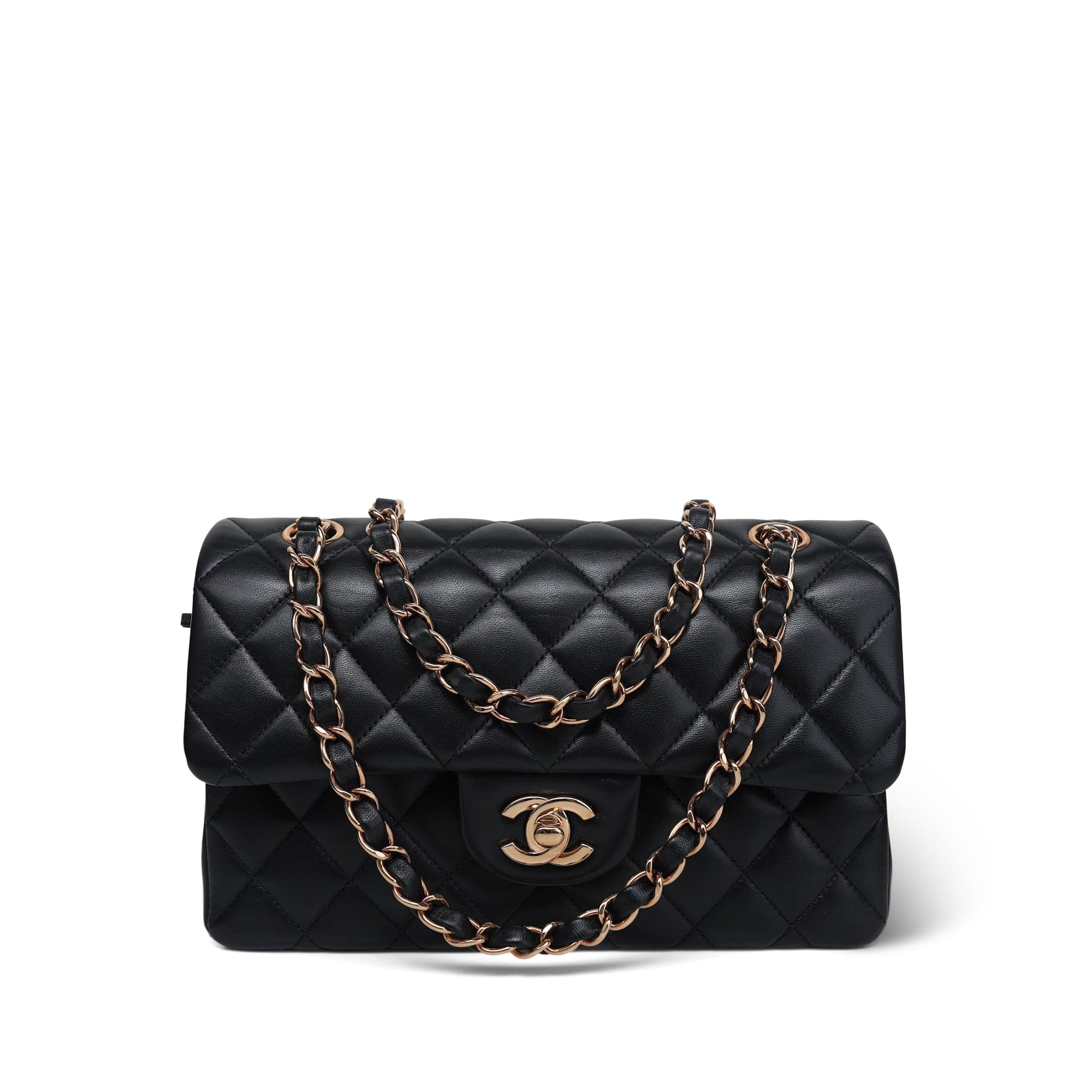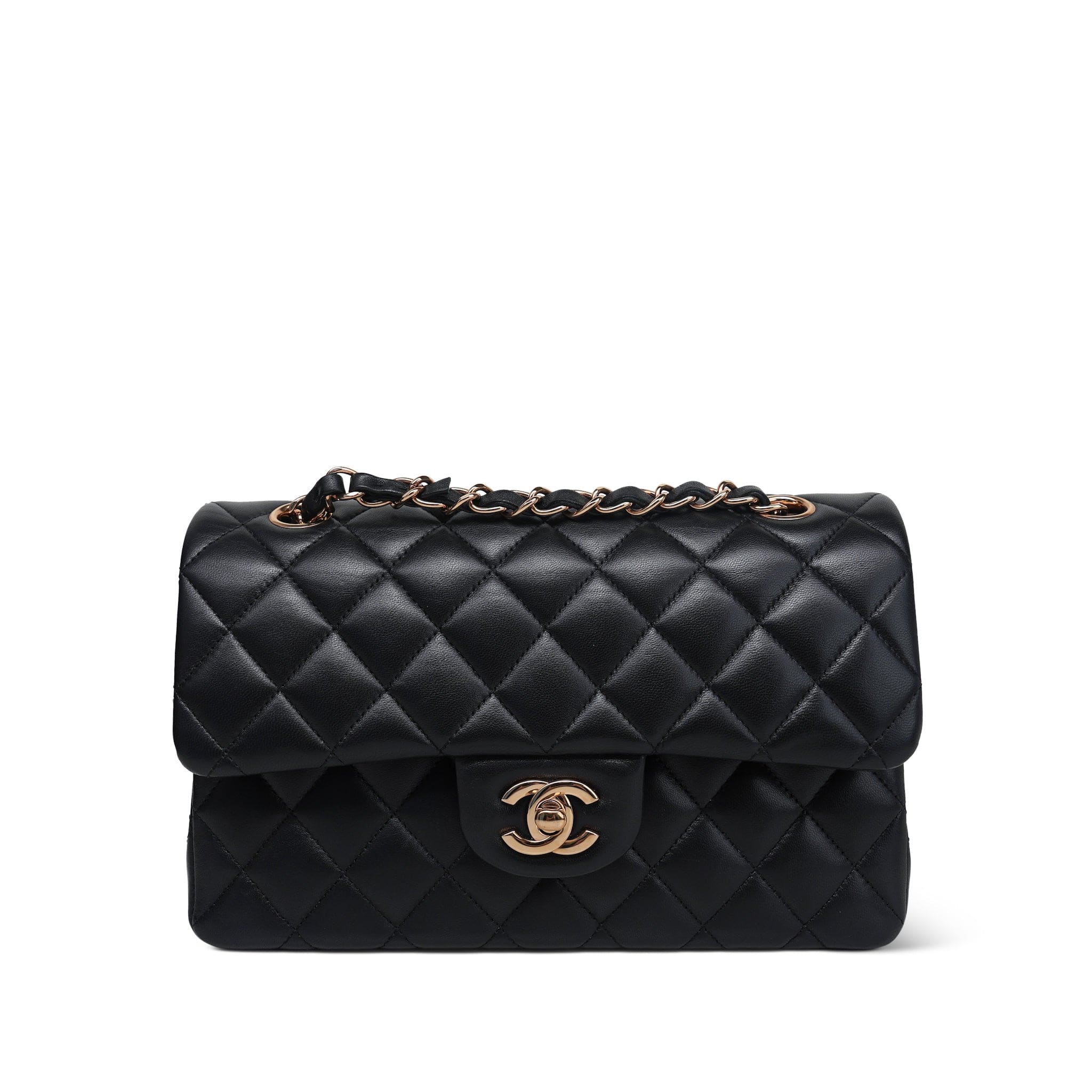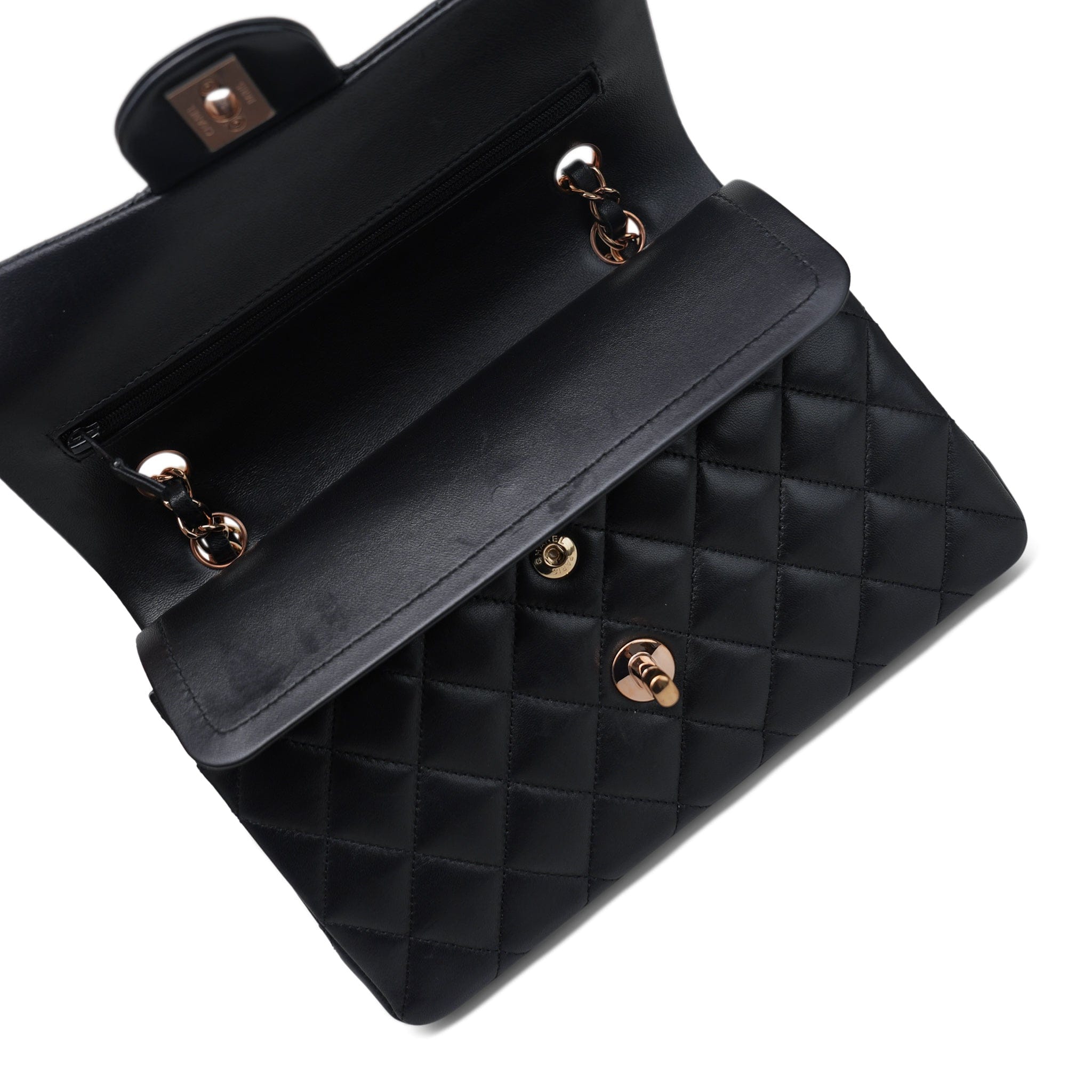 21B Black Lambskin Quilted Classic Flap Small Rose Gold Hardware