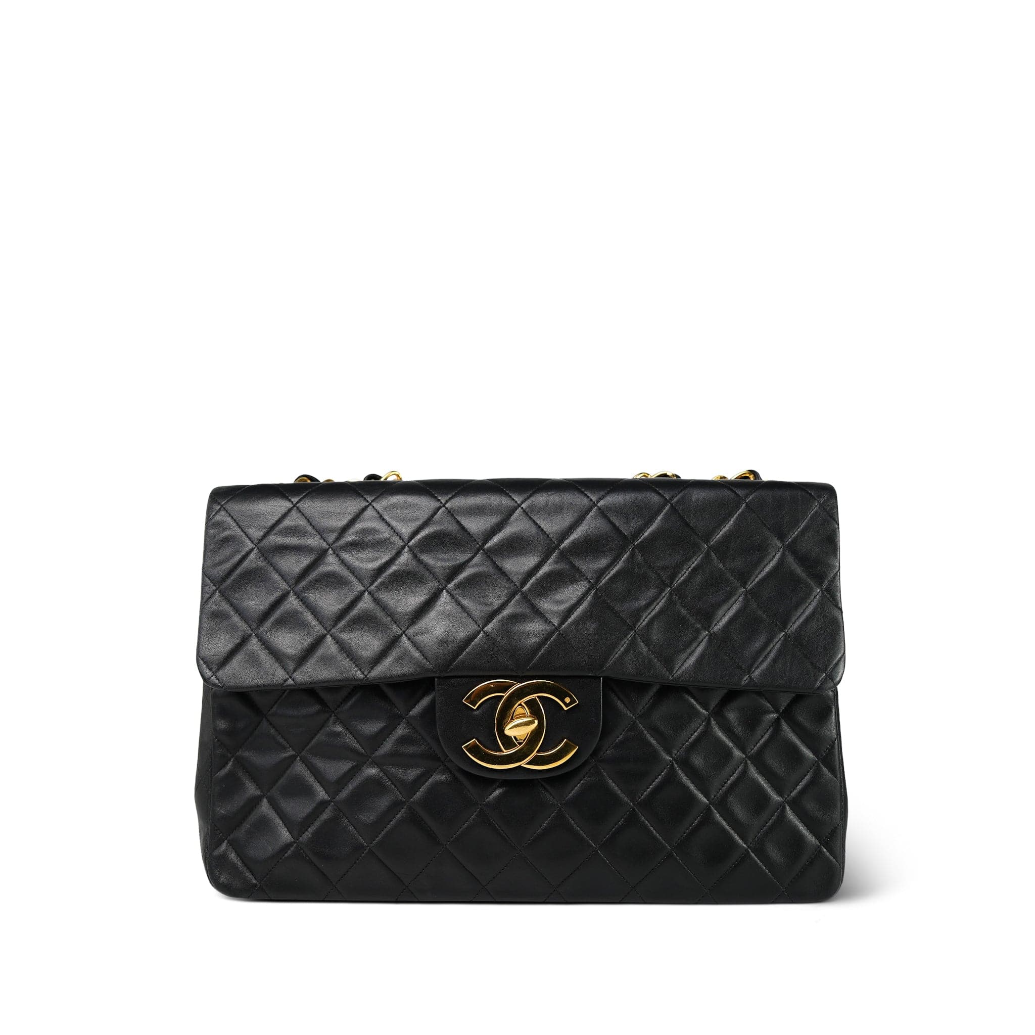 Black Lambskin Quilted Jumbo XL Single Flap GHW