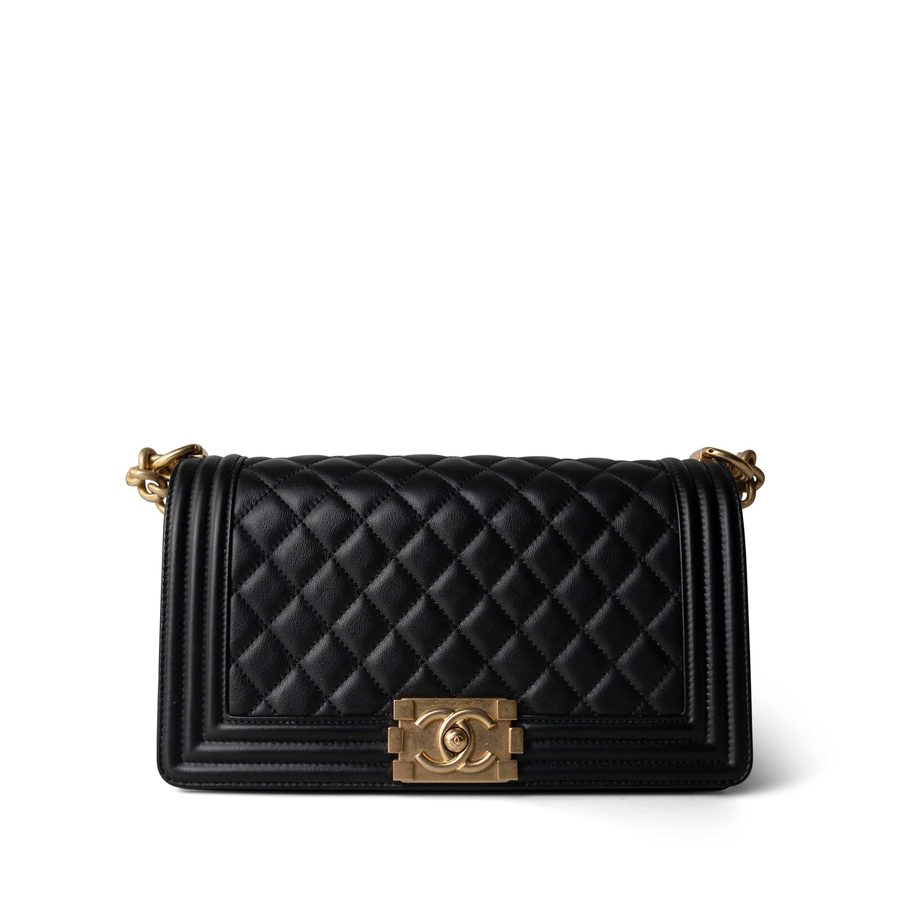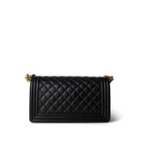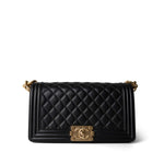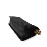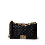 Black Calfskin Quilted Old Medium Boy Bag Aged Gold Hardware
