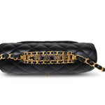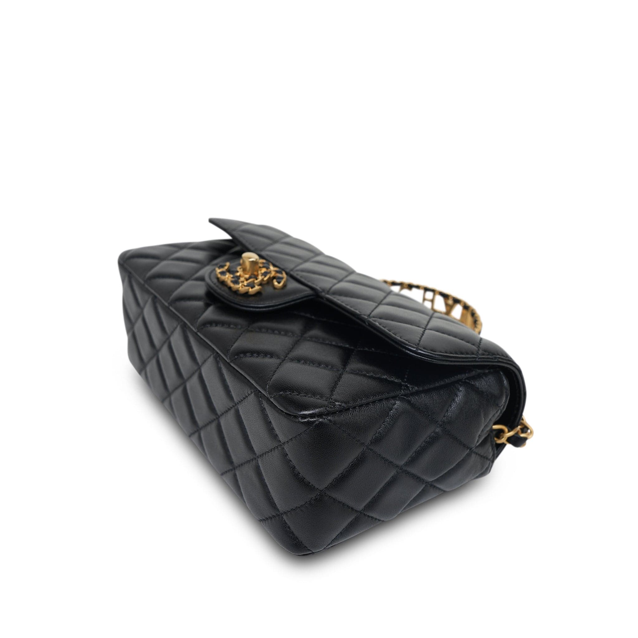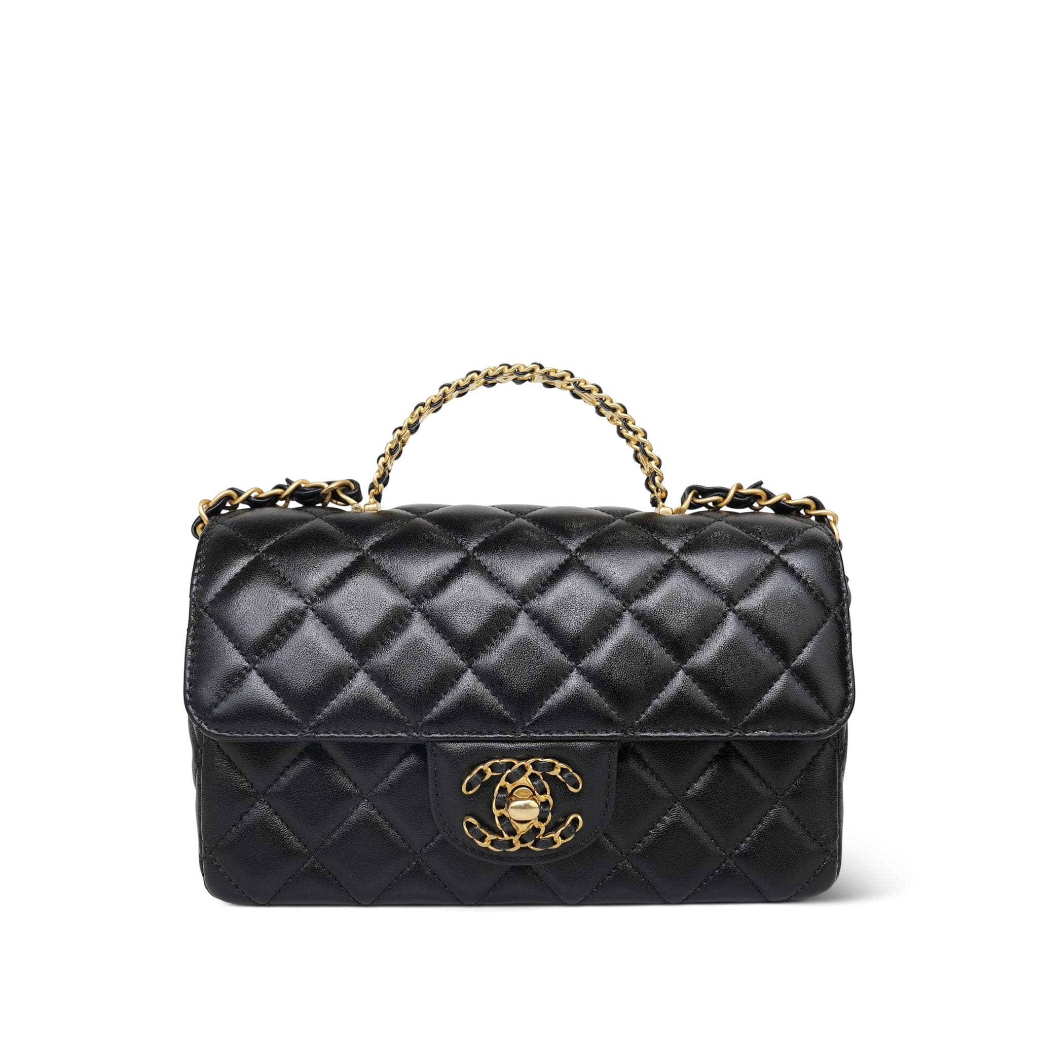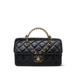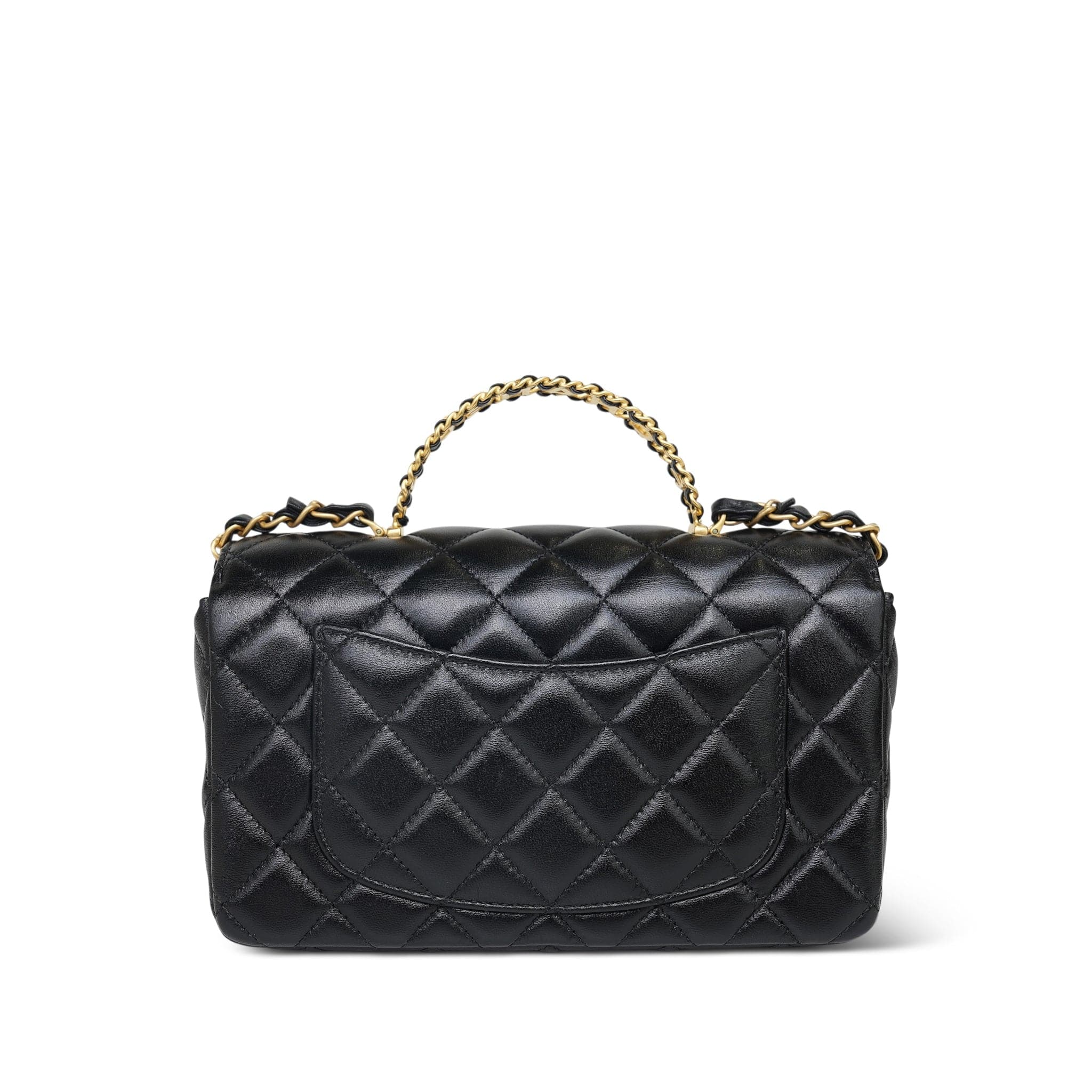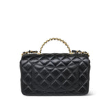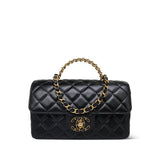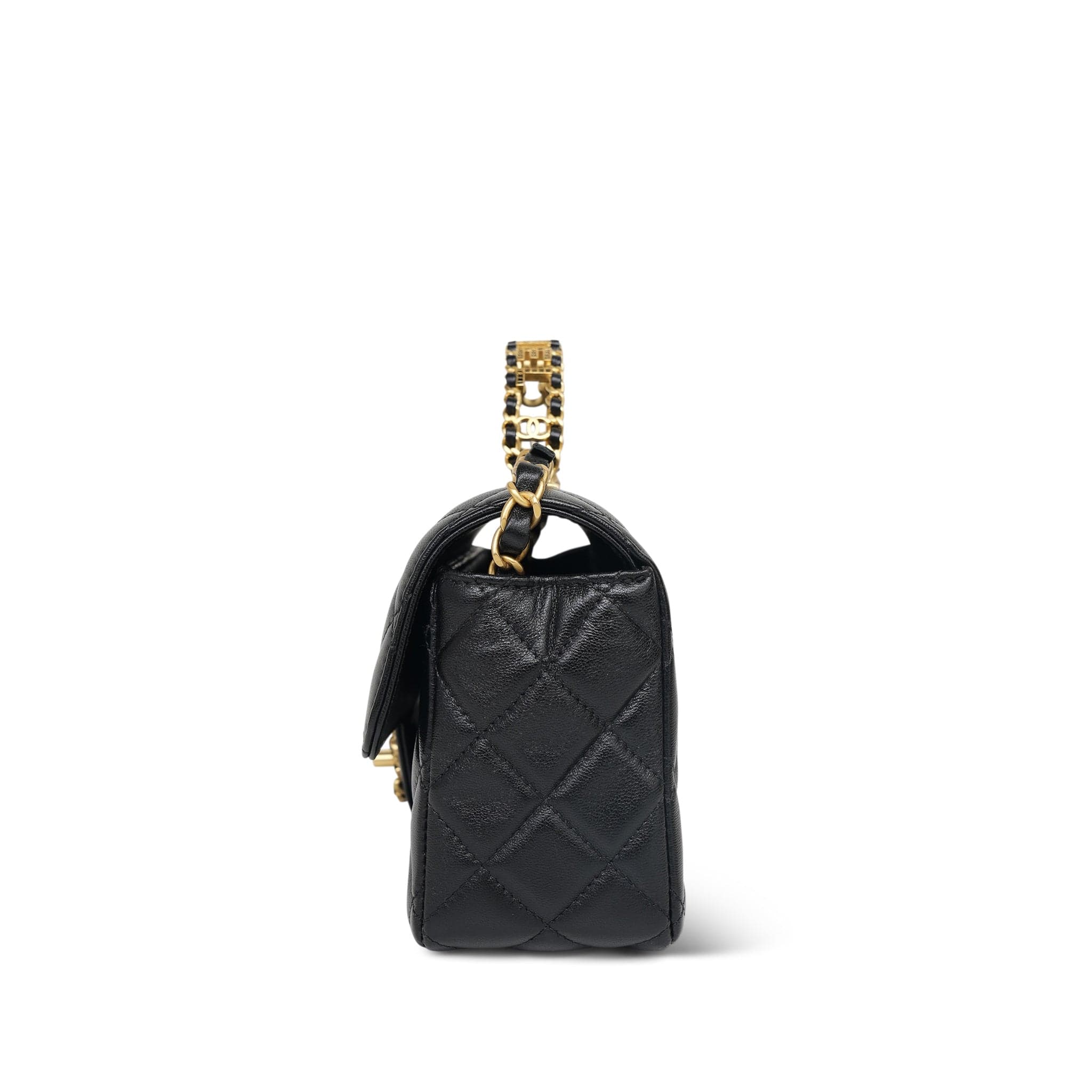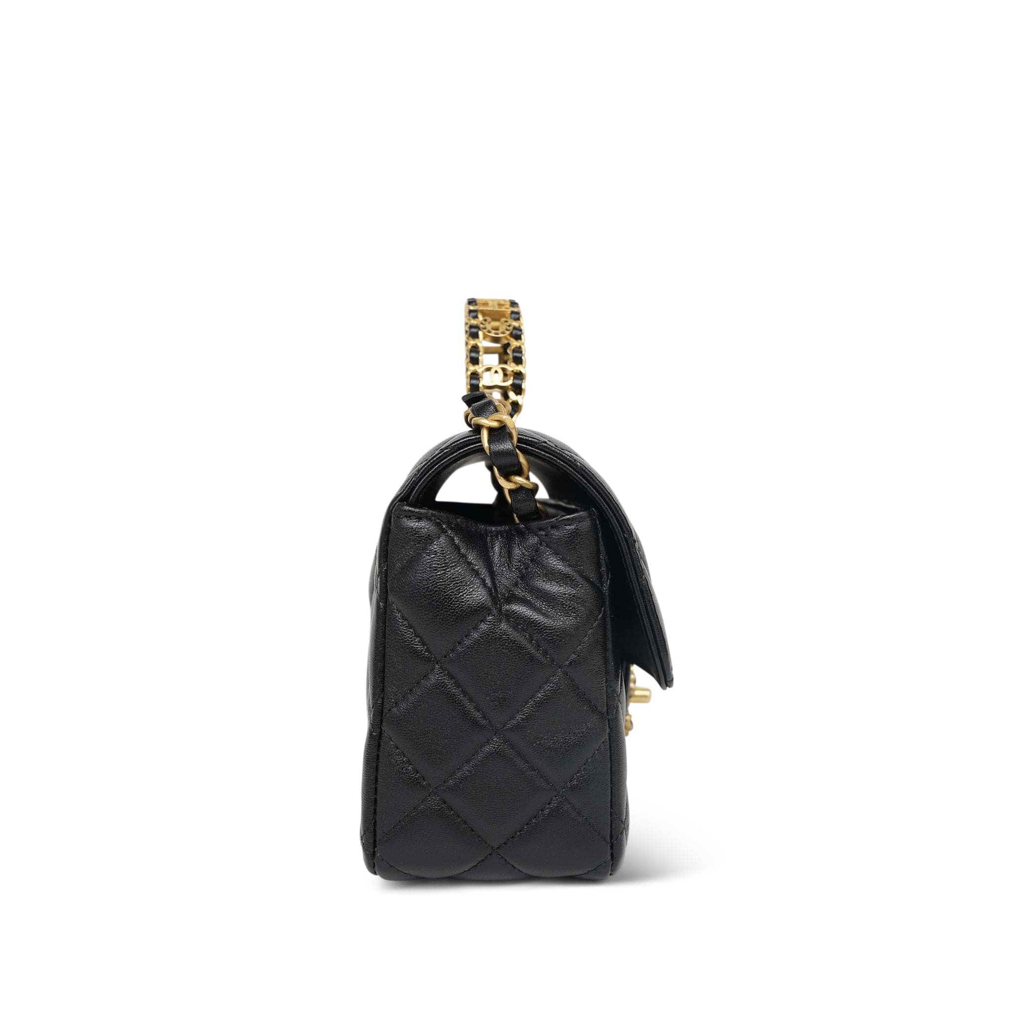 Black Lambskin Quilted Mini Rectangular Gem Leather Entwined Top Handle AGHW
