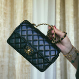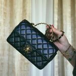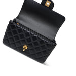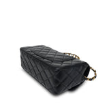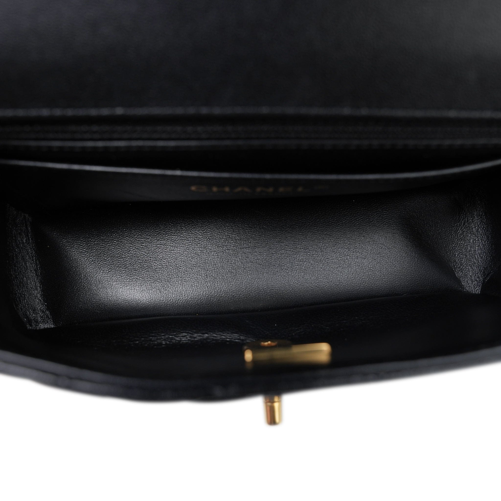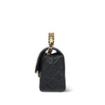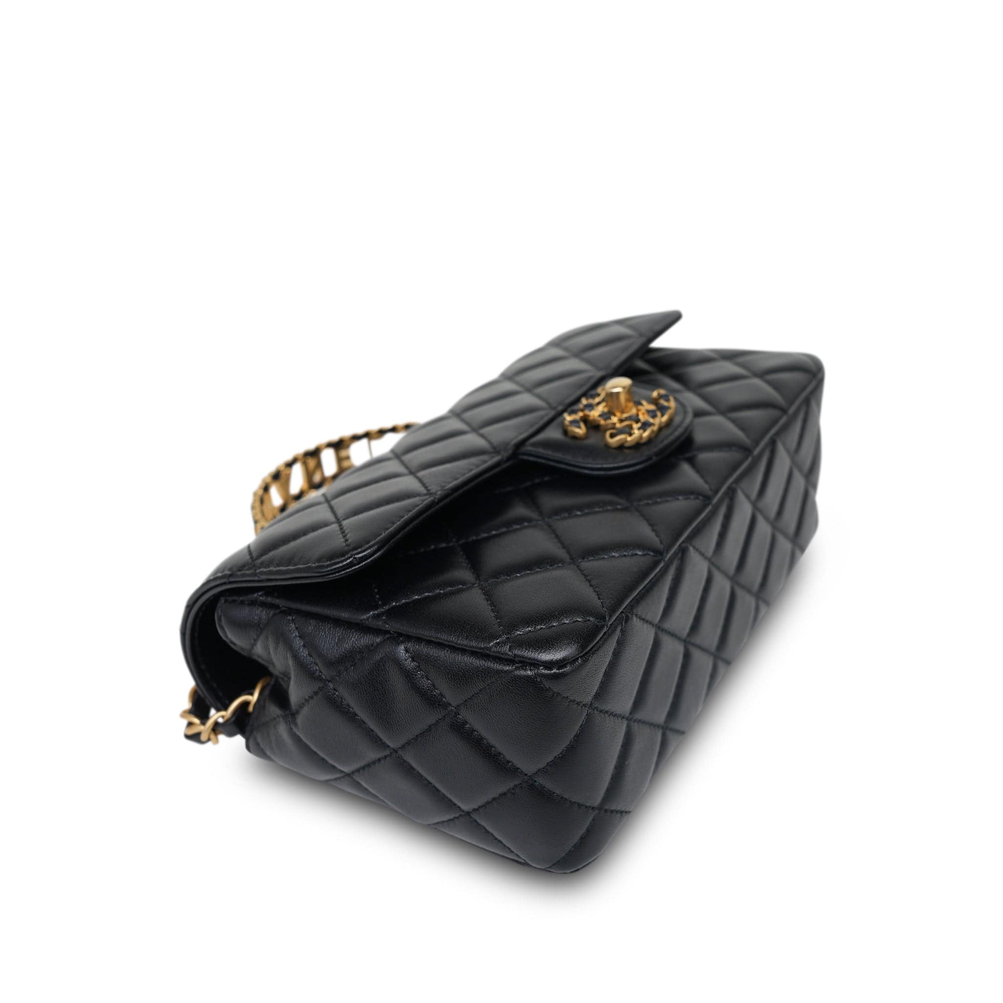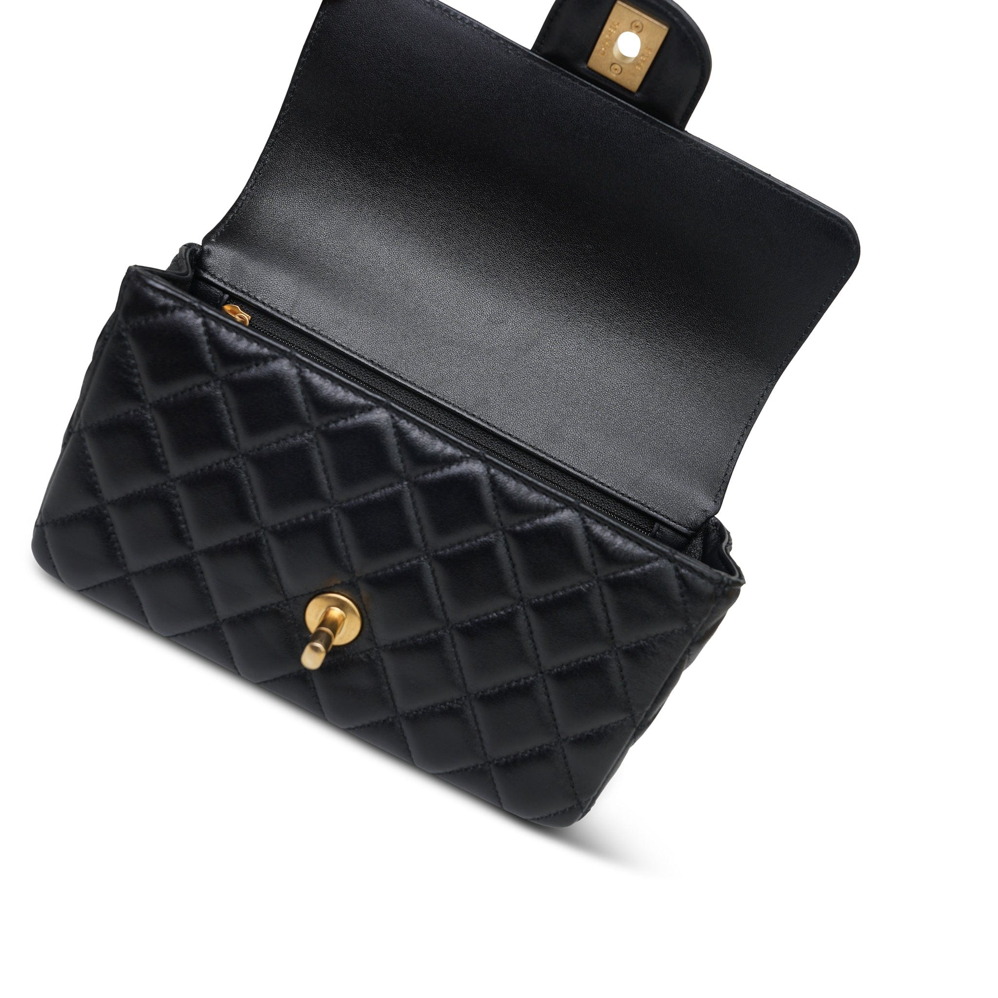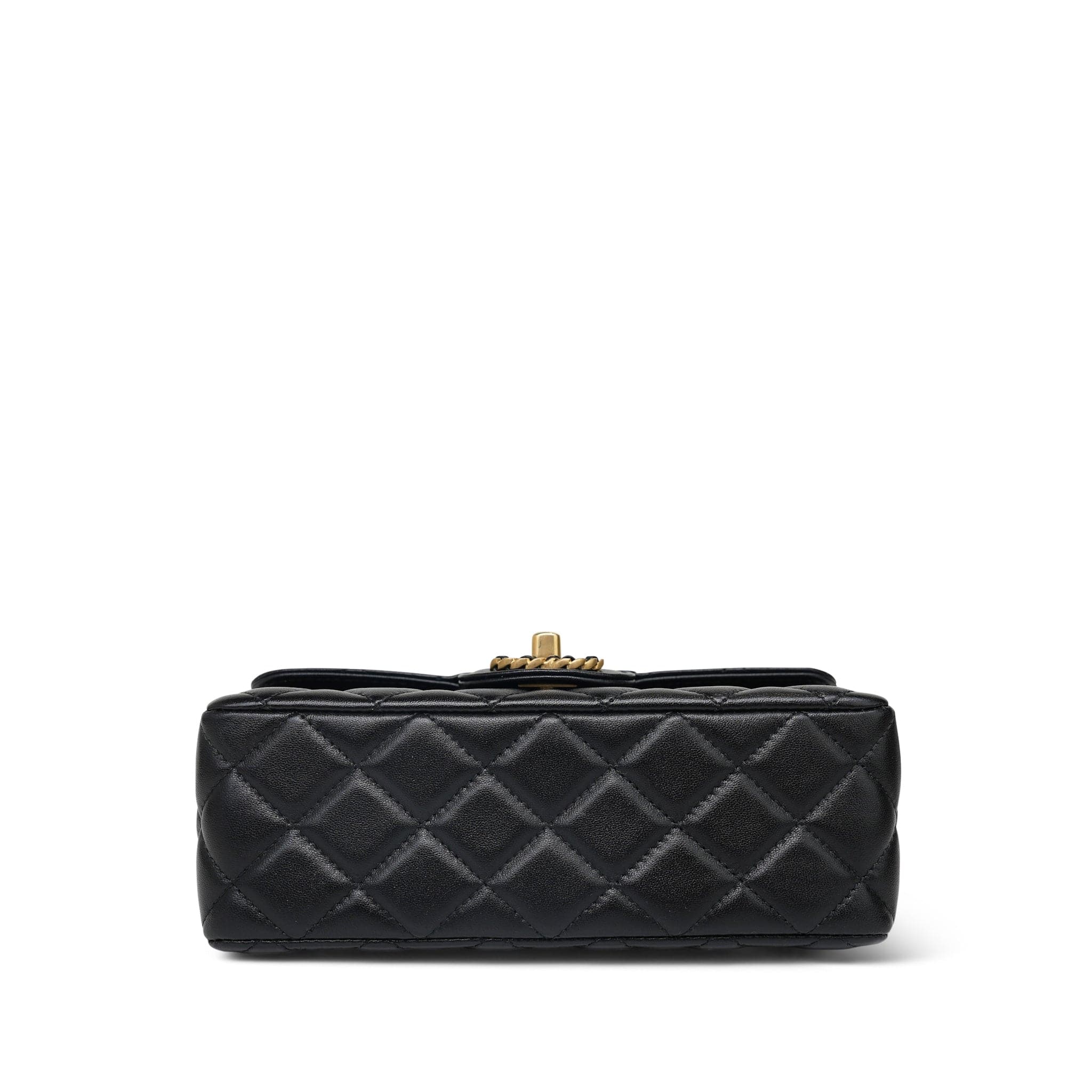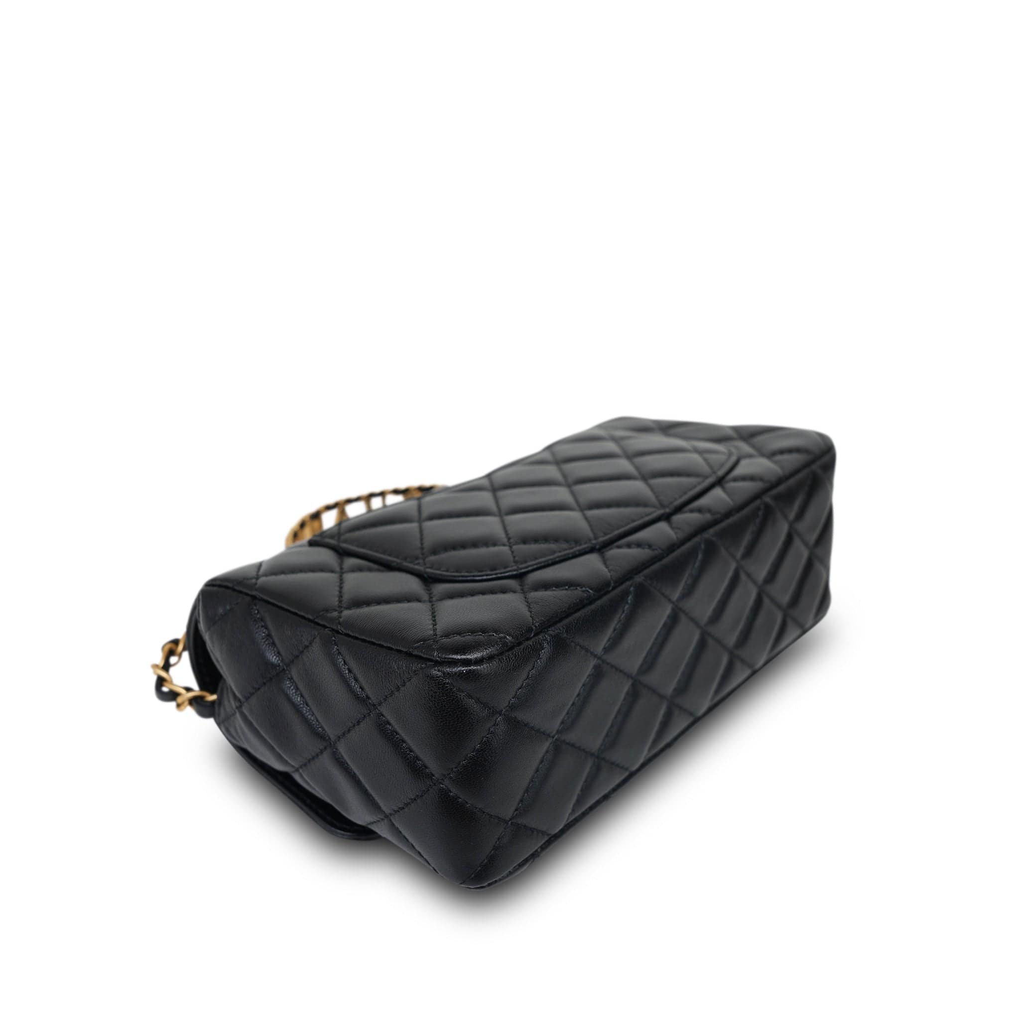 Black Lambskin Quilted Mini Rectangular Gem Leather Entwined Top Handle AGHW