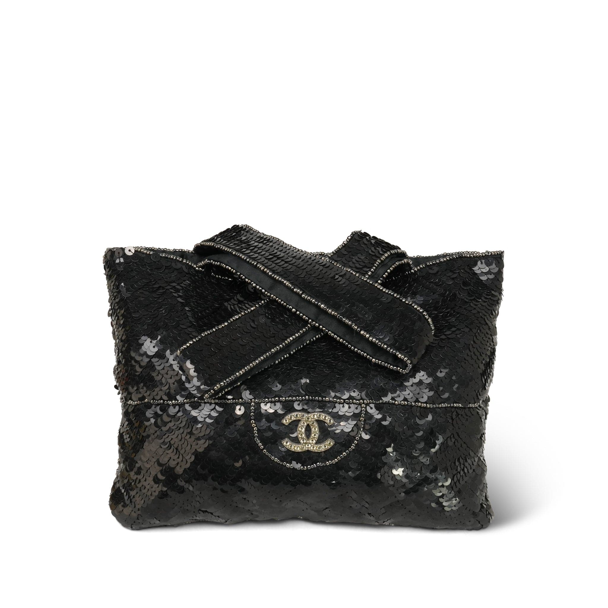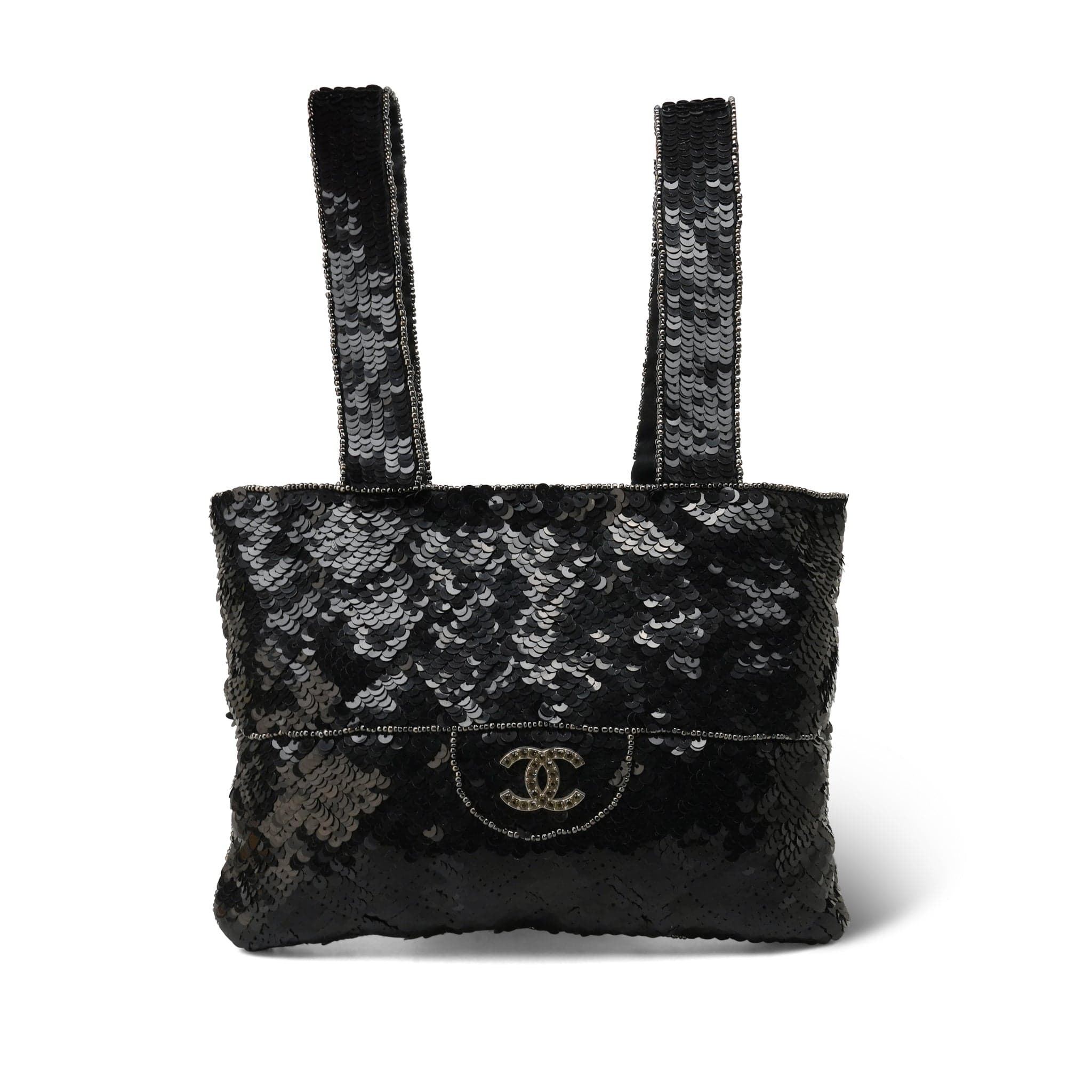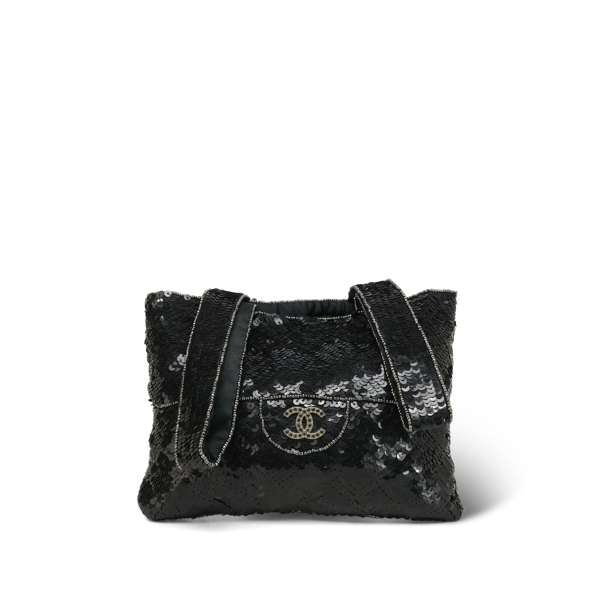 Black Sequin CC Trompe L'oeil Tote Mini SHW