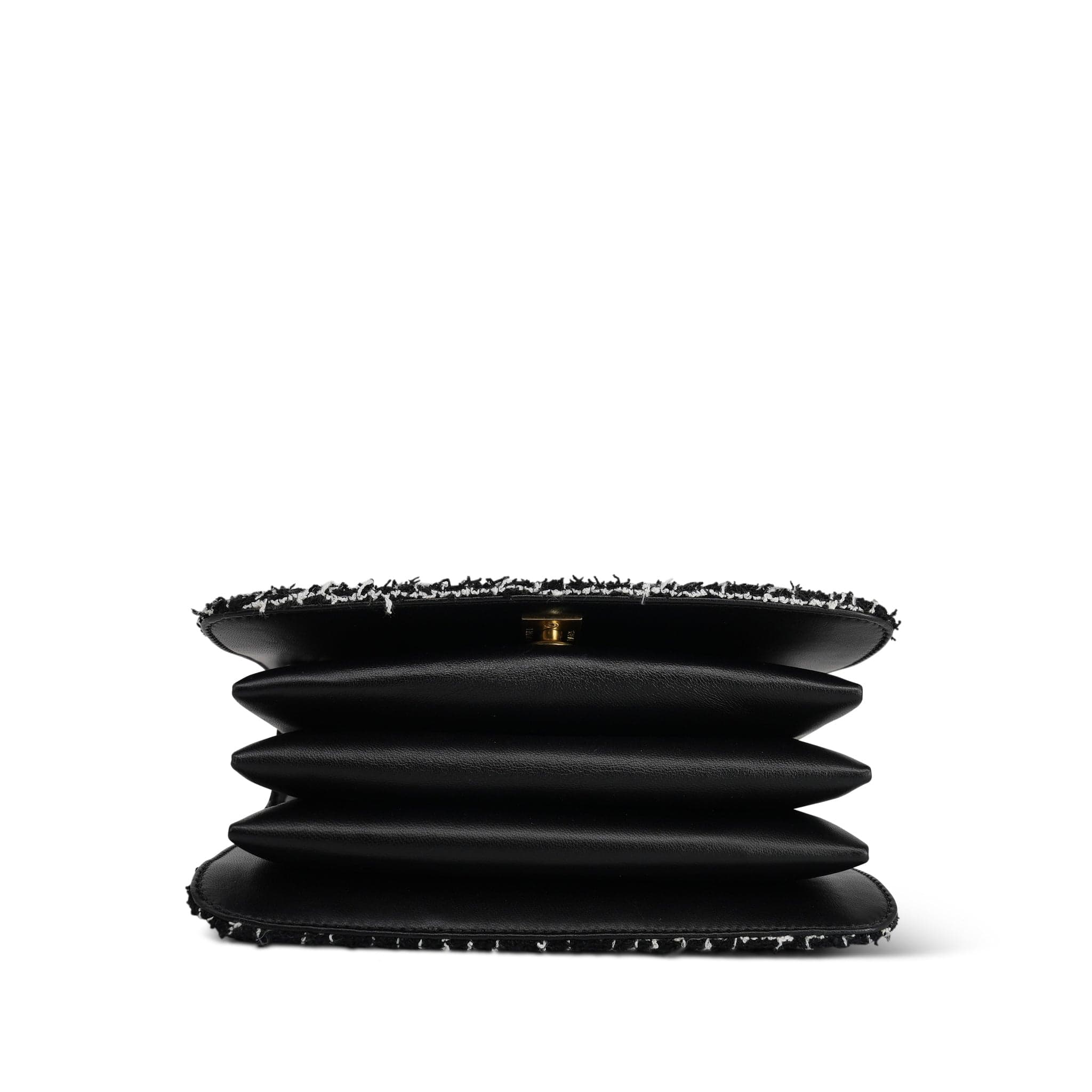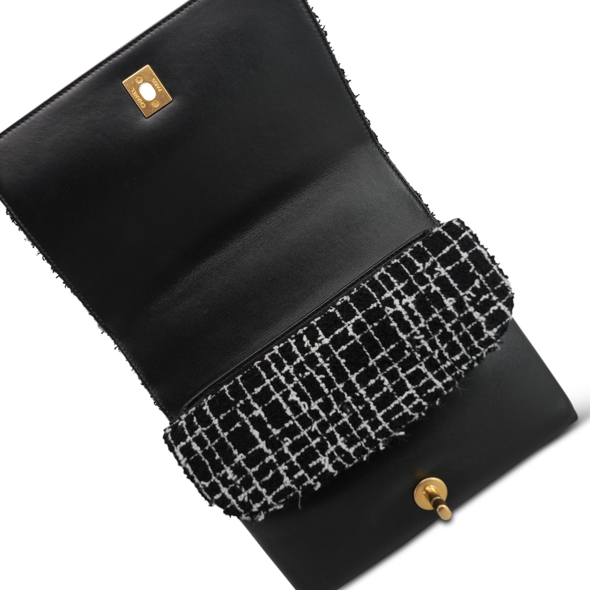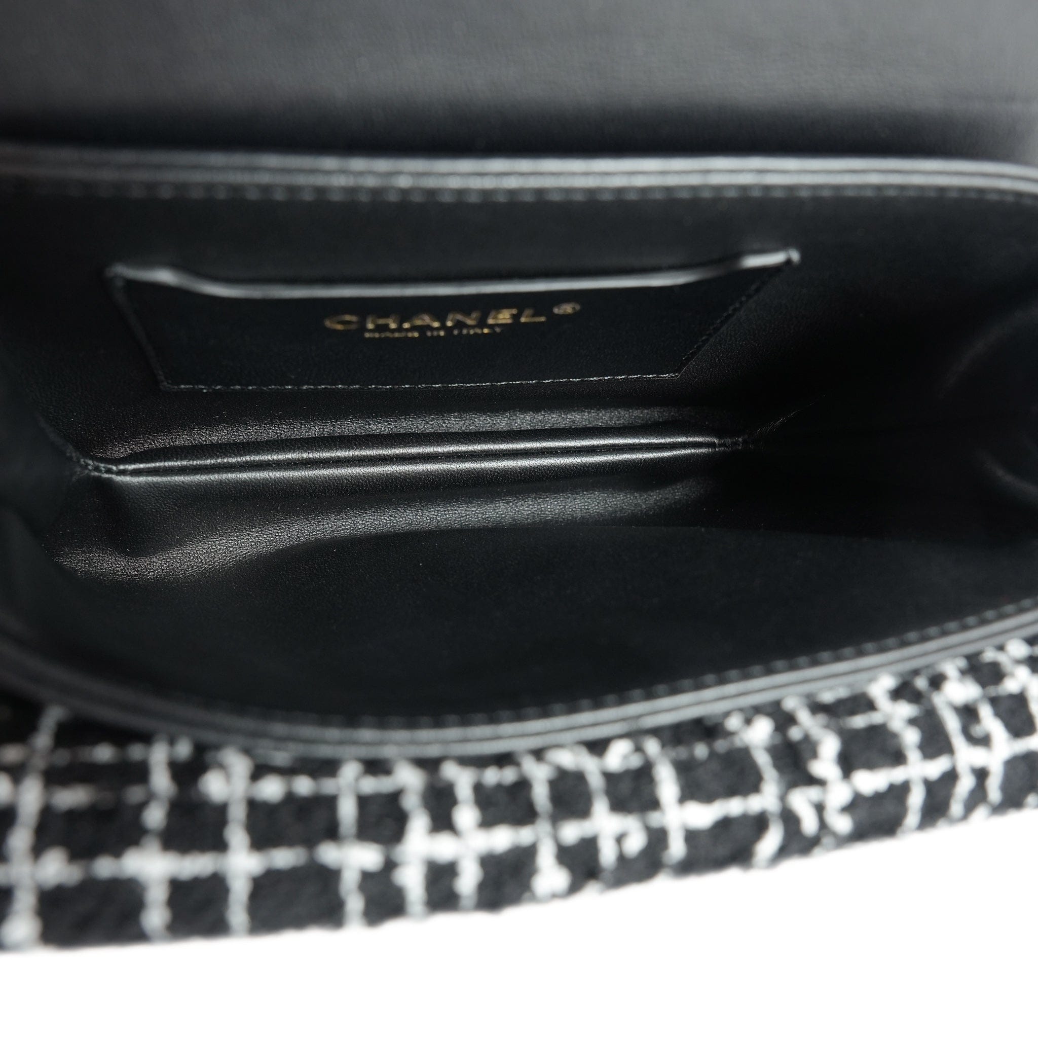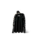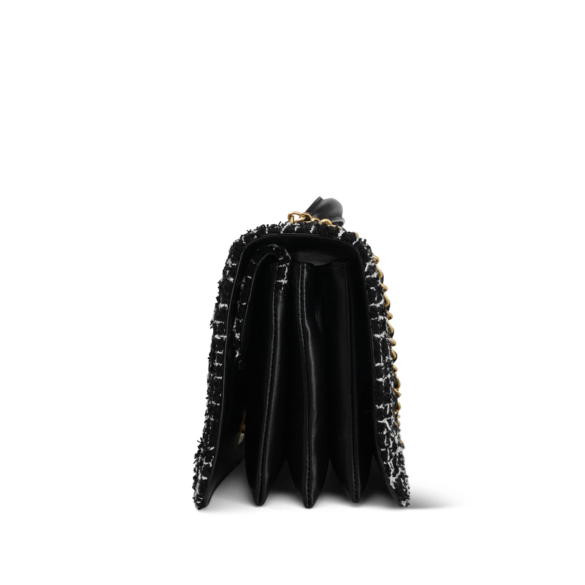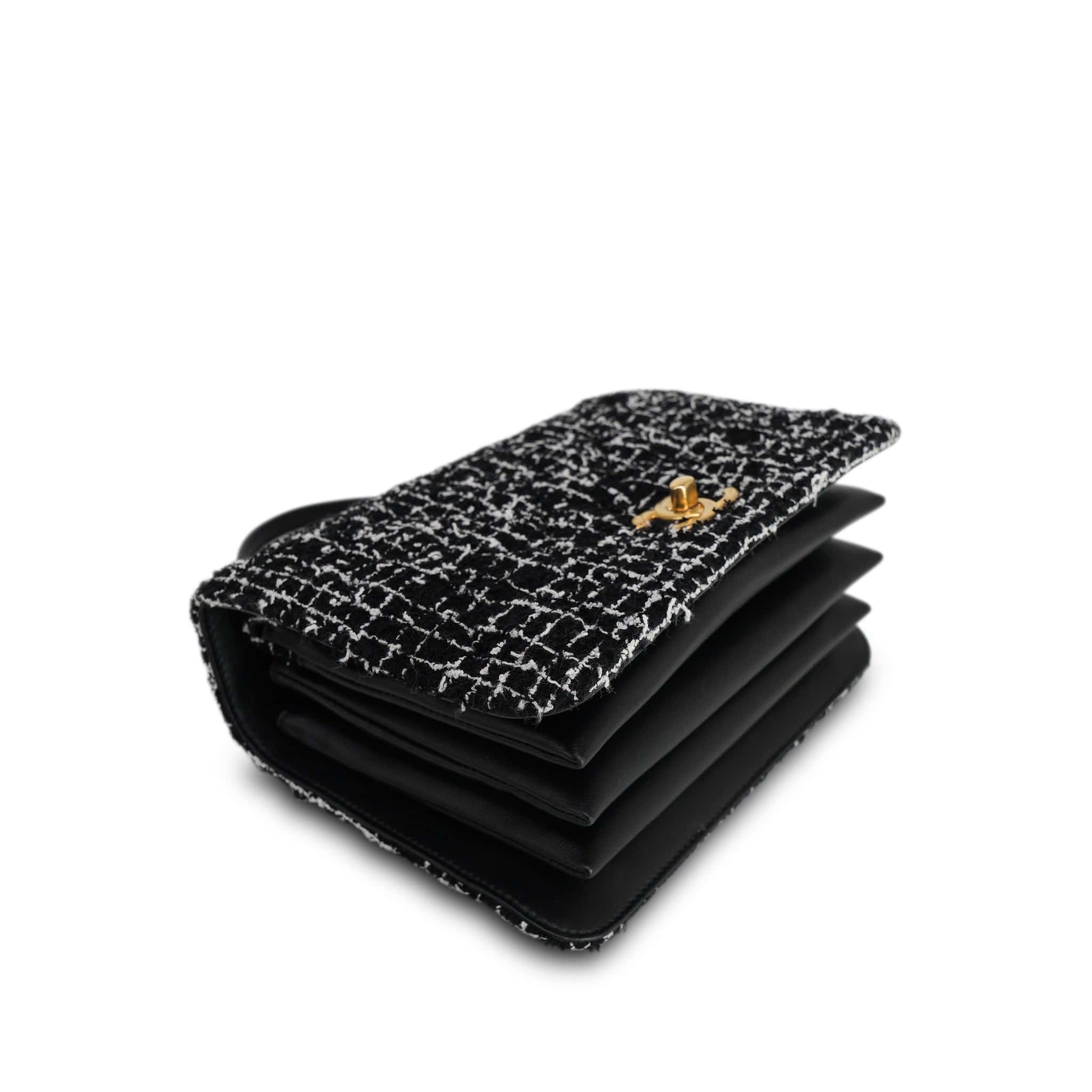 Black White Tweed Quilted Top Handle Full Flap Aged Gold Hardware