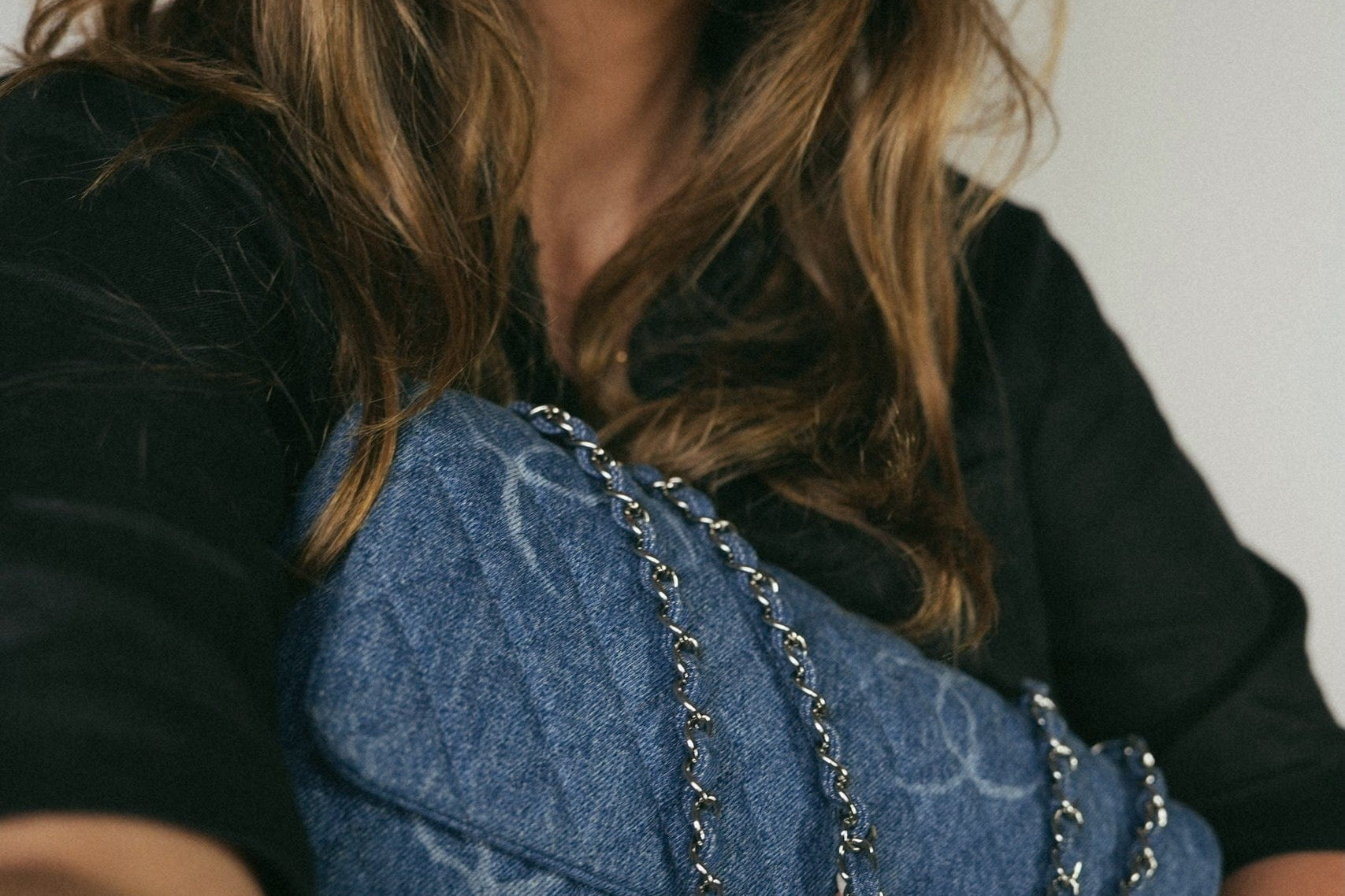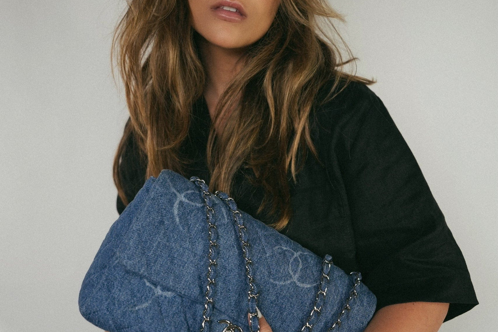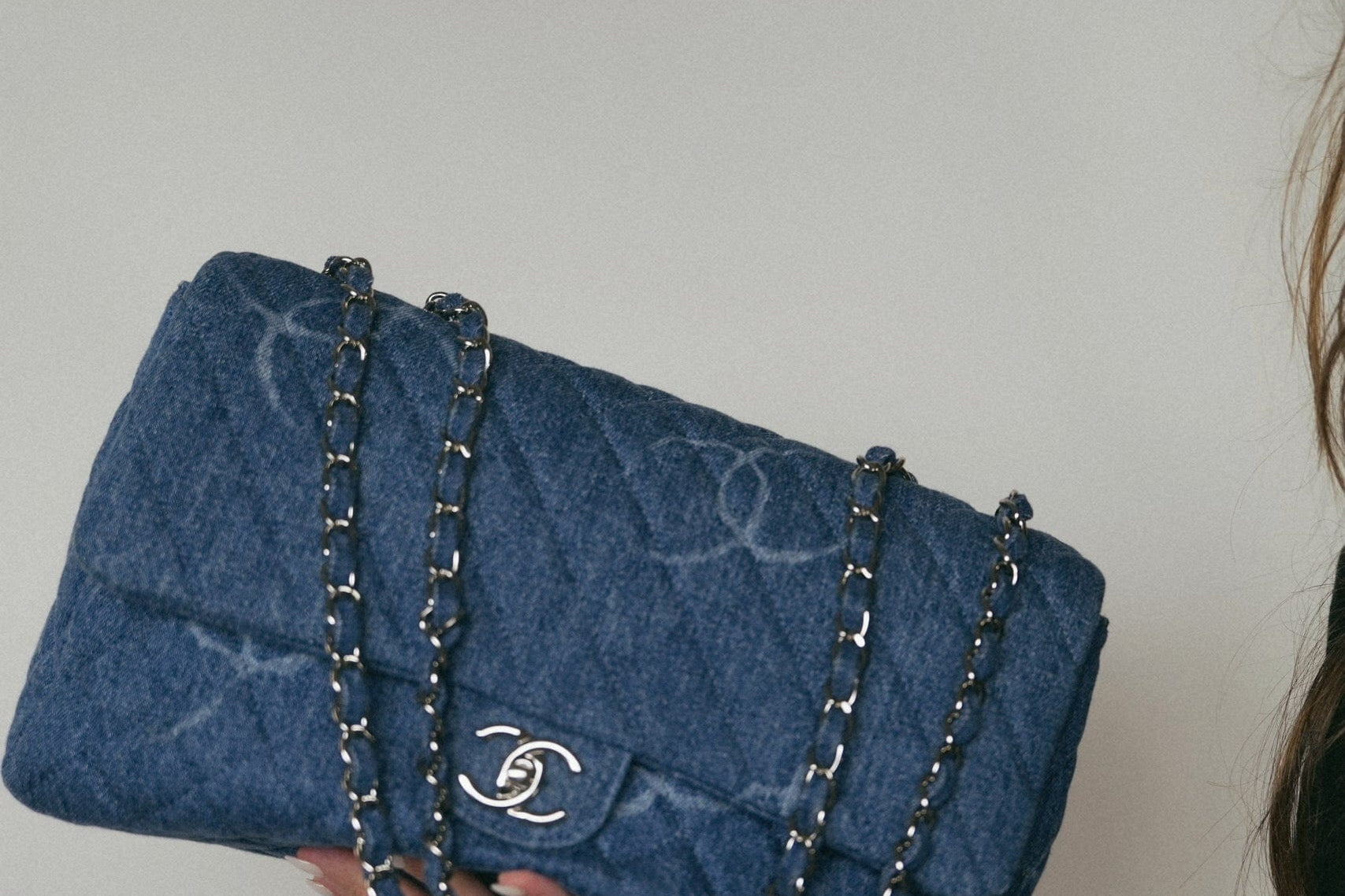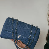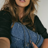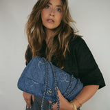 20B Blue Denim Quilted CC Single Flap Jumbo SHW