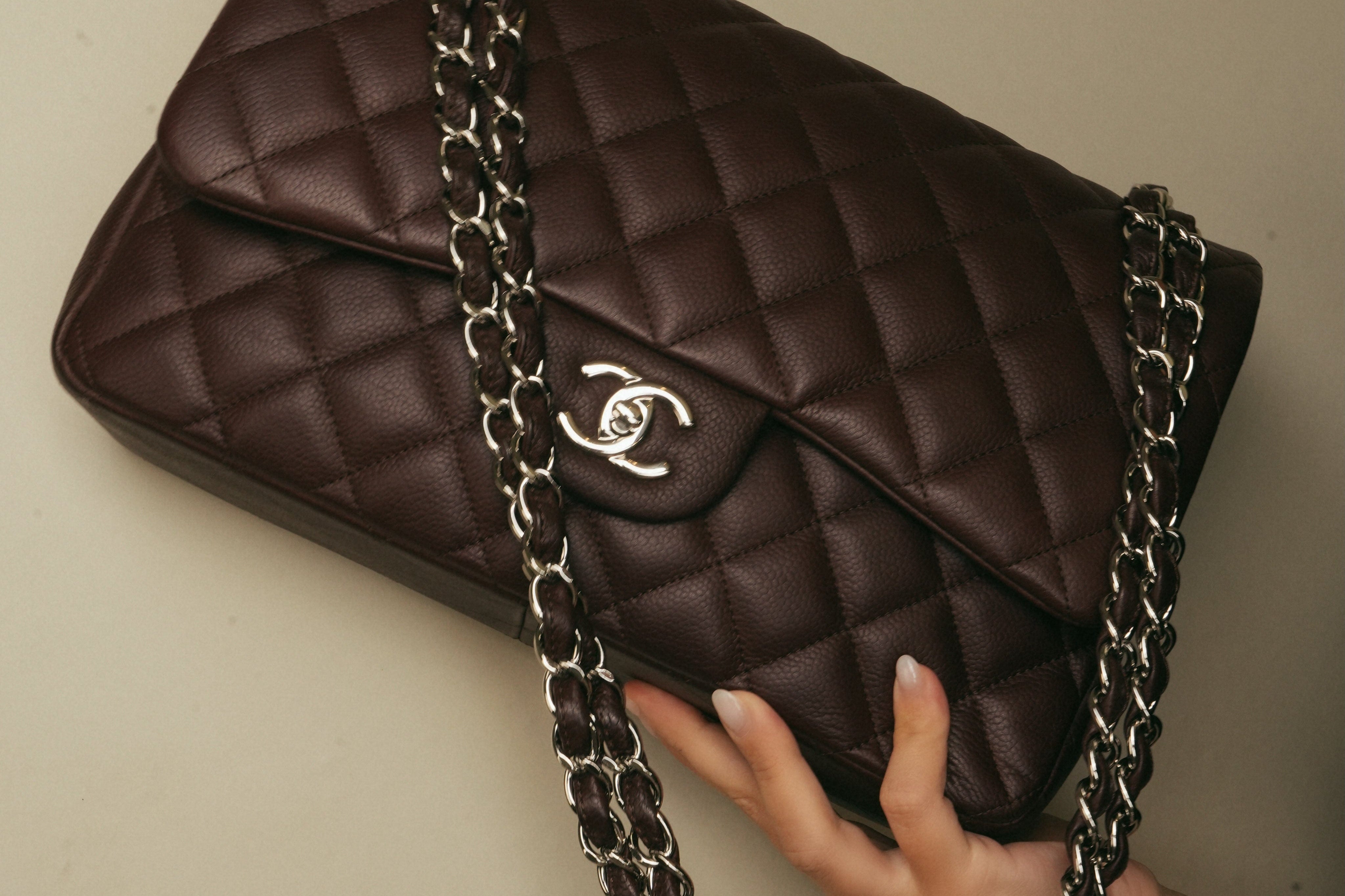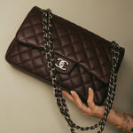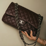 Burgundy Caviar Quilted Classic Flap Jumbo SHW