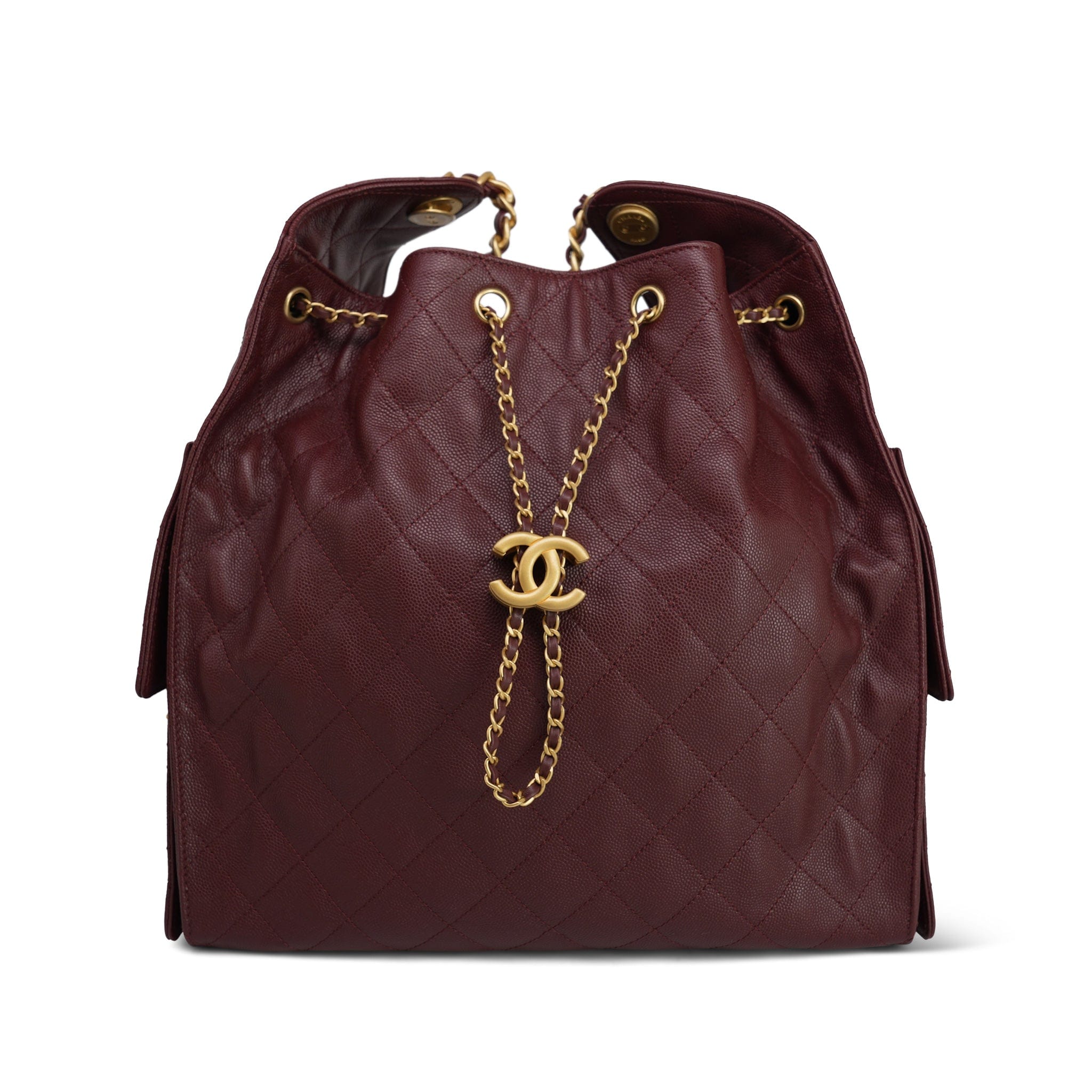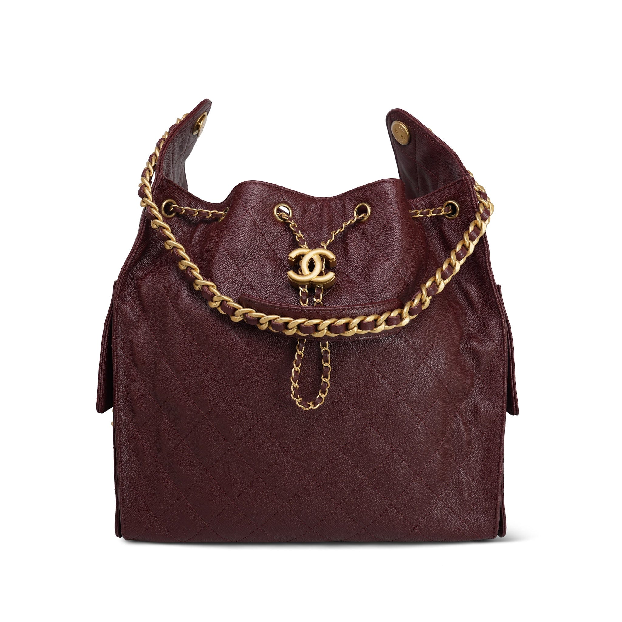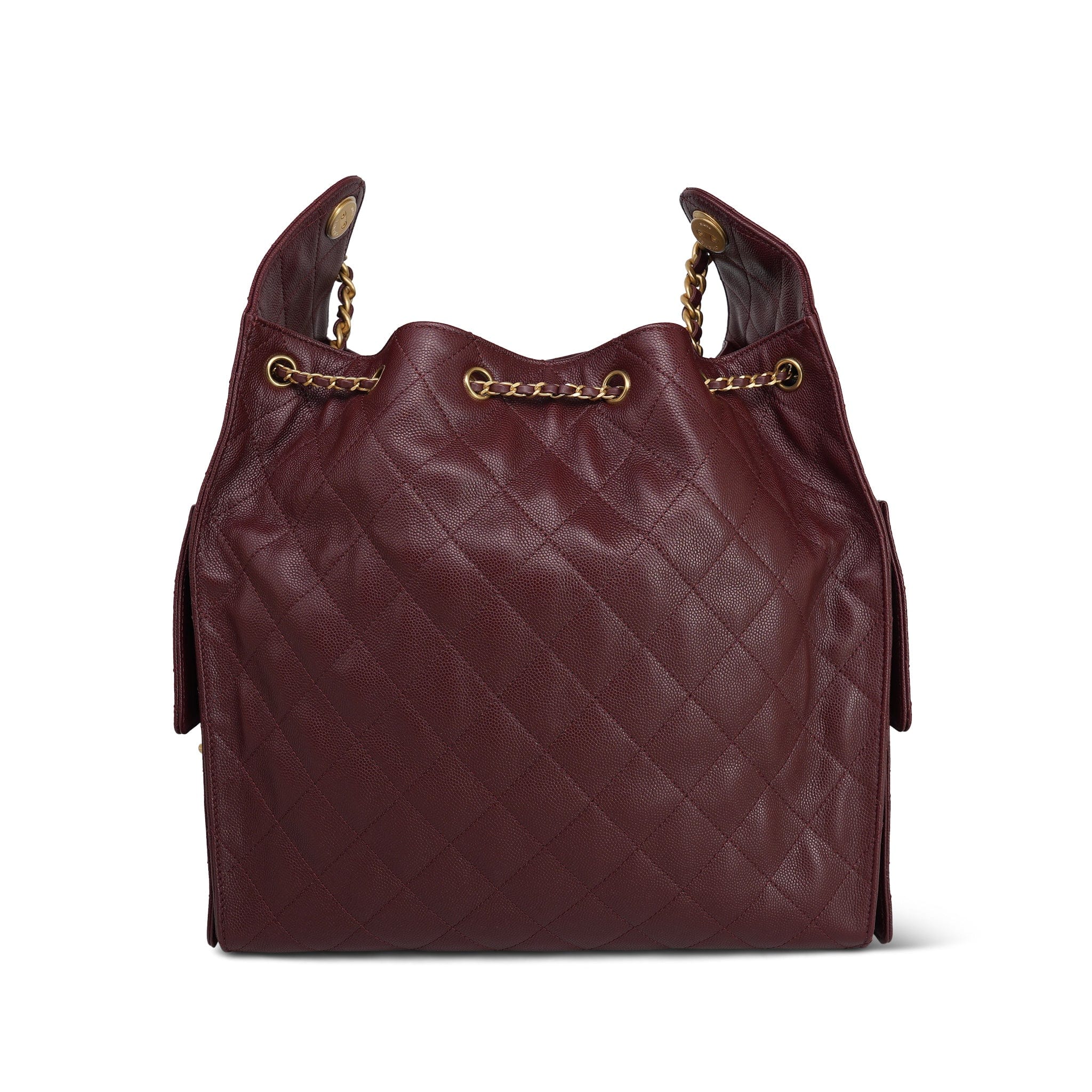 Burgundy Caviar Quilted Medium 25 Hobo Bag Aged Gold Hardware