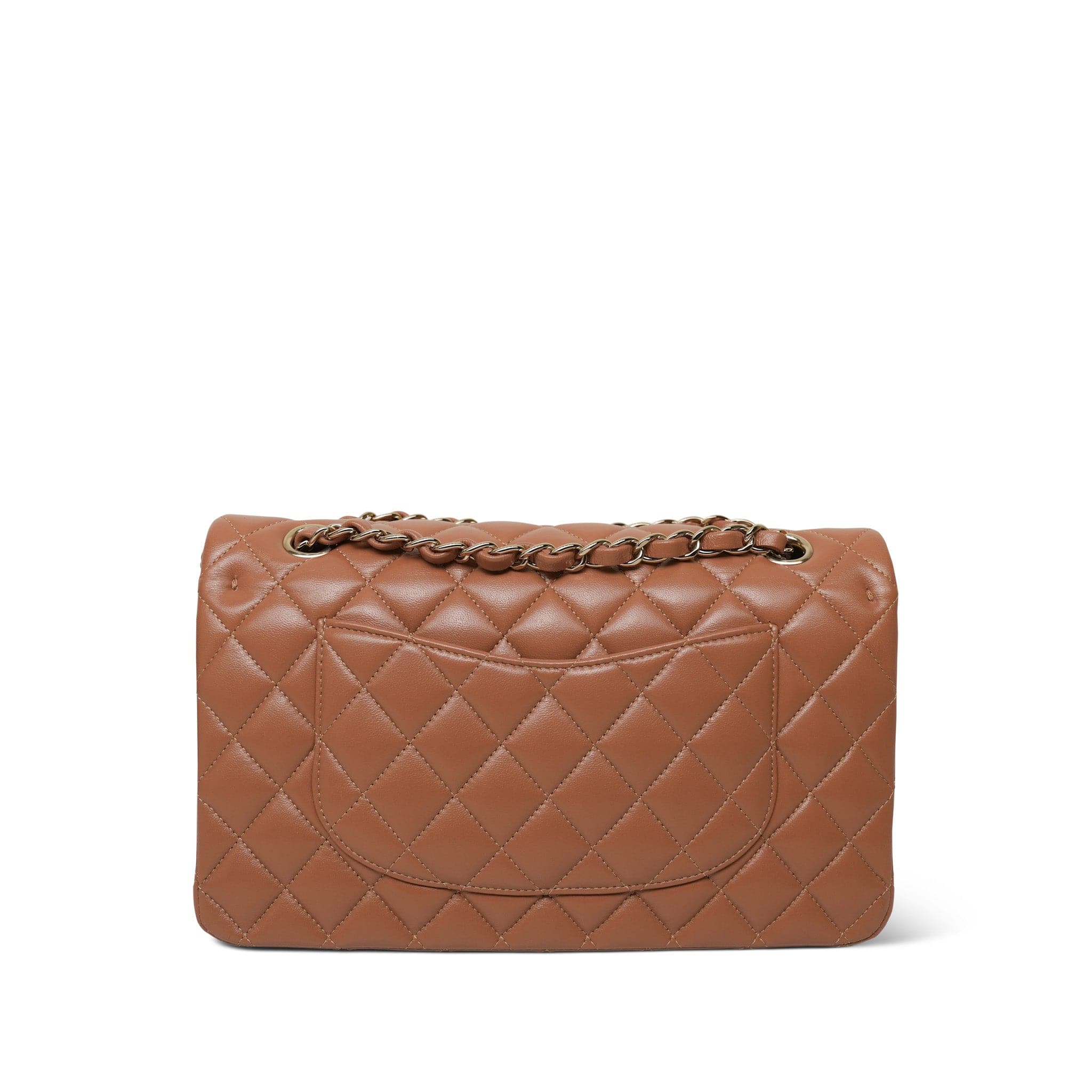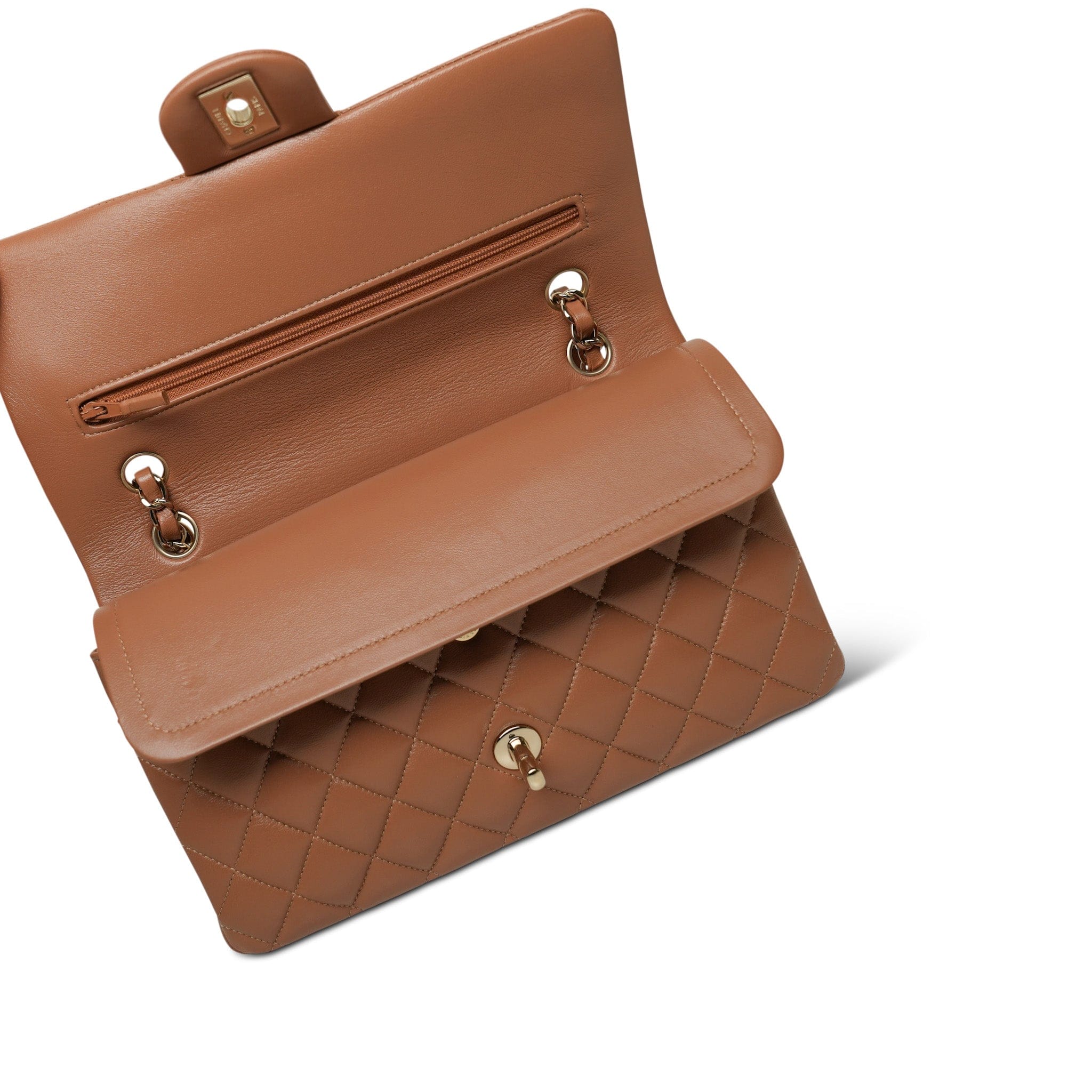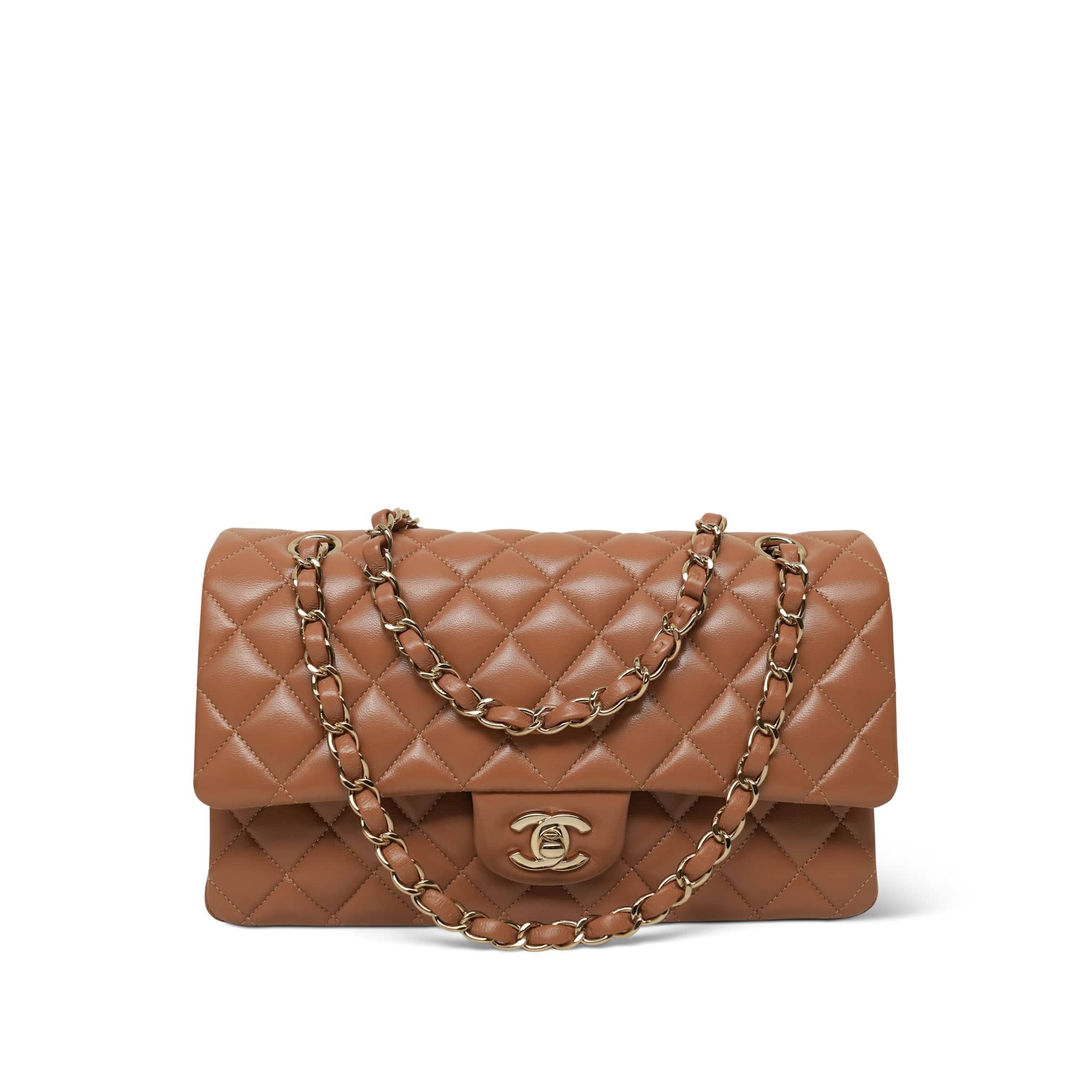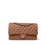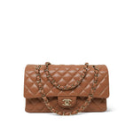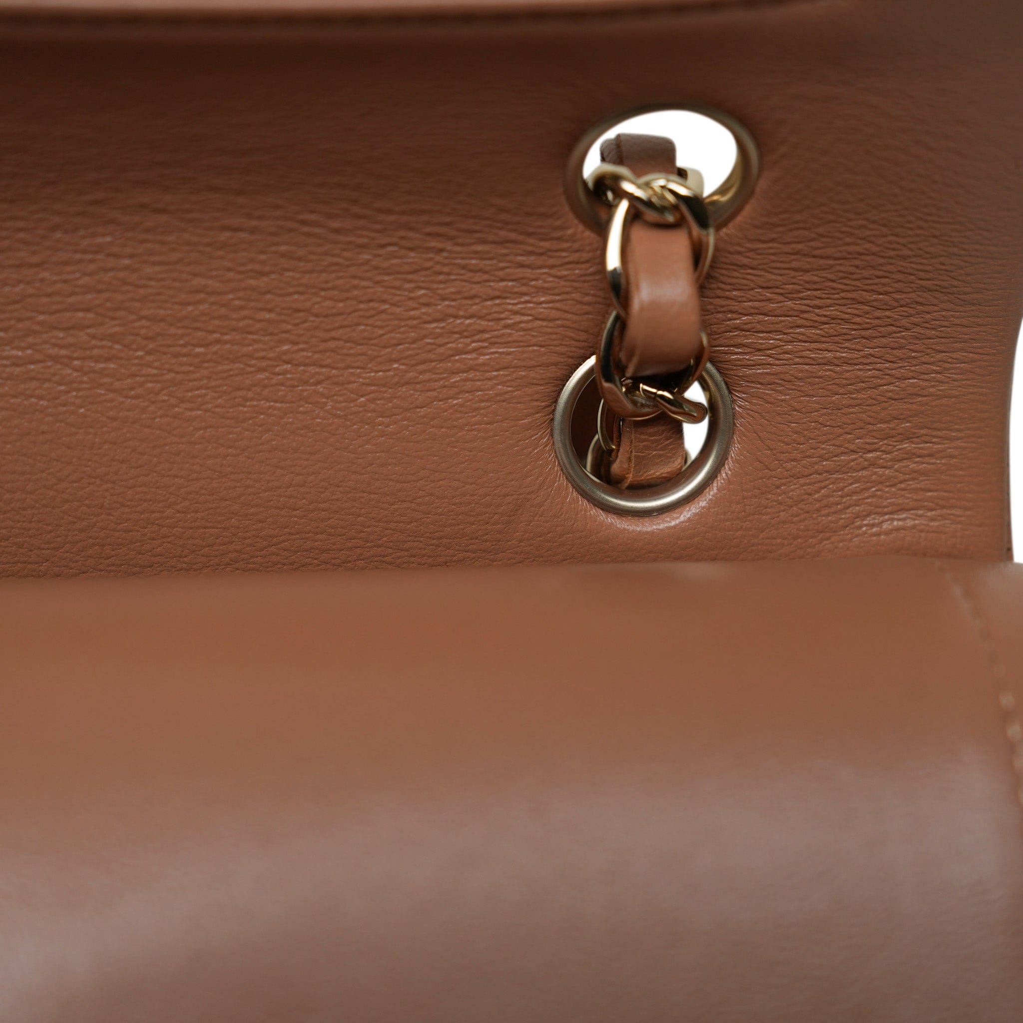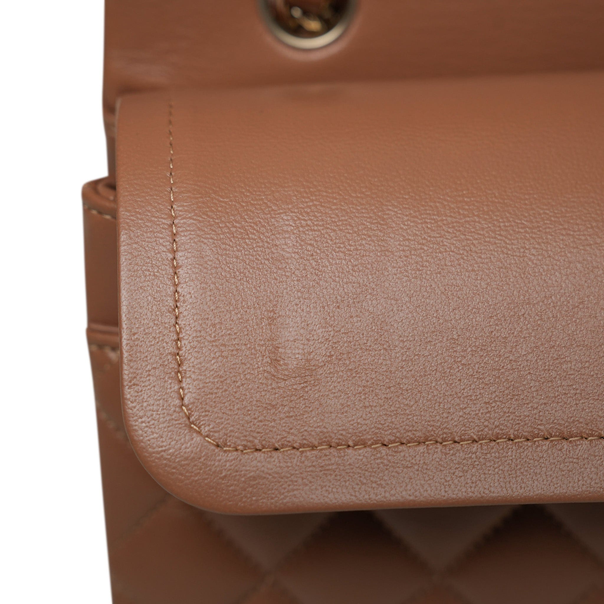 Caramel Lambskin Quilted Medium Classic Flap LGHW