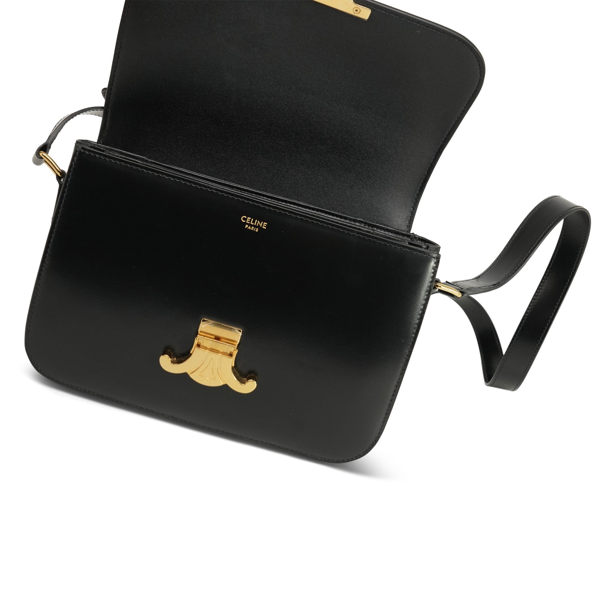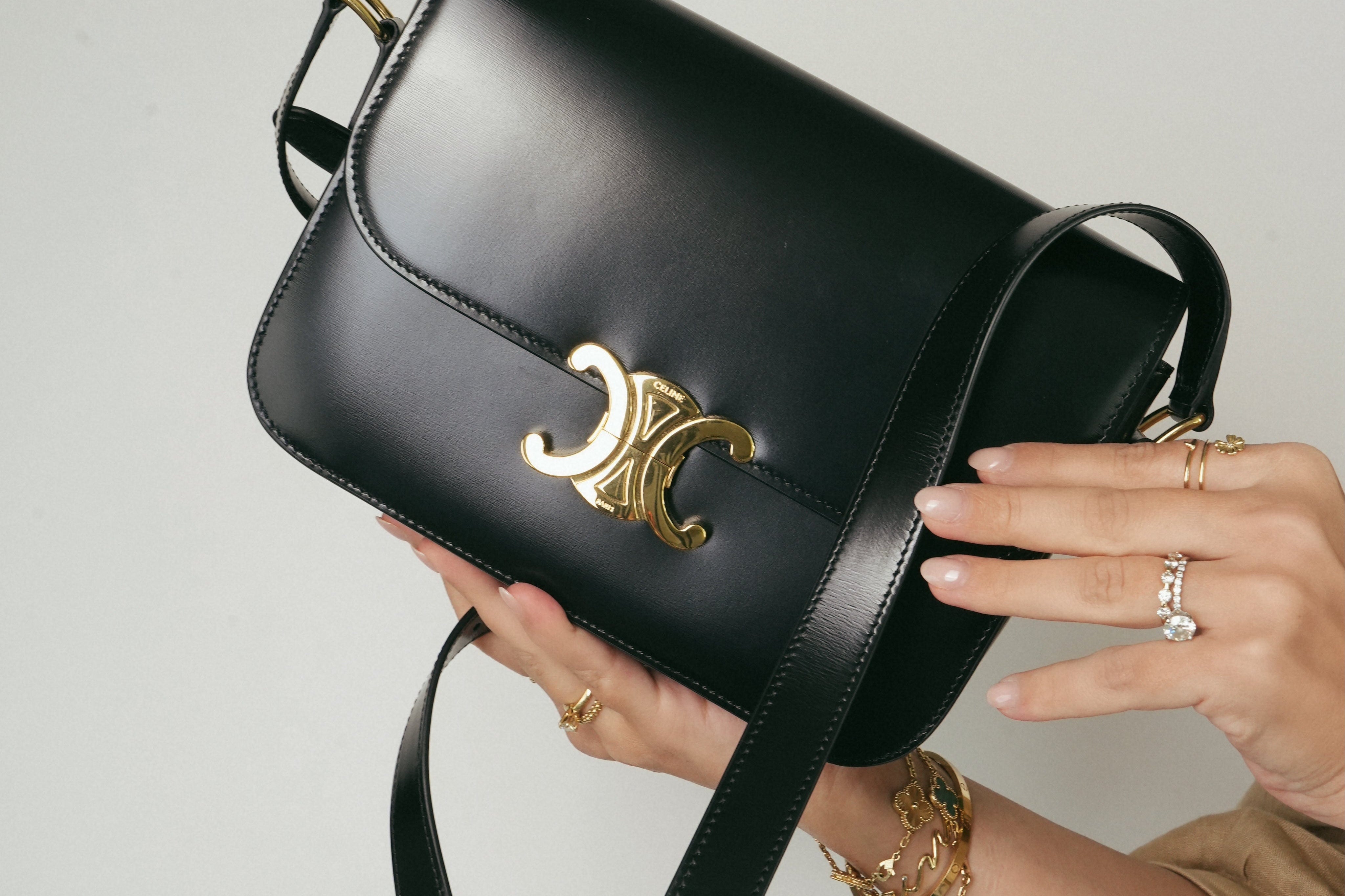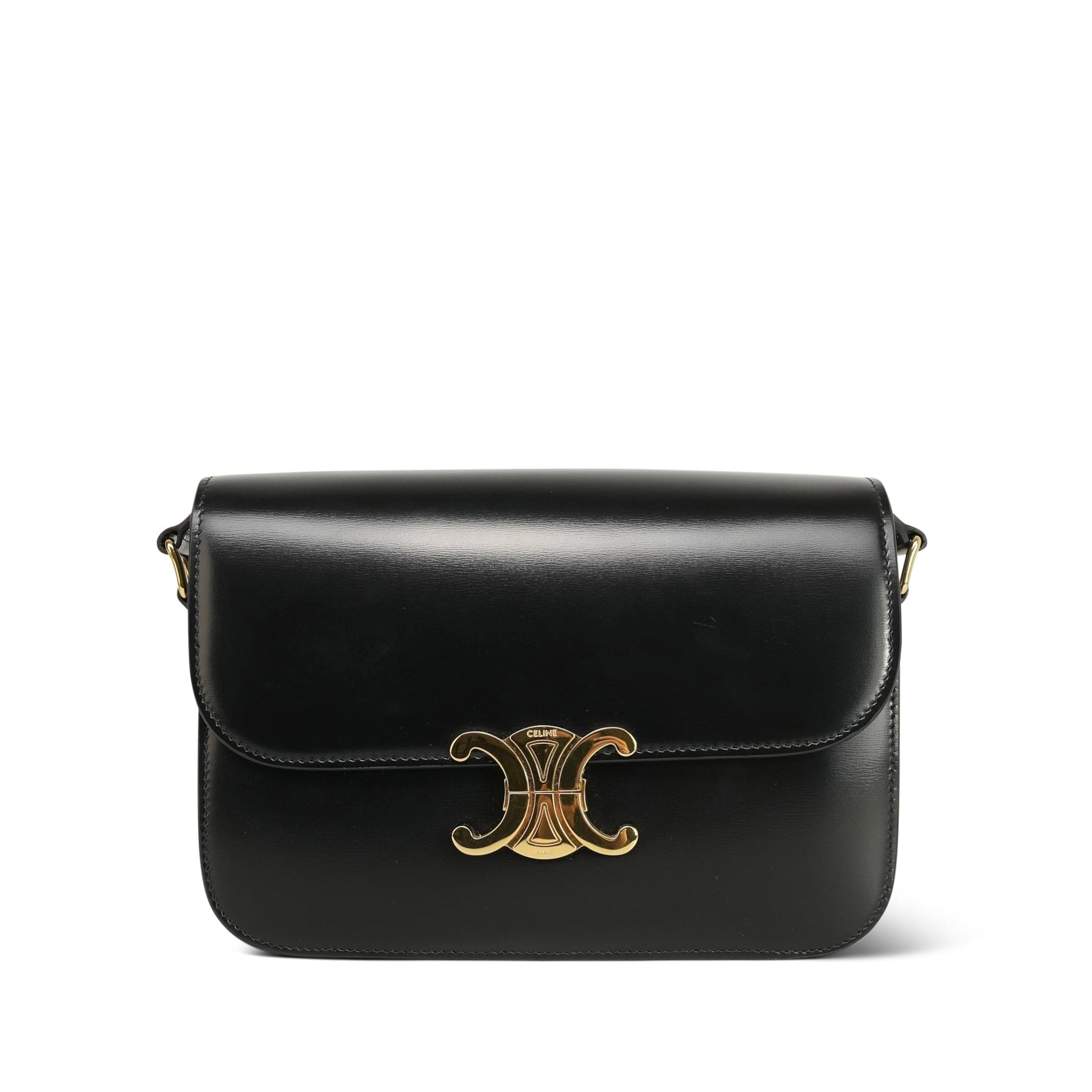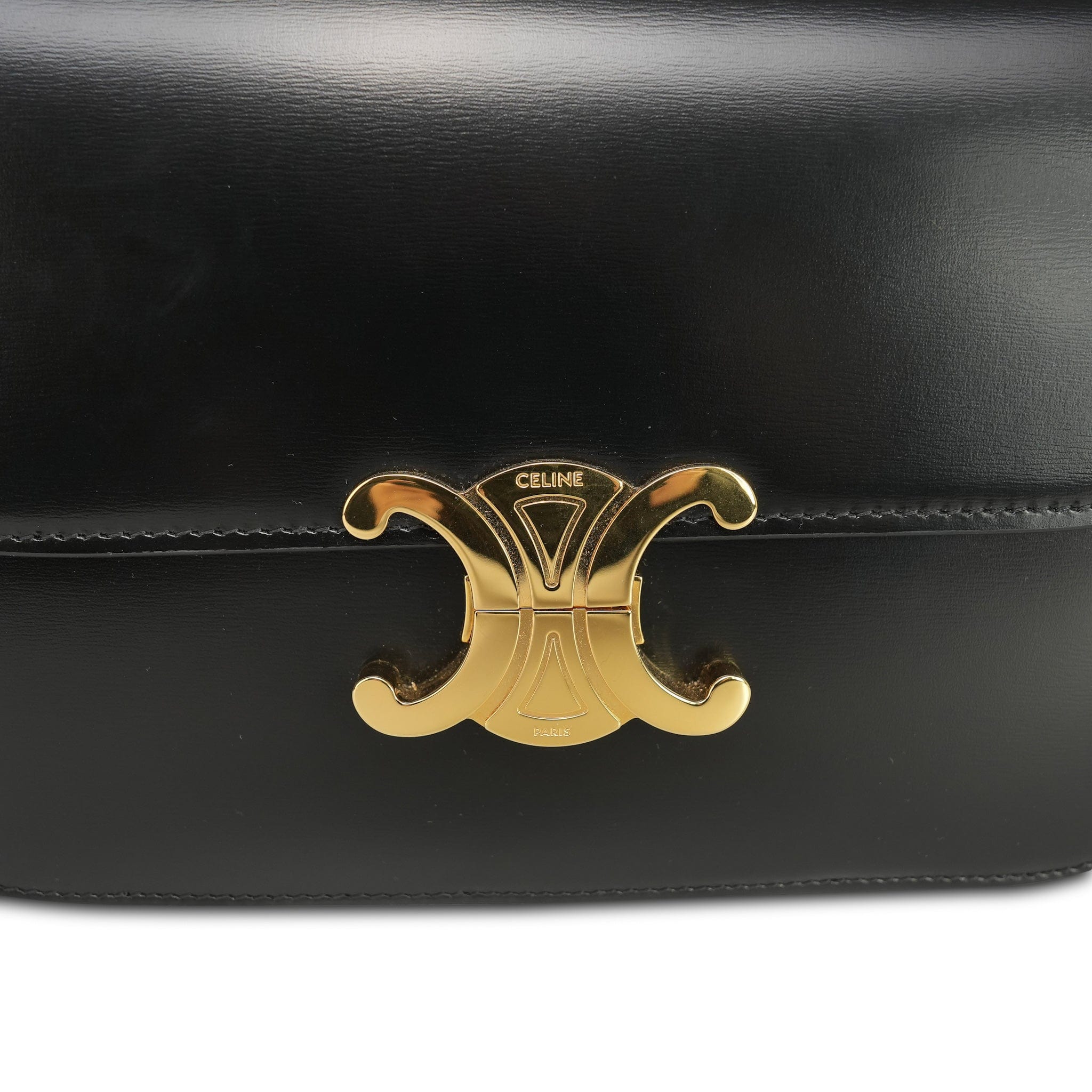 Celine Classique Triomph Black Shiny Calfskin Medium Bag