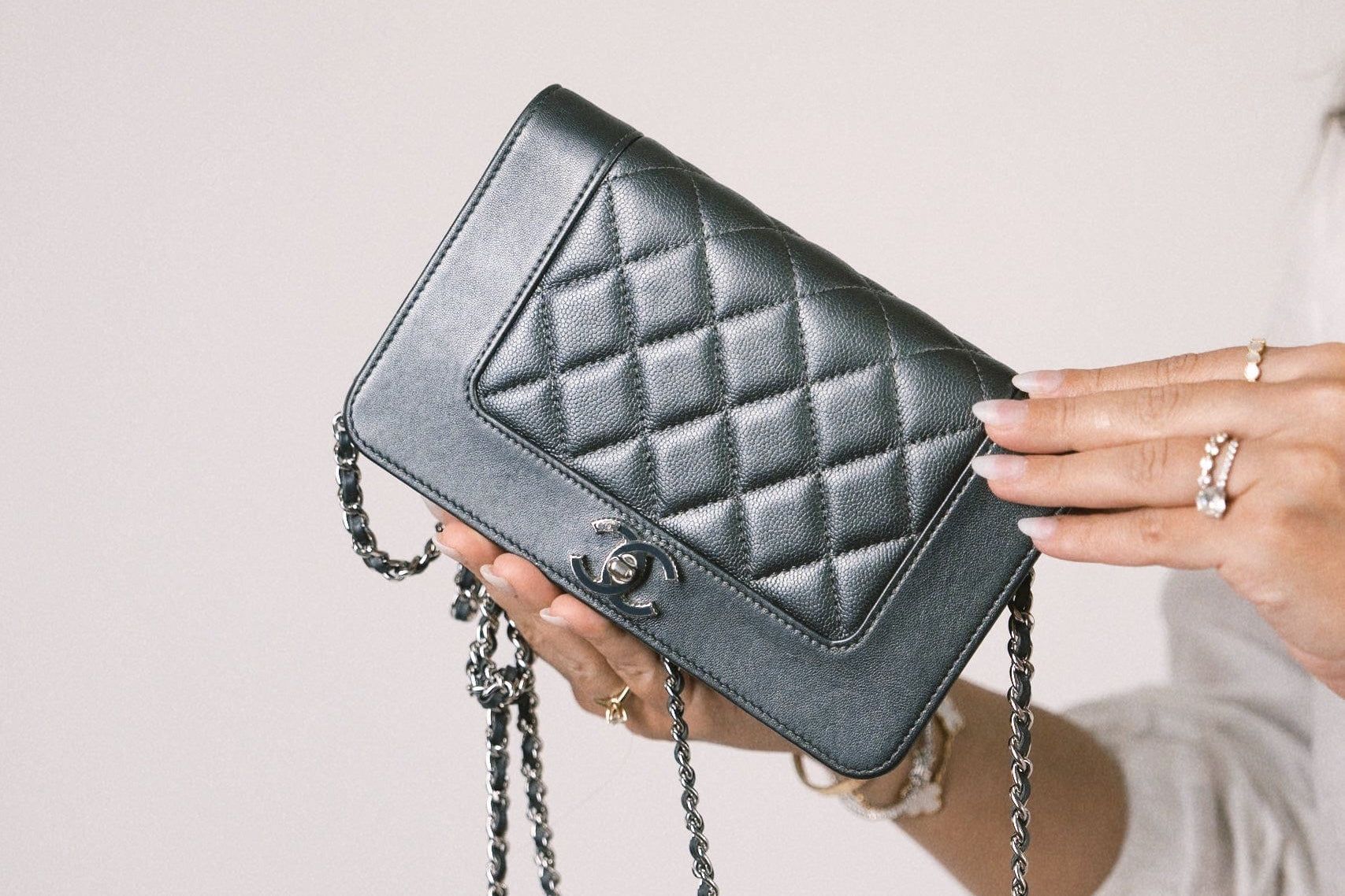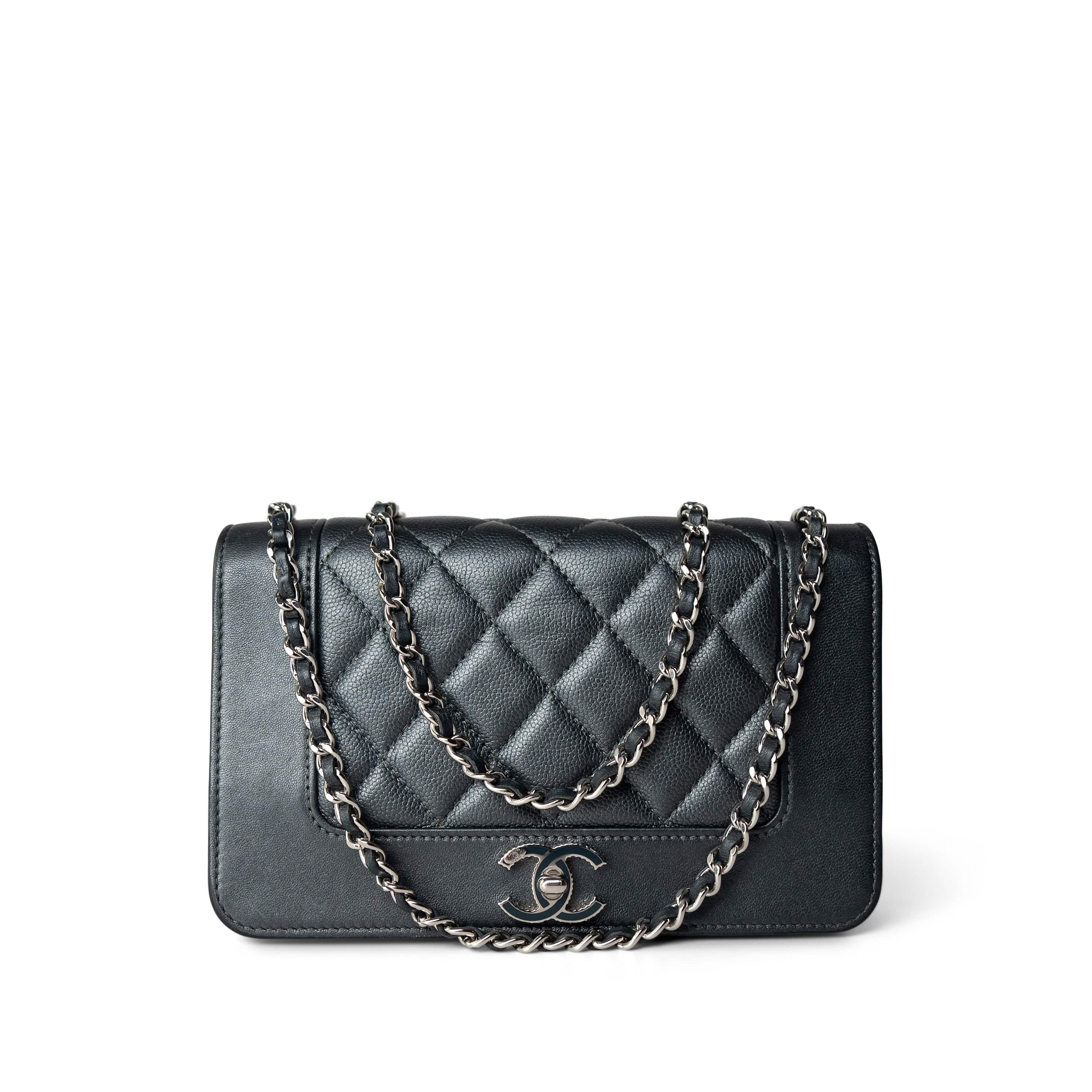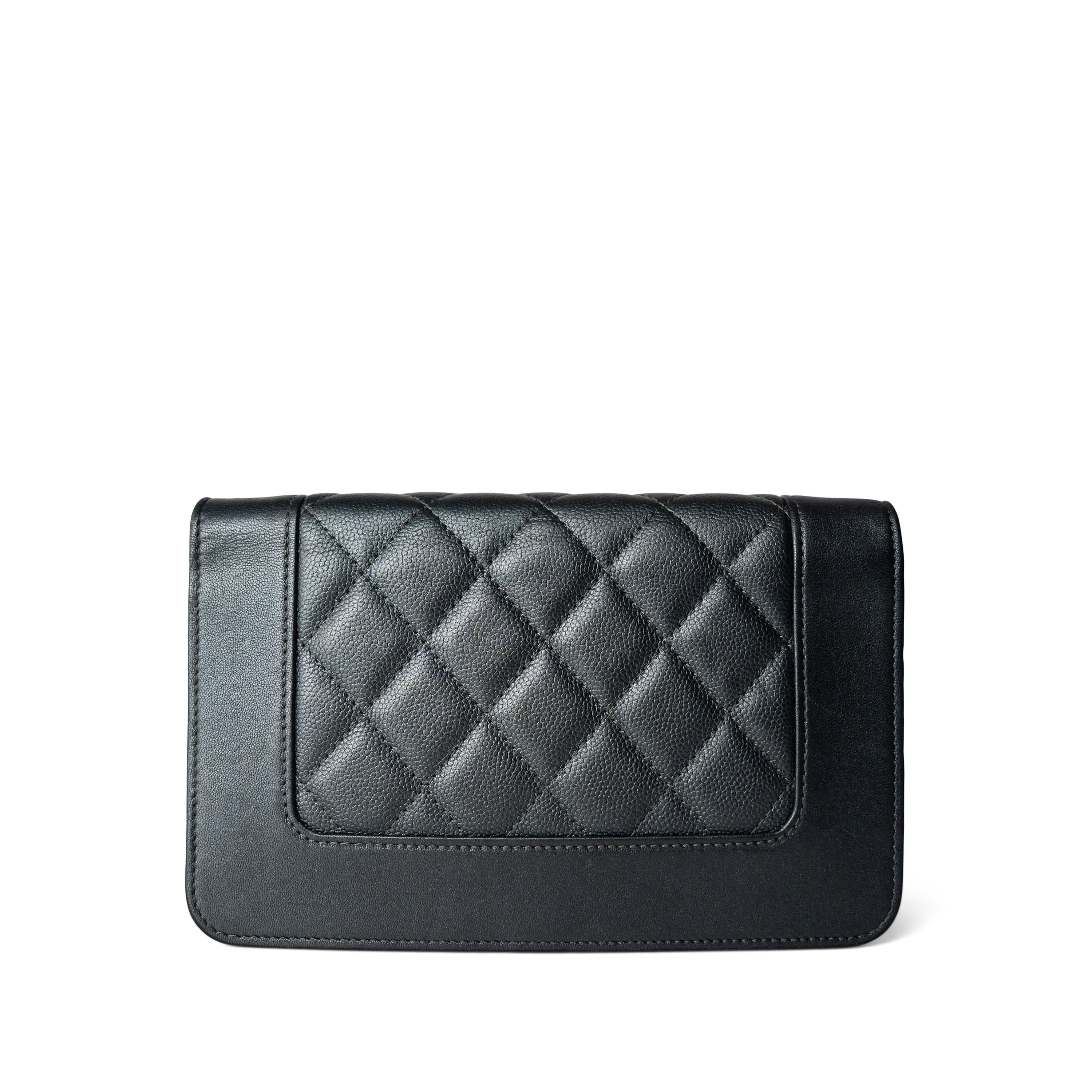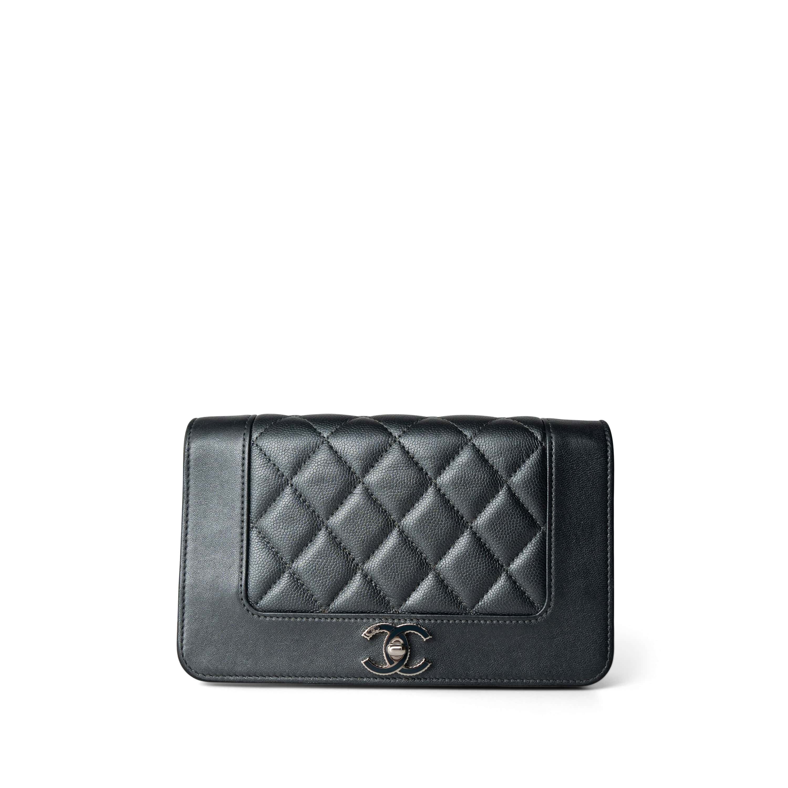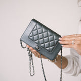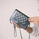 Charcoal 20A Mademoiselle Caviar Quilted Wallet on Chain (WOC)