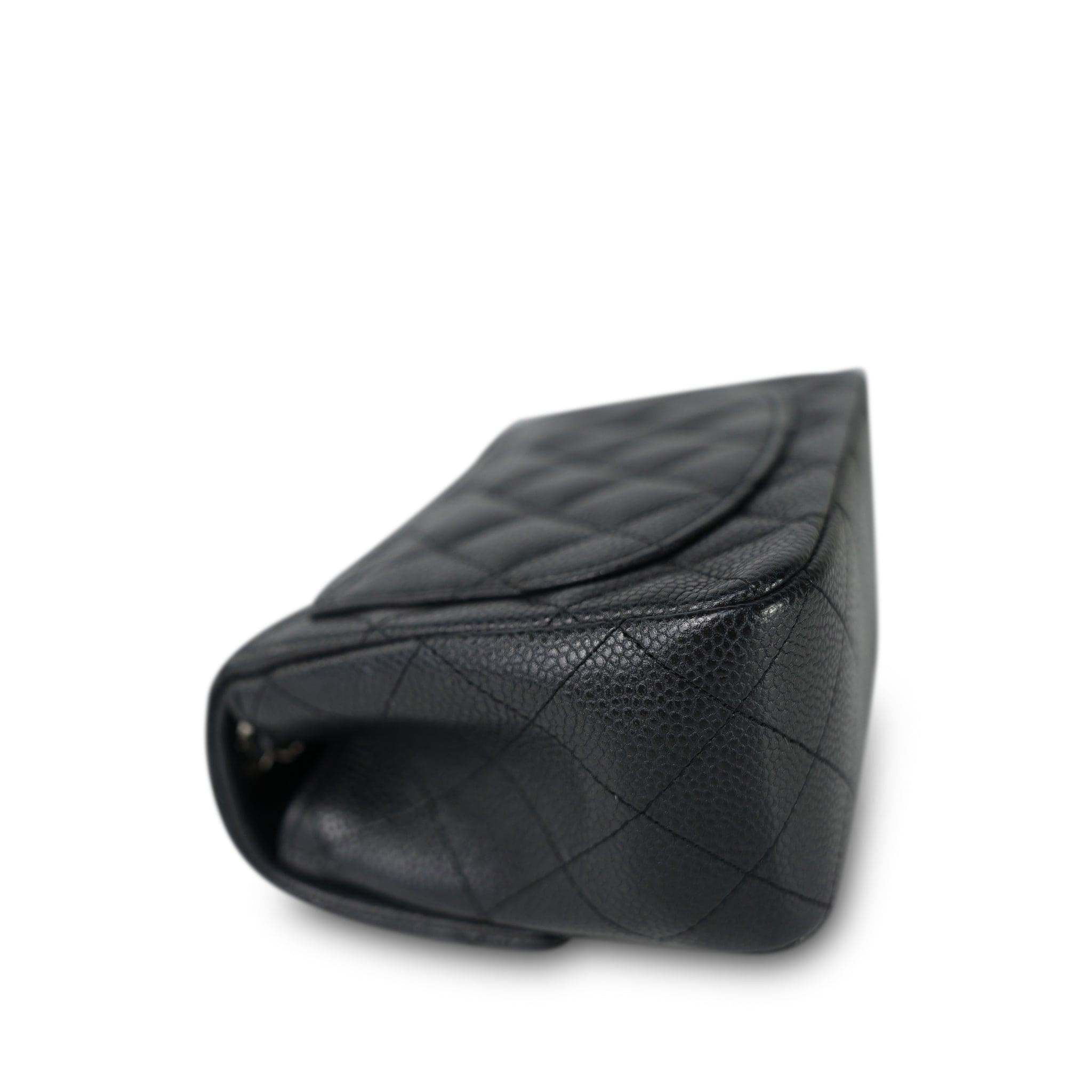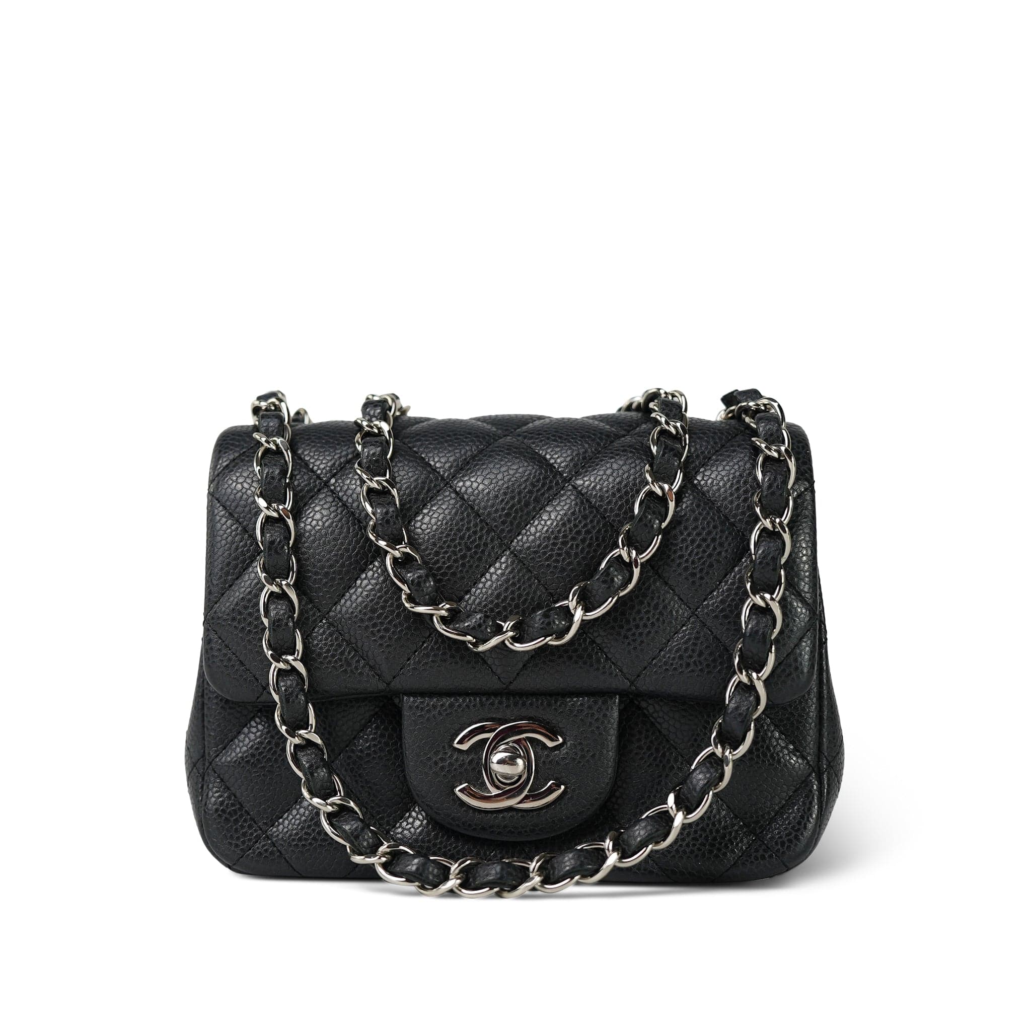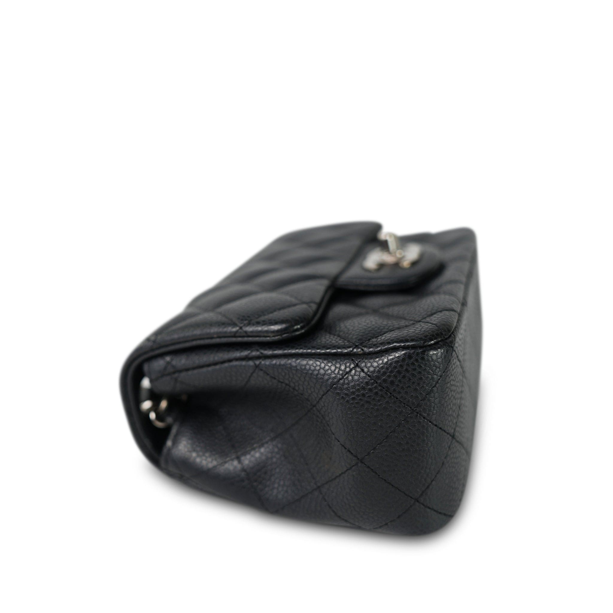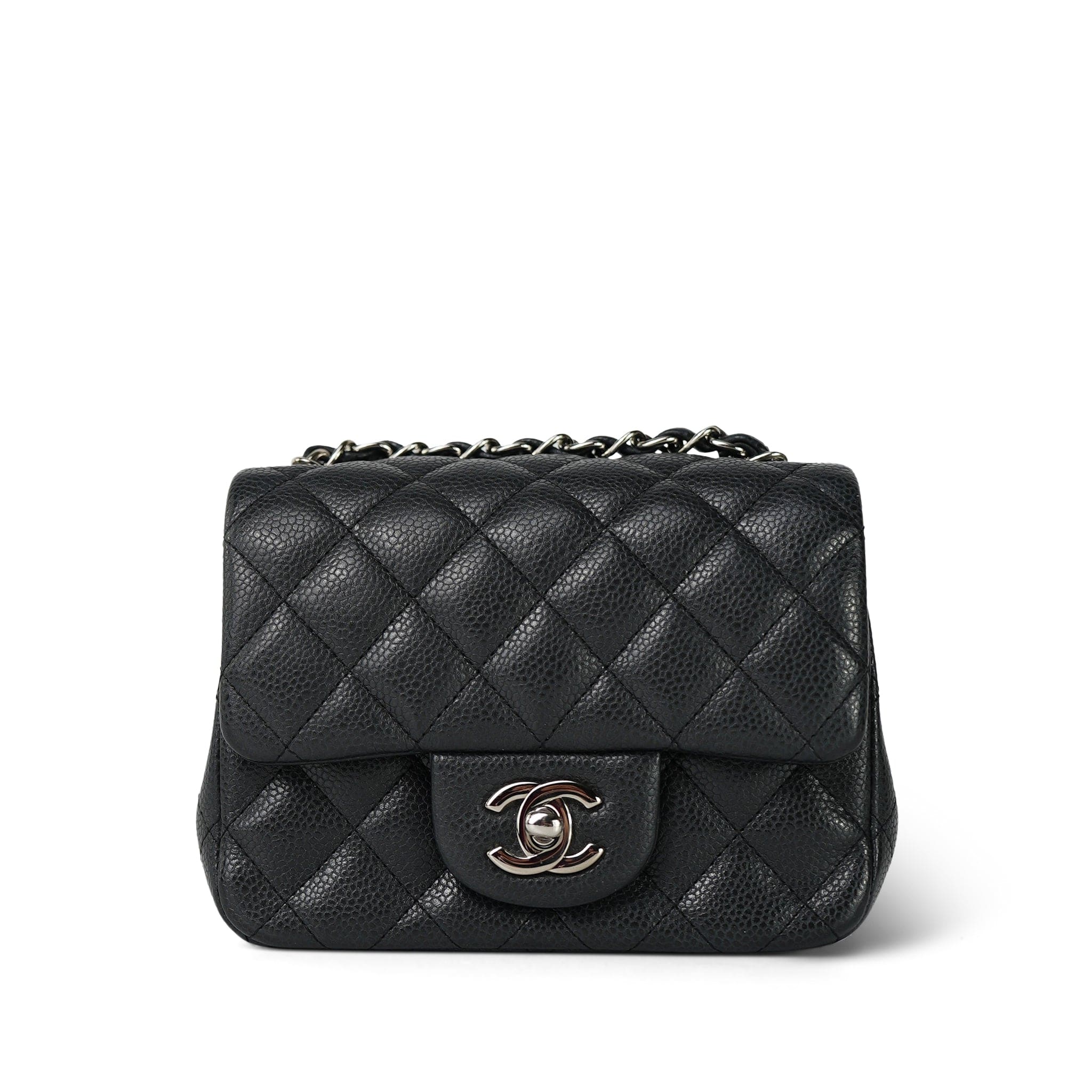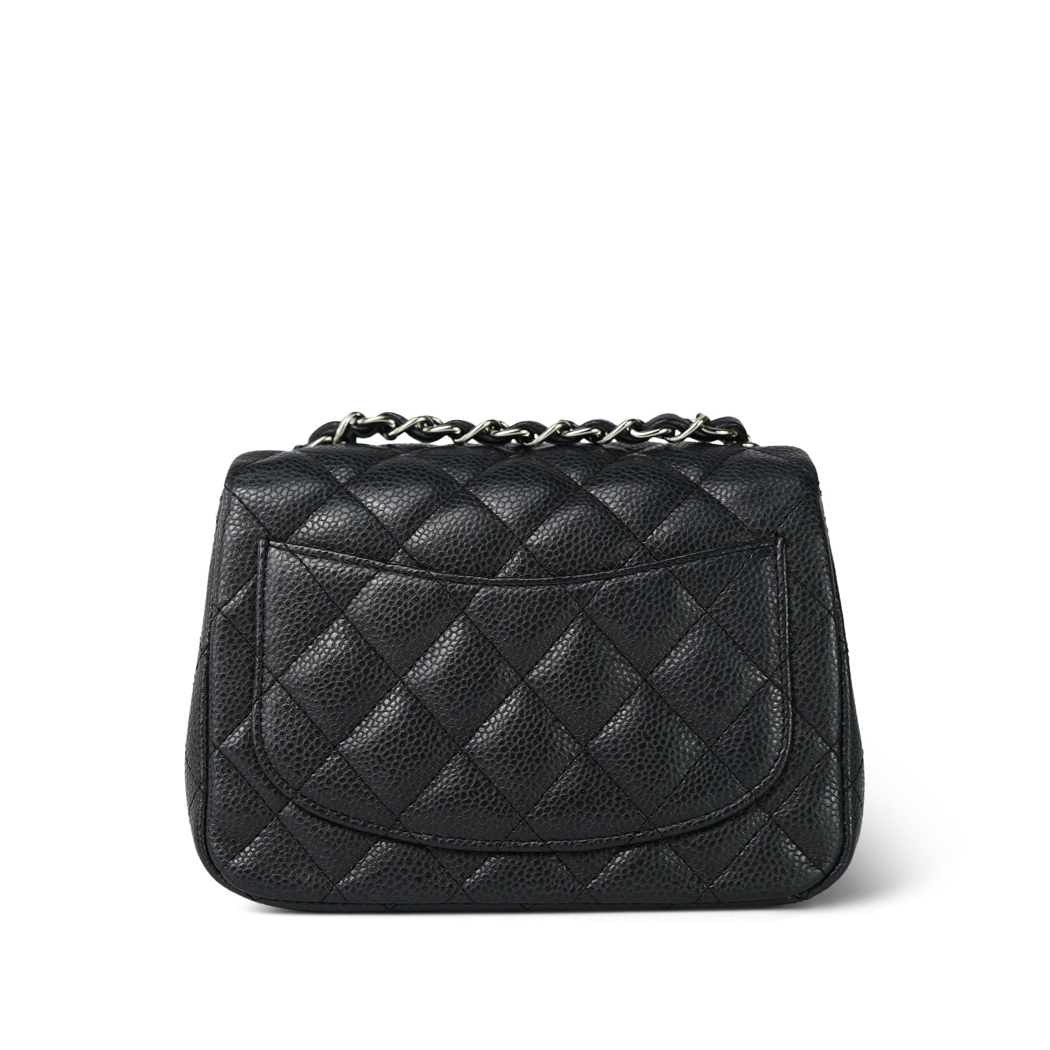 Charcoal Caviar Quilted Mini Square Flap Silver Hardware
