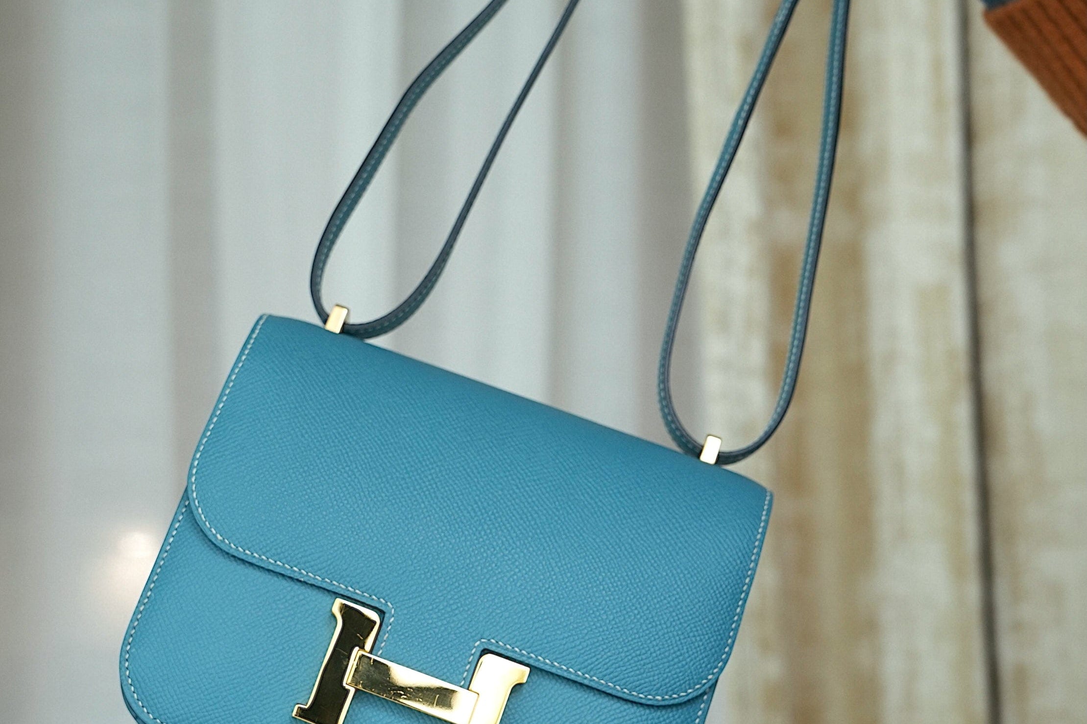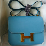 SOLD Constance 18 Bleu Jean Epsom Gold Plated W Stamp