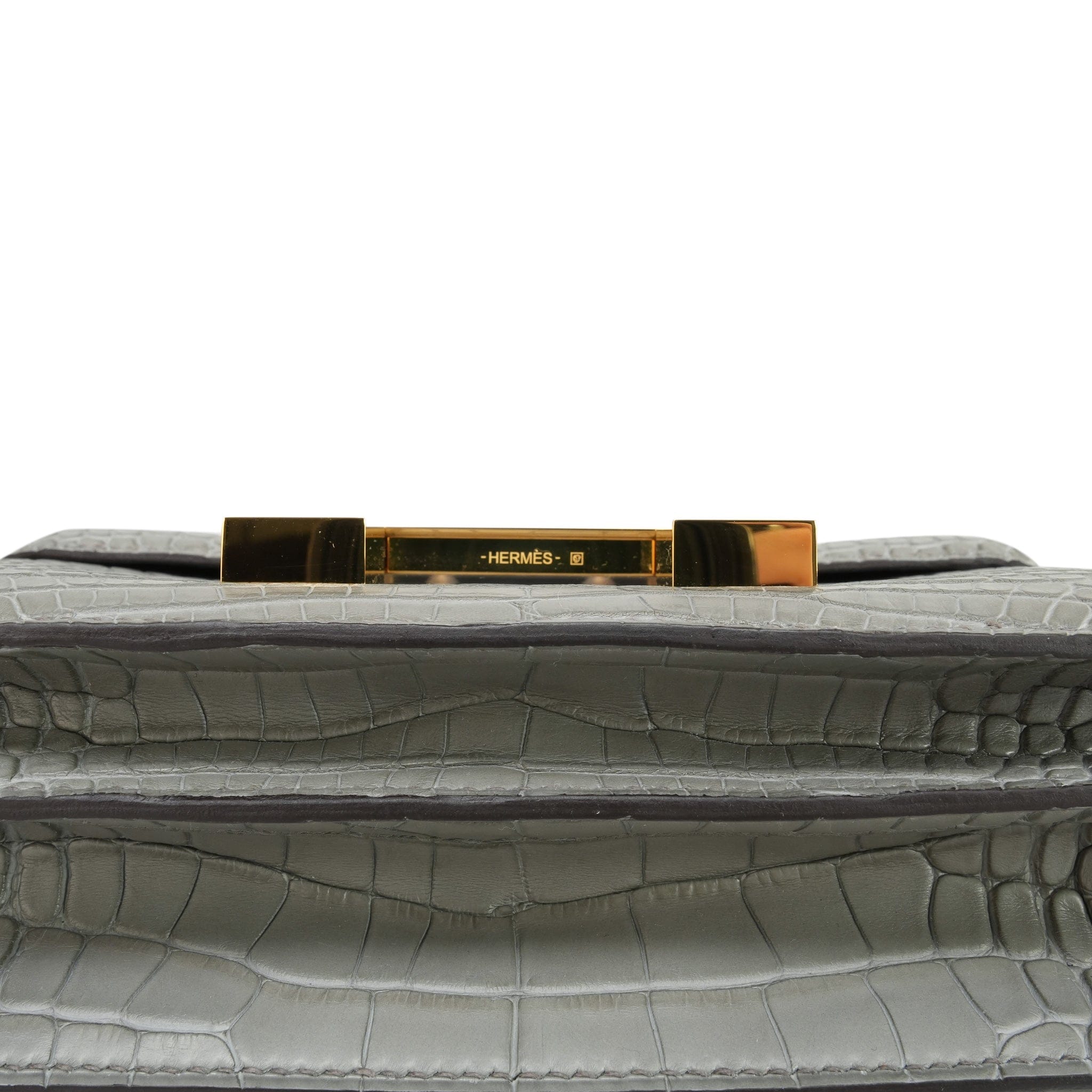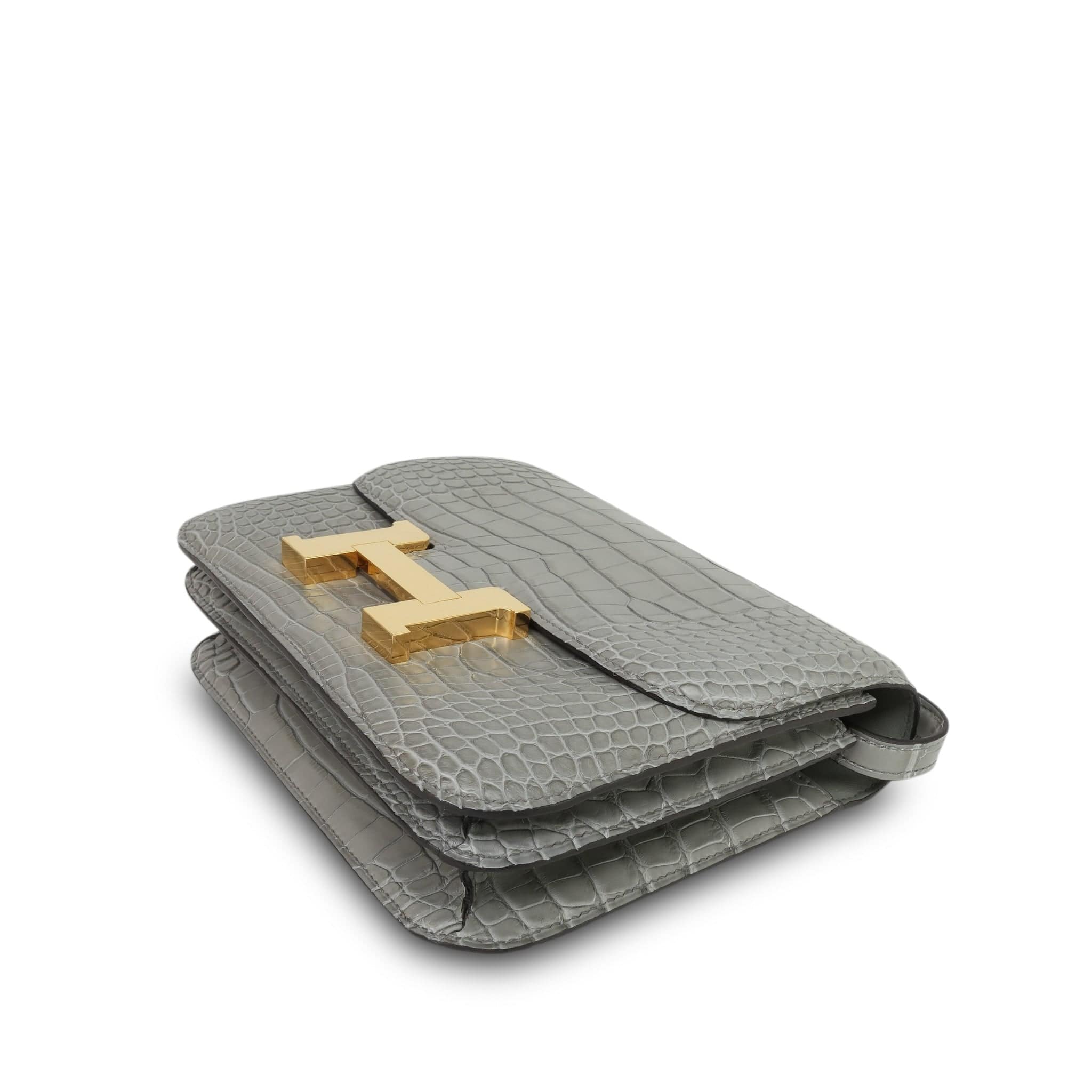 Constance 18 Gris Ciment Matt MIssissippi Alligator Gold Plated K Stamp
