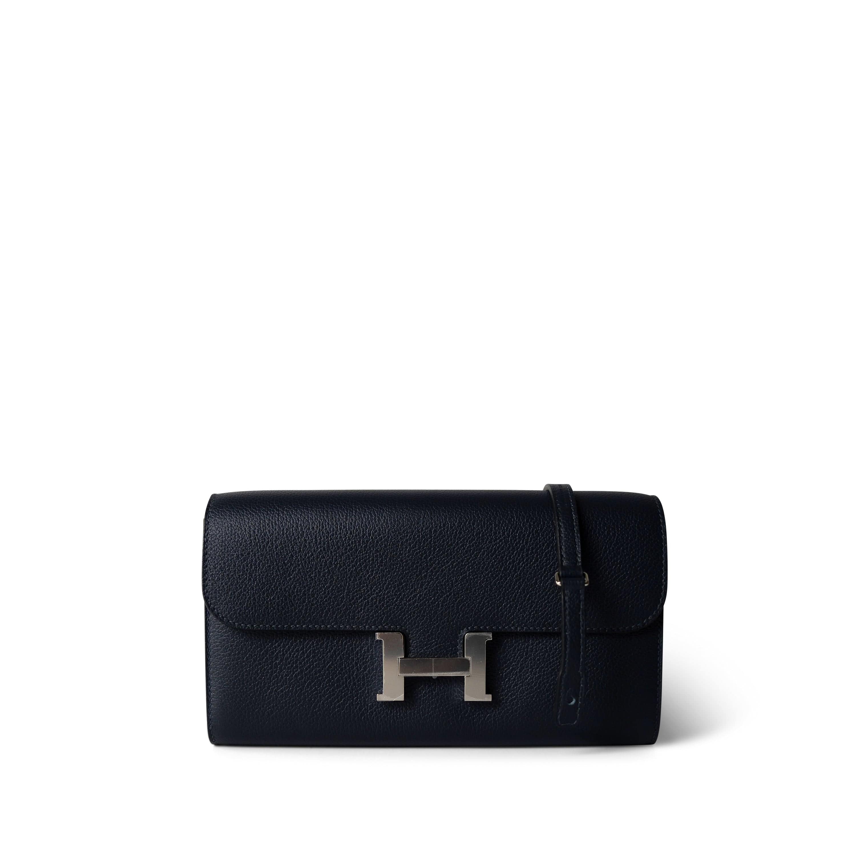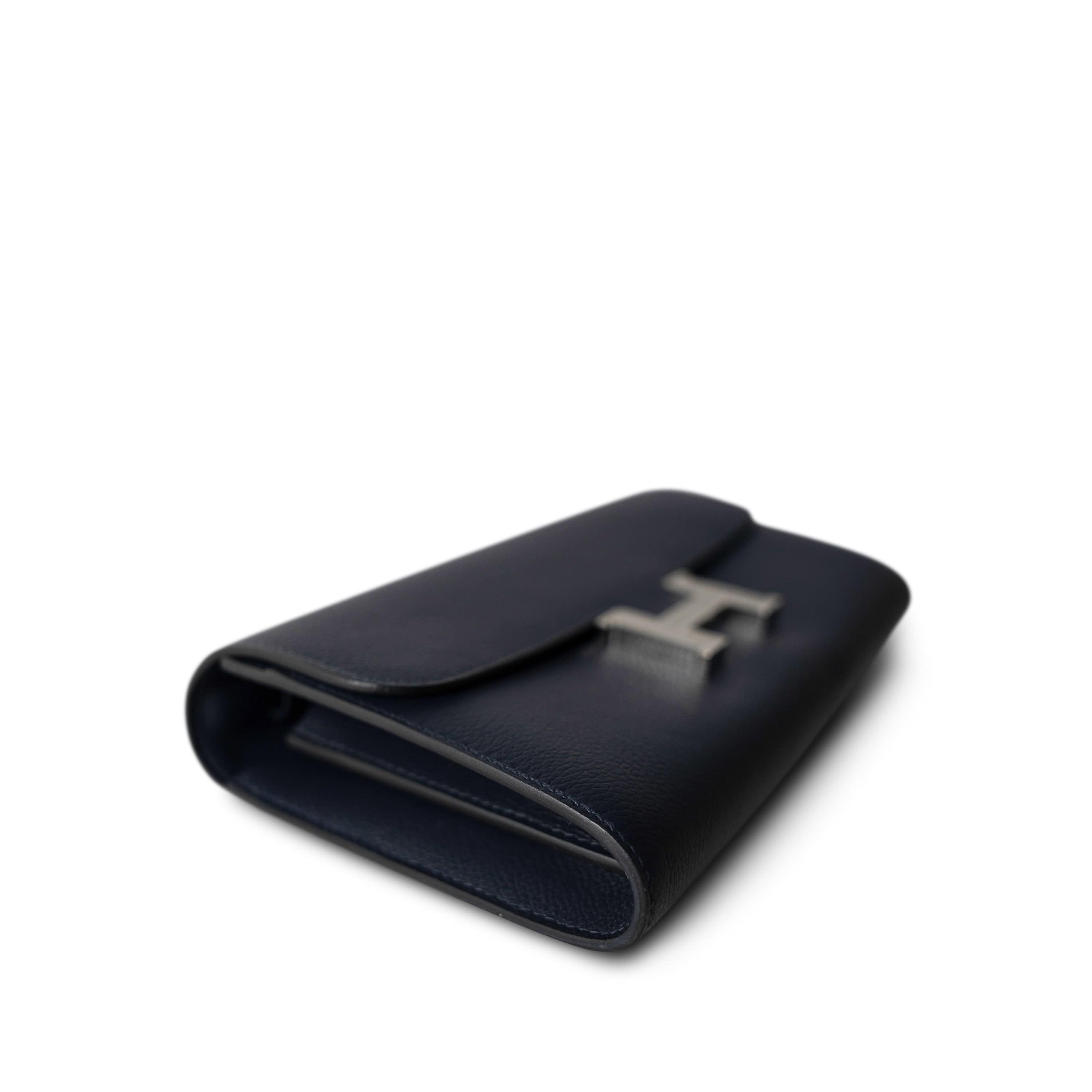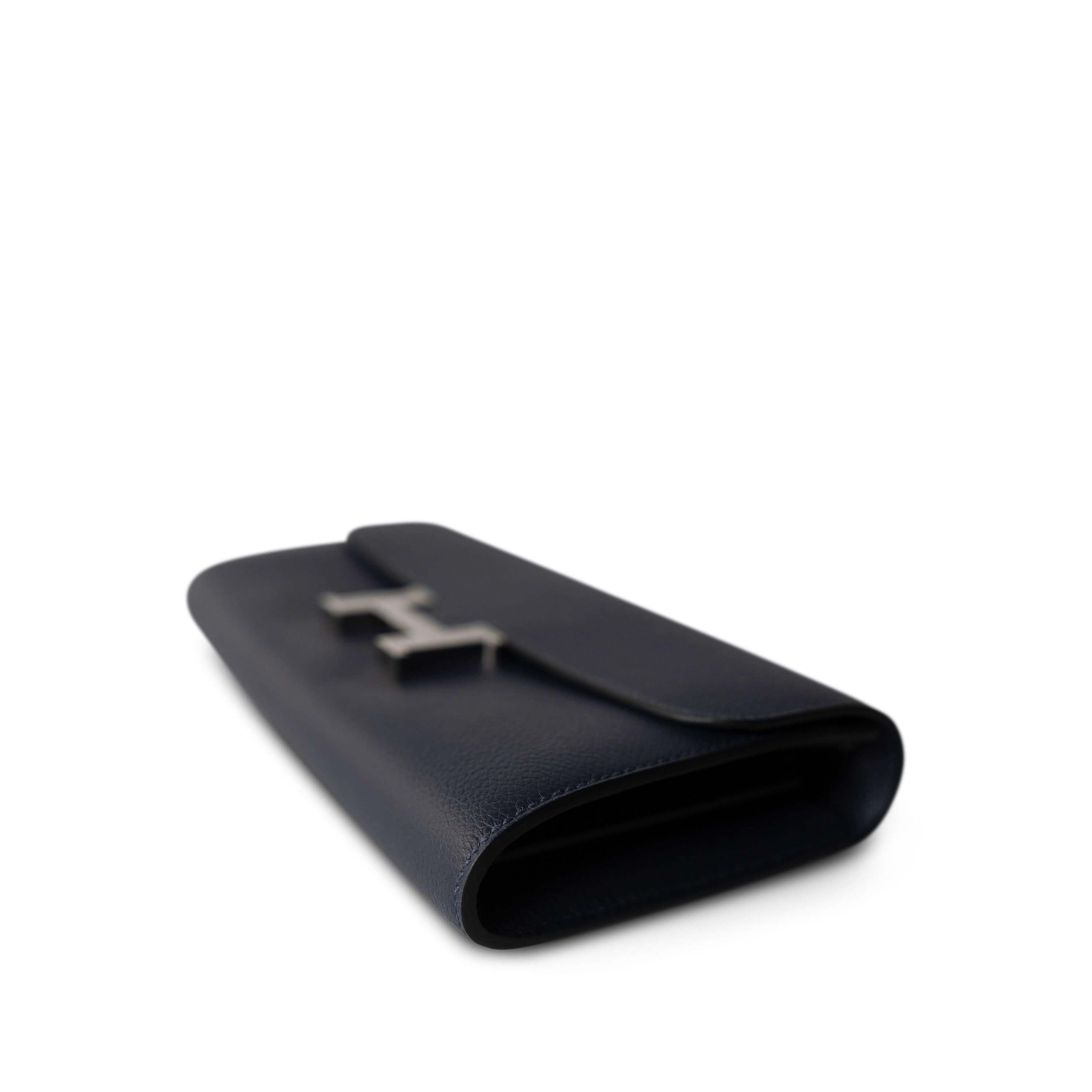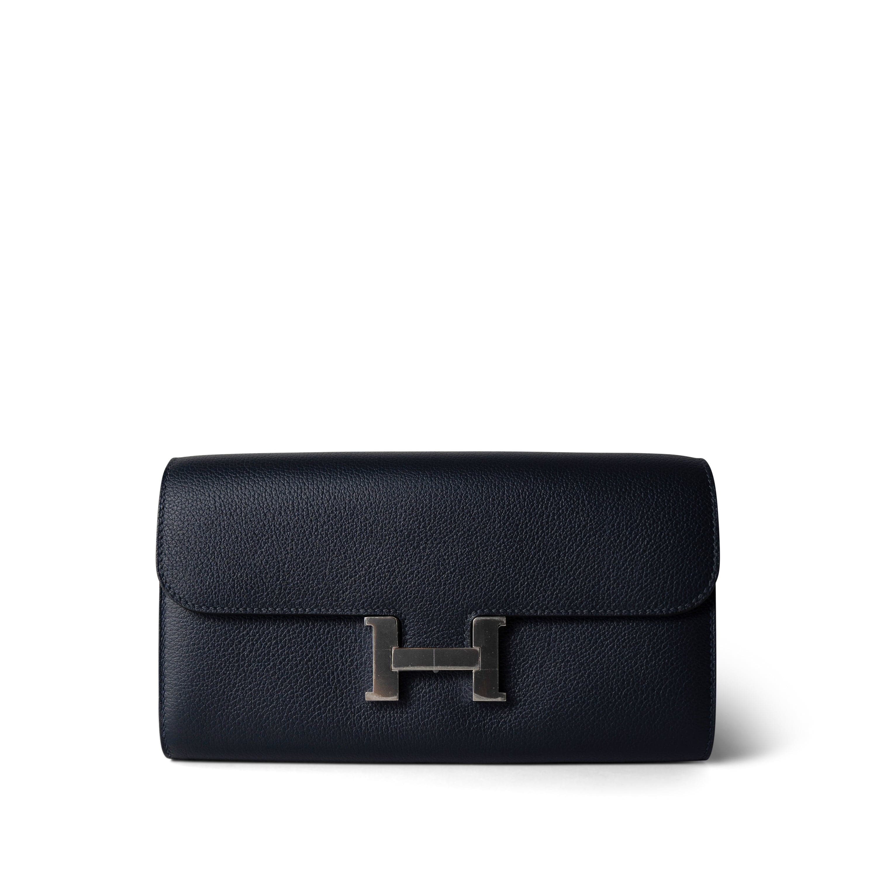 Constance Long To Go Wallet Bleu Nuit Epsom Palladium Plated B Stamp