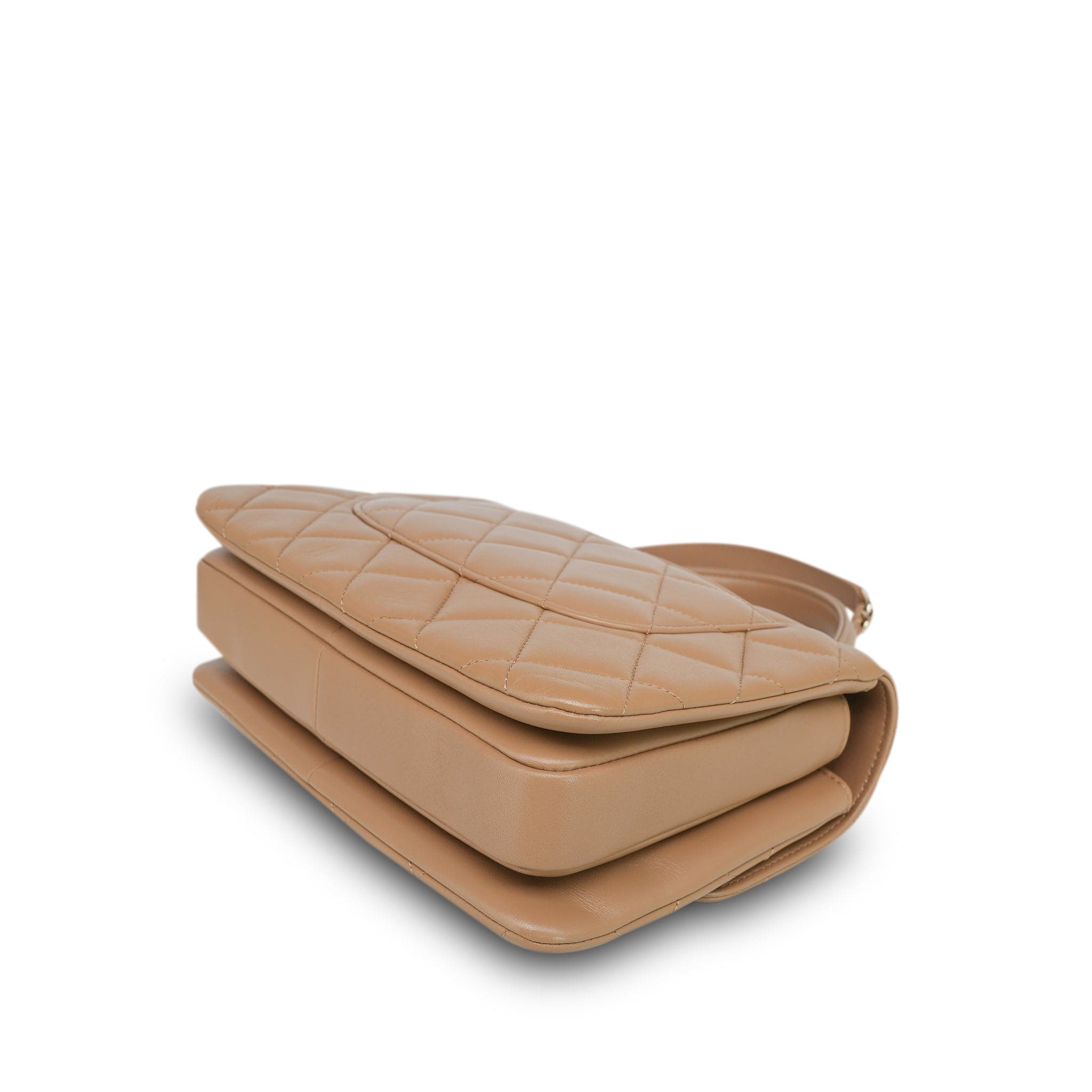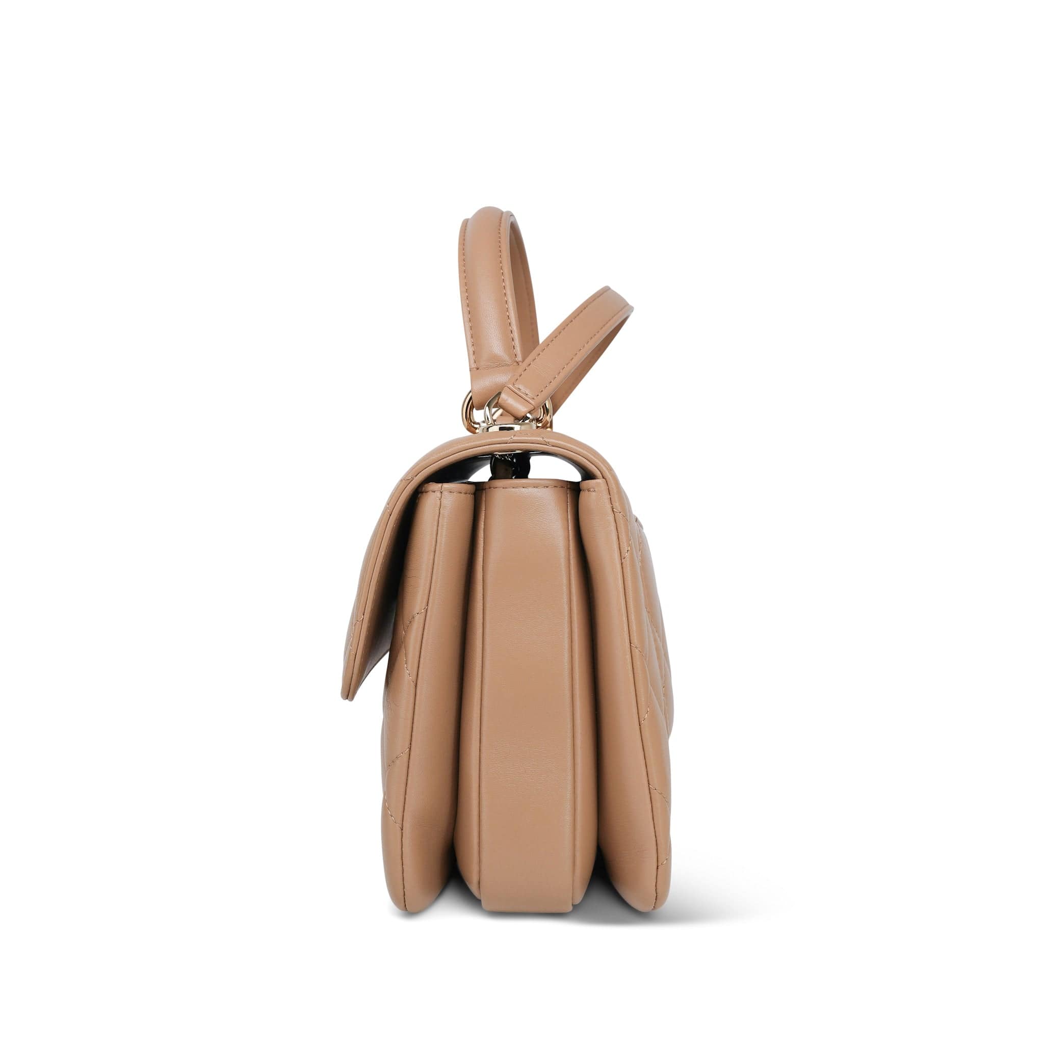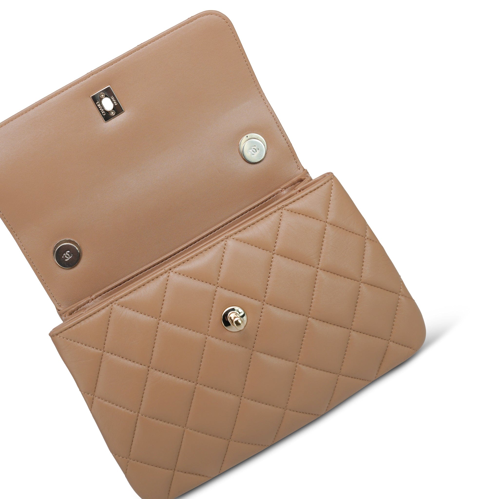Dark Beige Lambskin Quilted Trendy CC Small LGHW