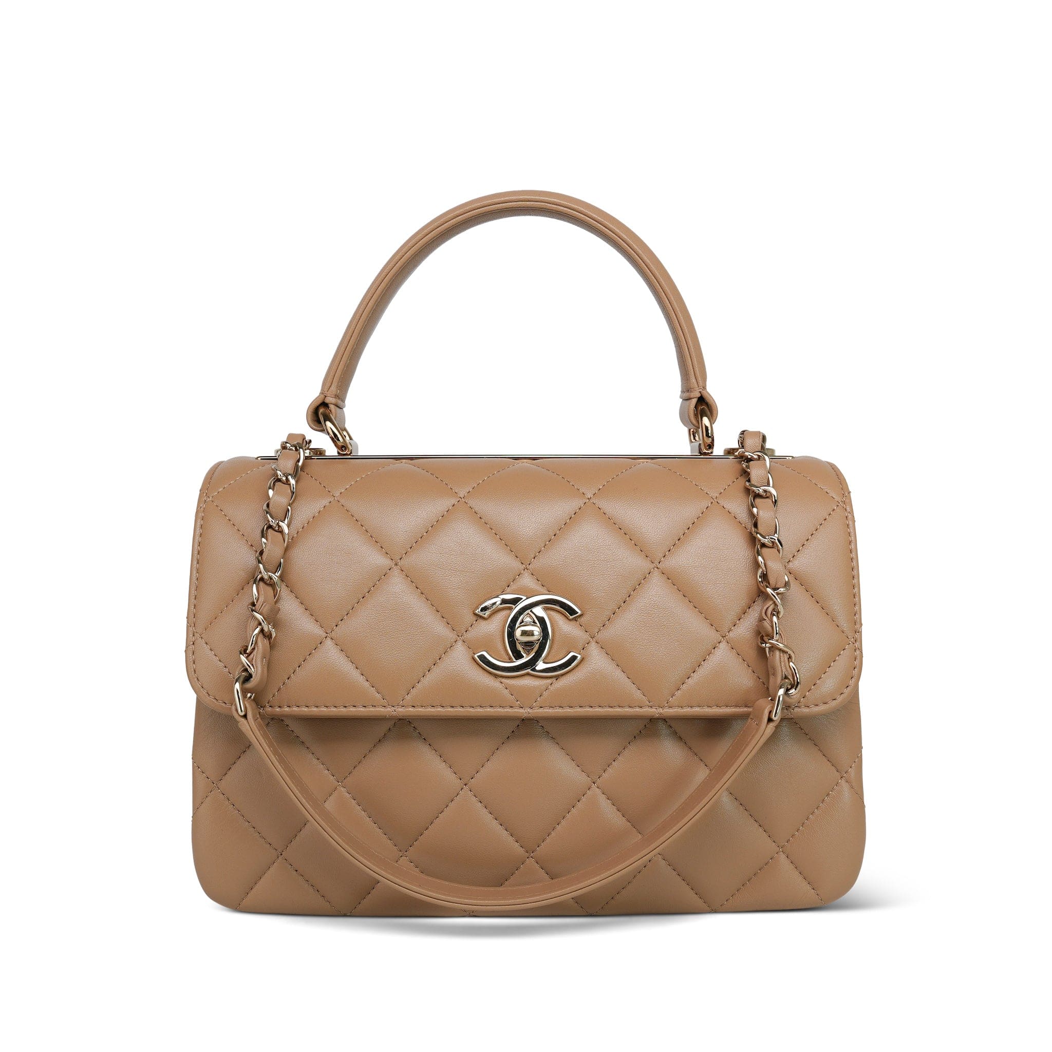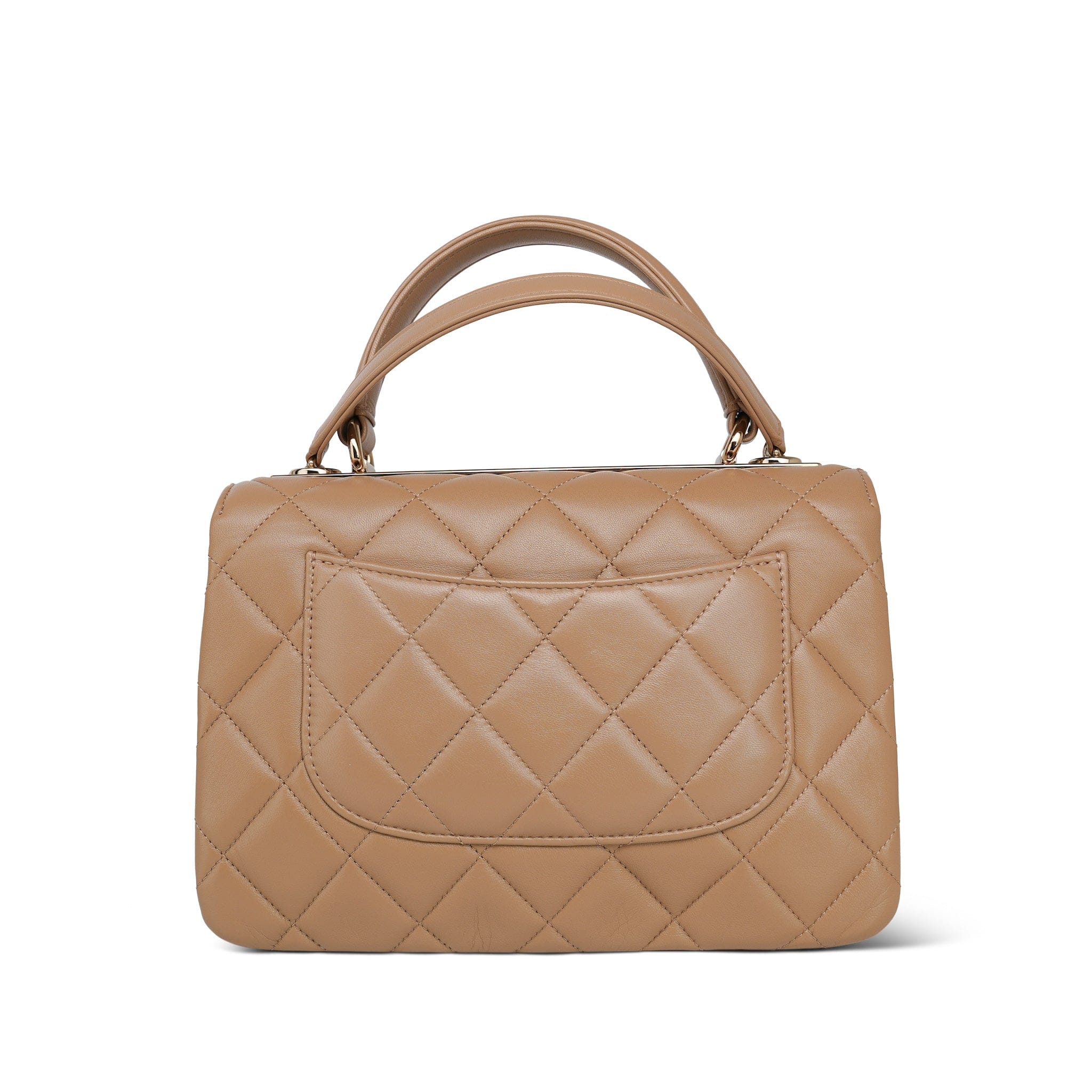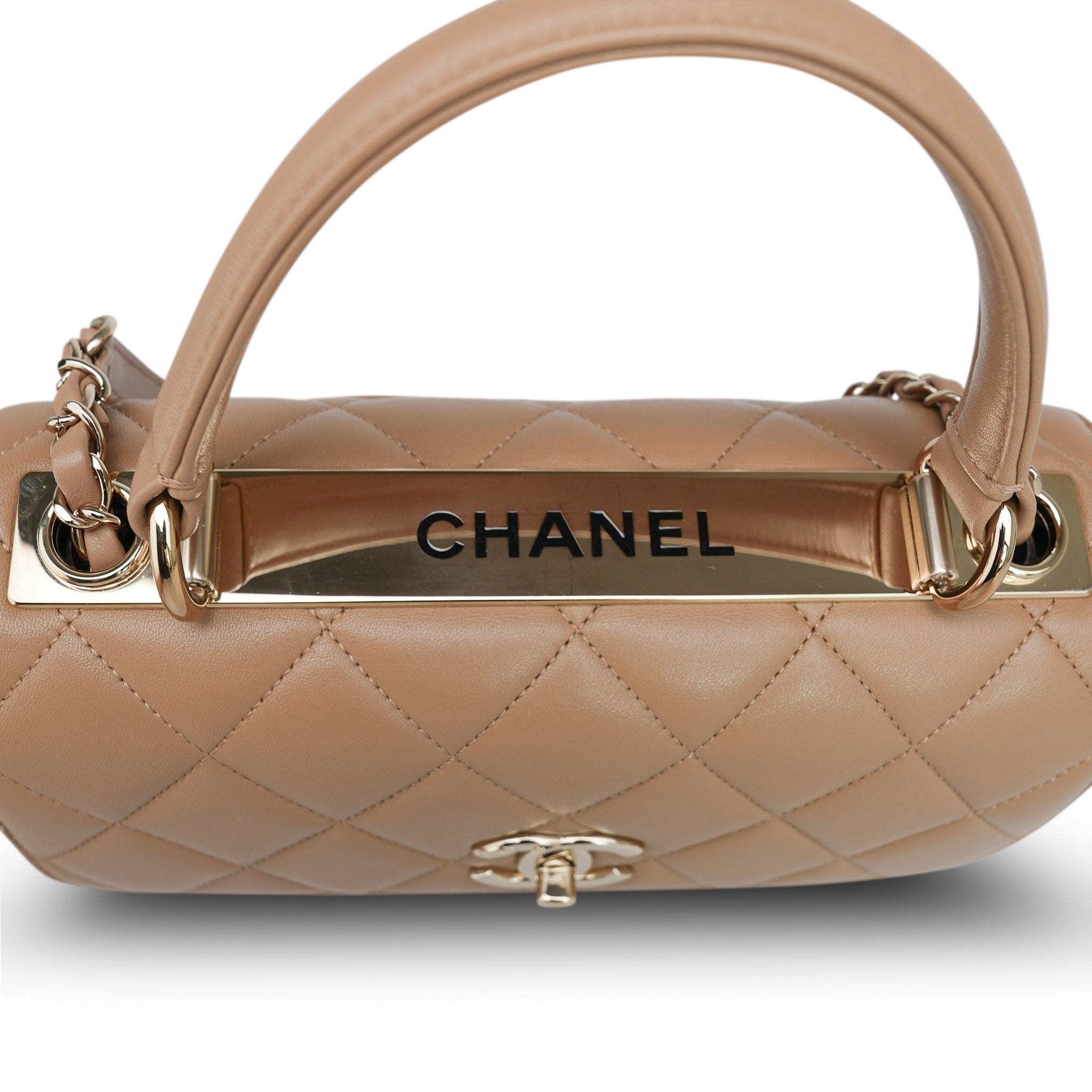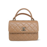 Dark Beige Lambskin Quilted Trendy CC Small LGHW