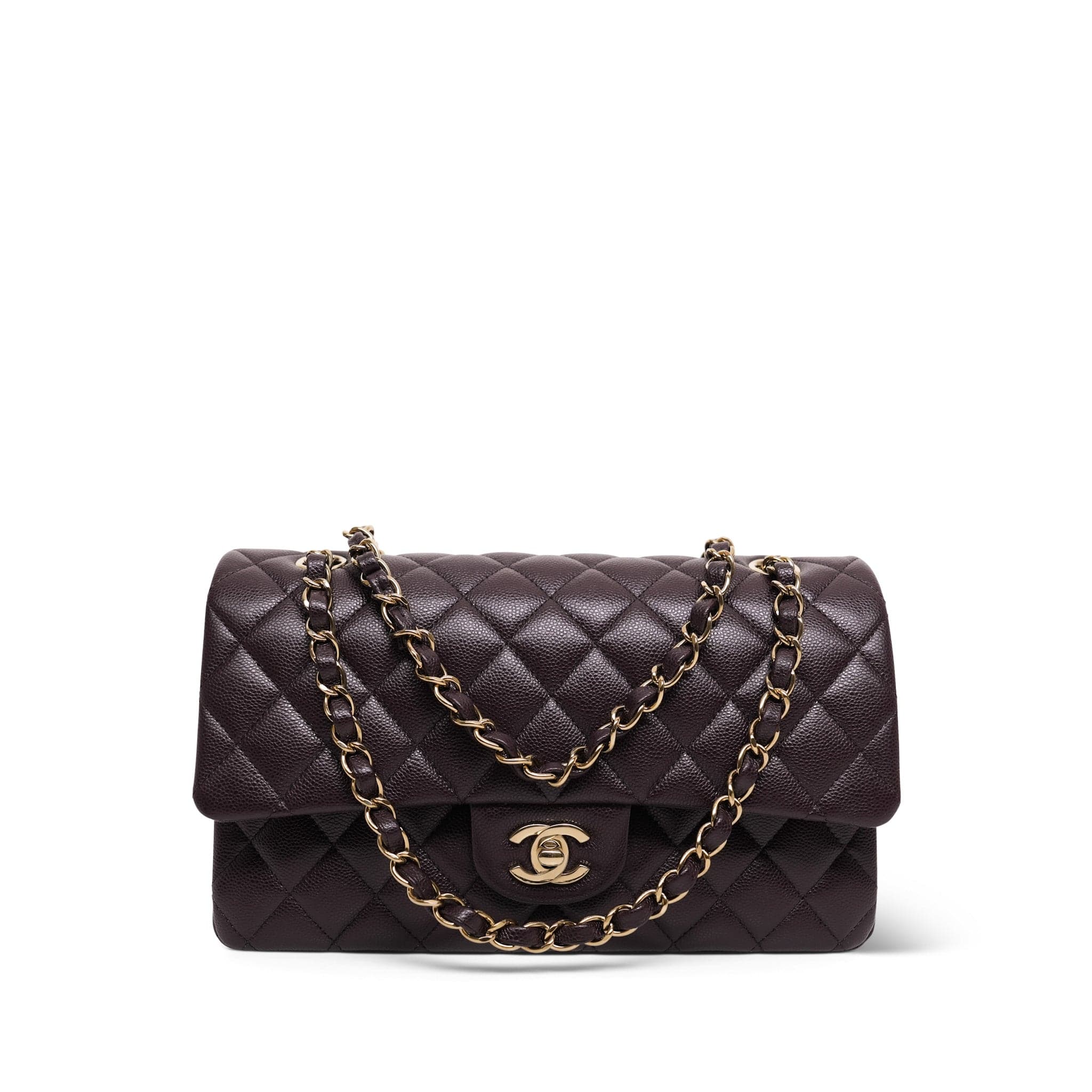 Plum Caviar Quilted Classic Flap Medium LGHW